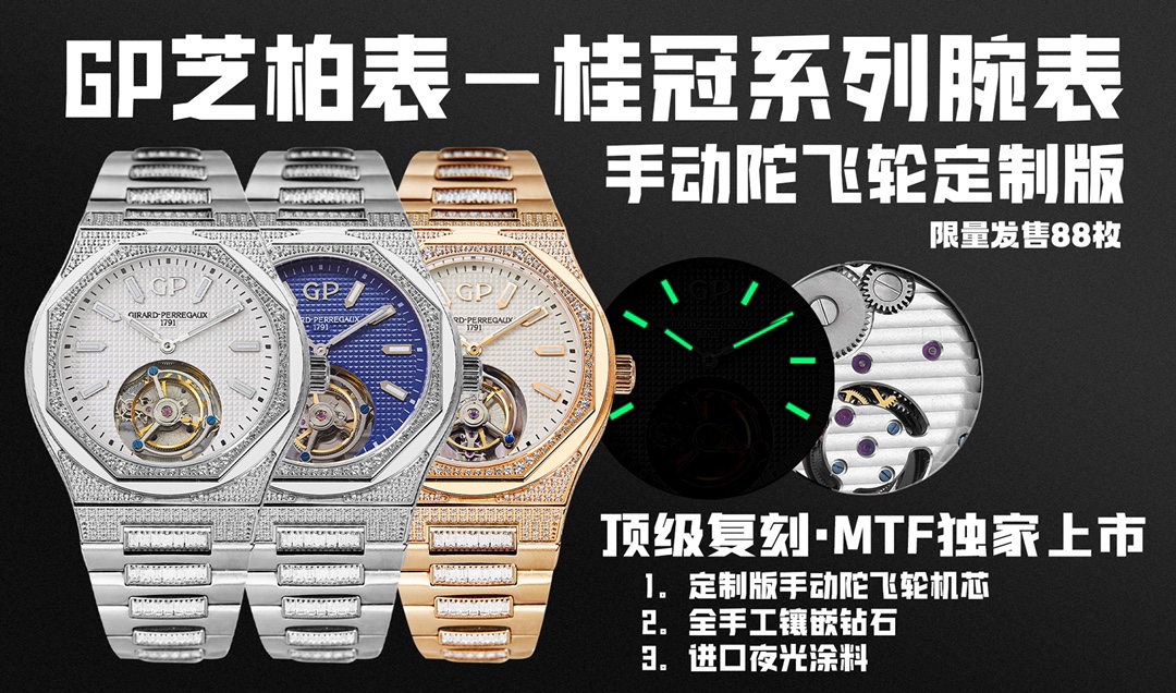这款手表是AAAAA 1:1 质量 (非常棒). 使用了和原版一模一样的材料. 商标部分也保持了和Girard Perregaux一样. 图片拍摄是实物手表拍摄, 您所收到的实物保证和我们图片一模一样.