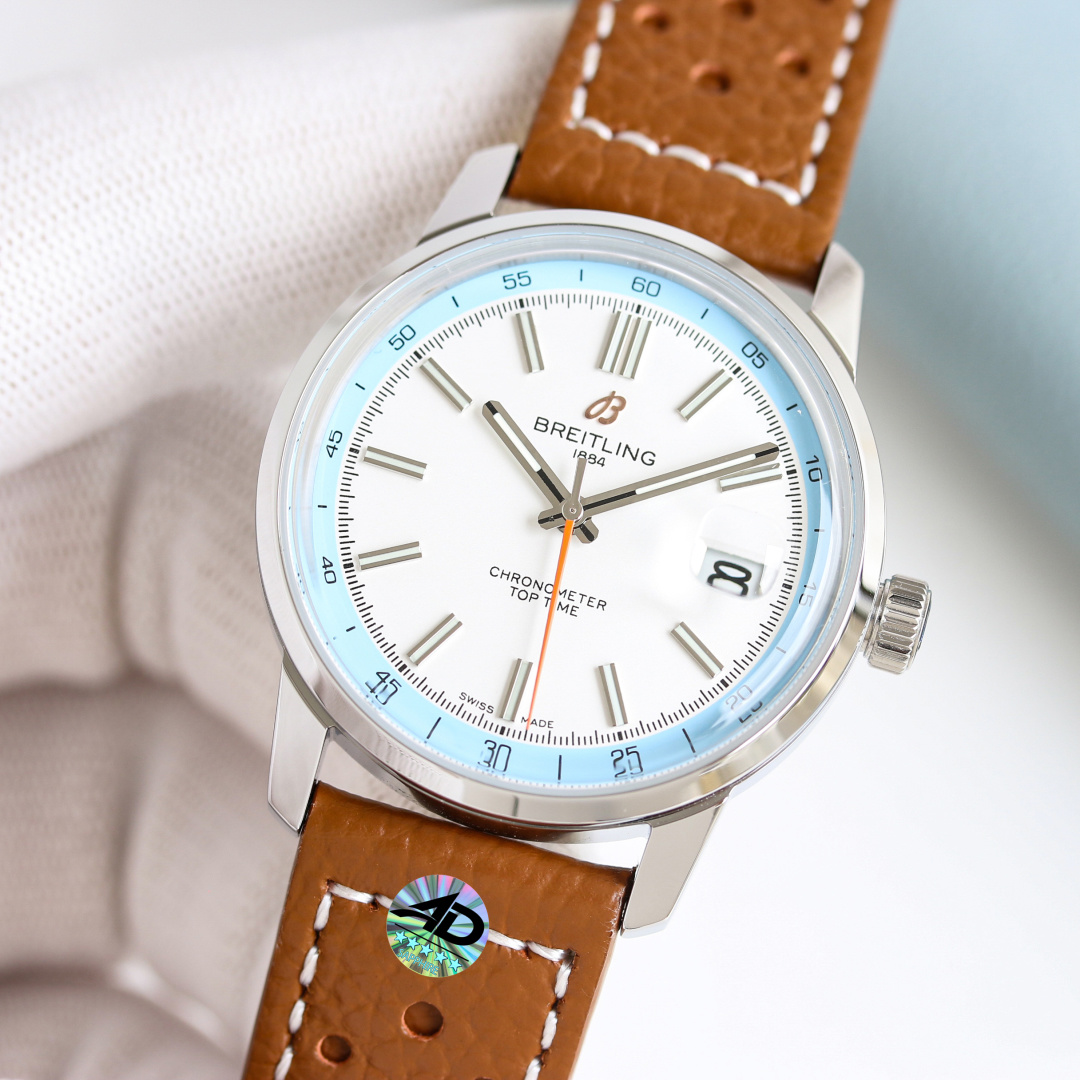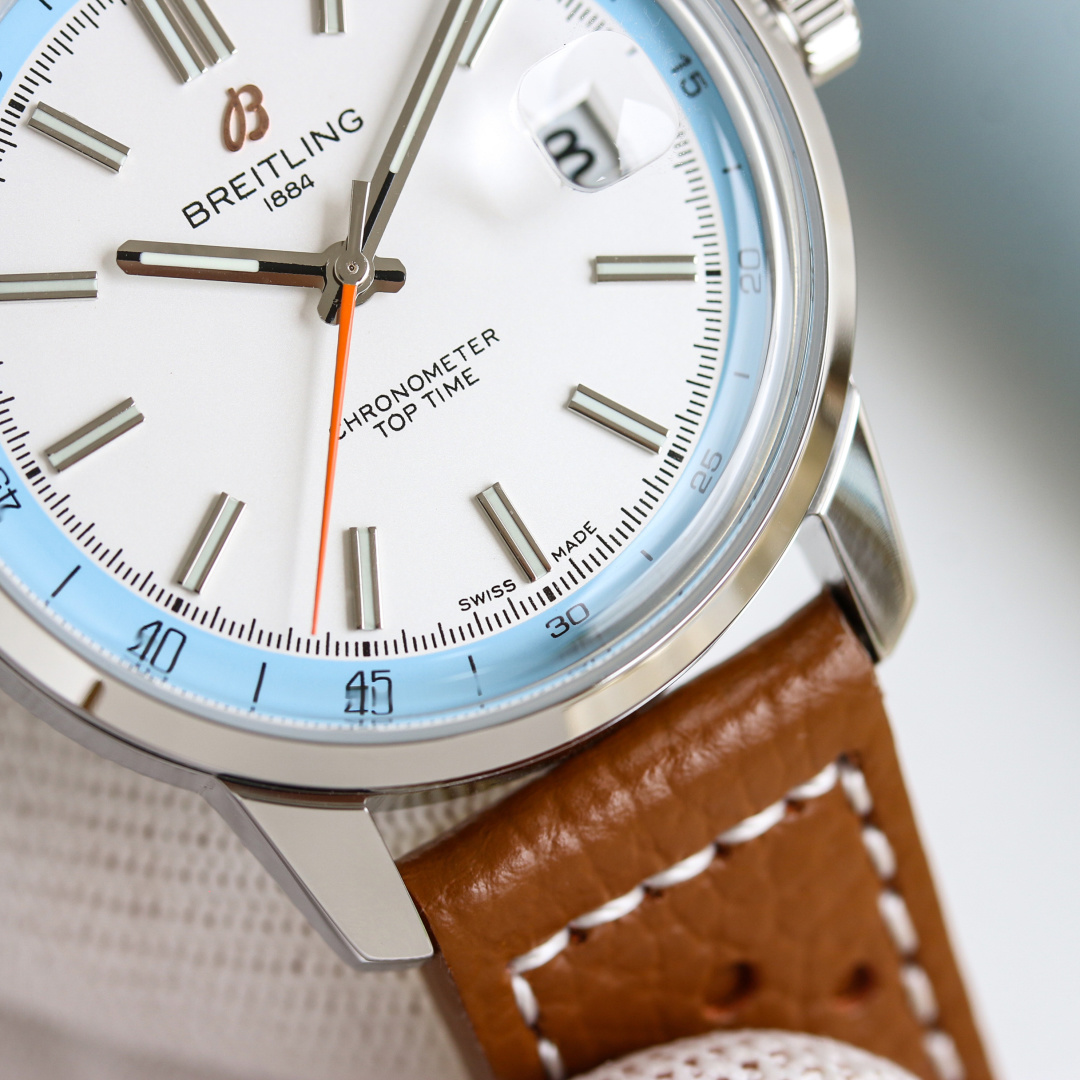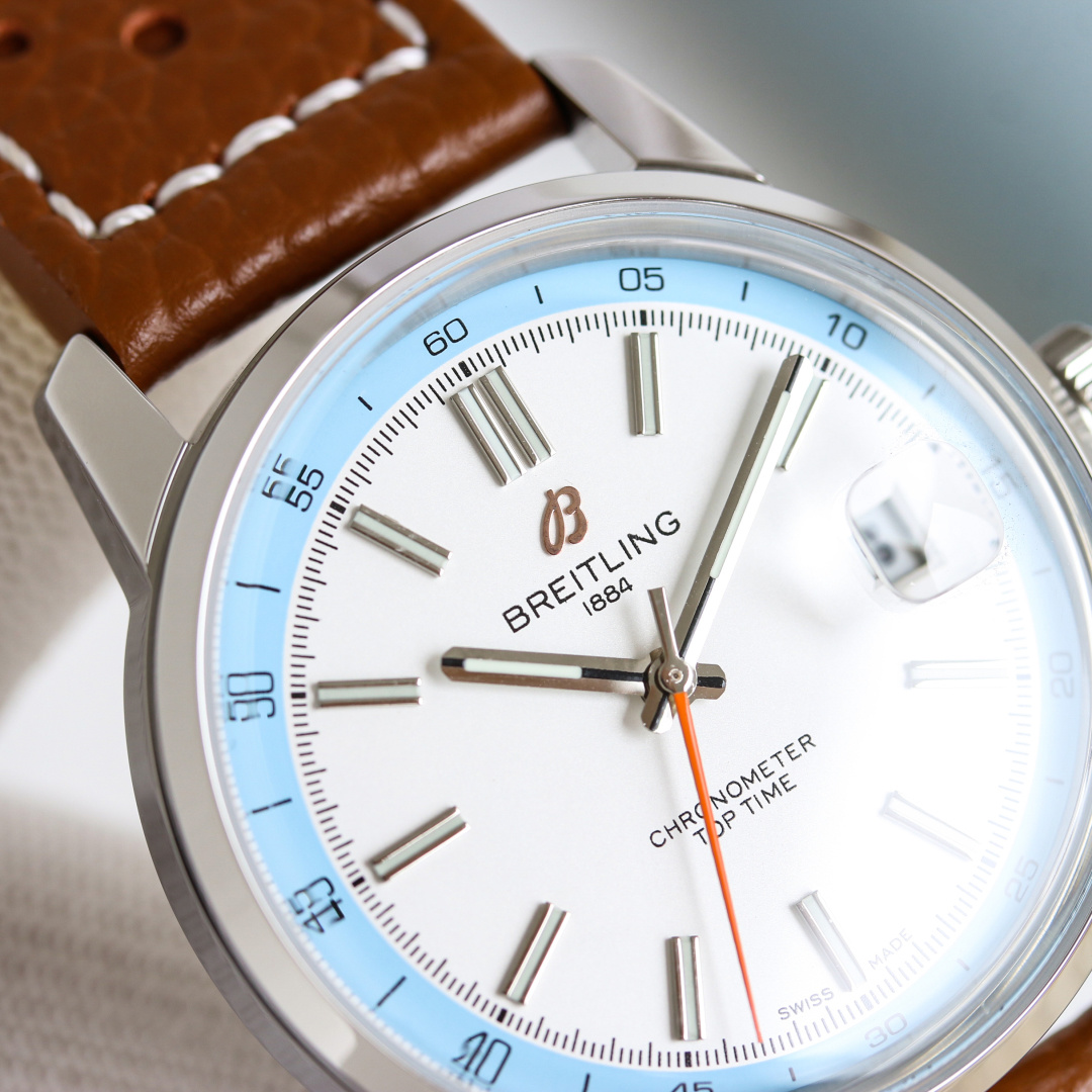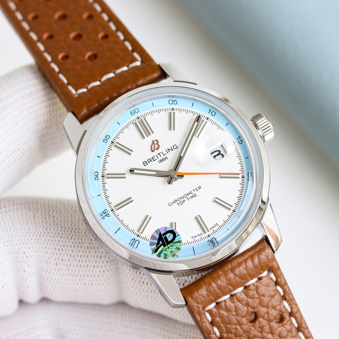 这款手表是AAAAA 1:1 质量 (非常棒). 使用了和原版一模一样的材料. 商标部分也保持了和Breitling一样. 图片拍摄是实物手表拍摄, 您所收到的实物保证和我们图片一模一样.