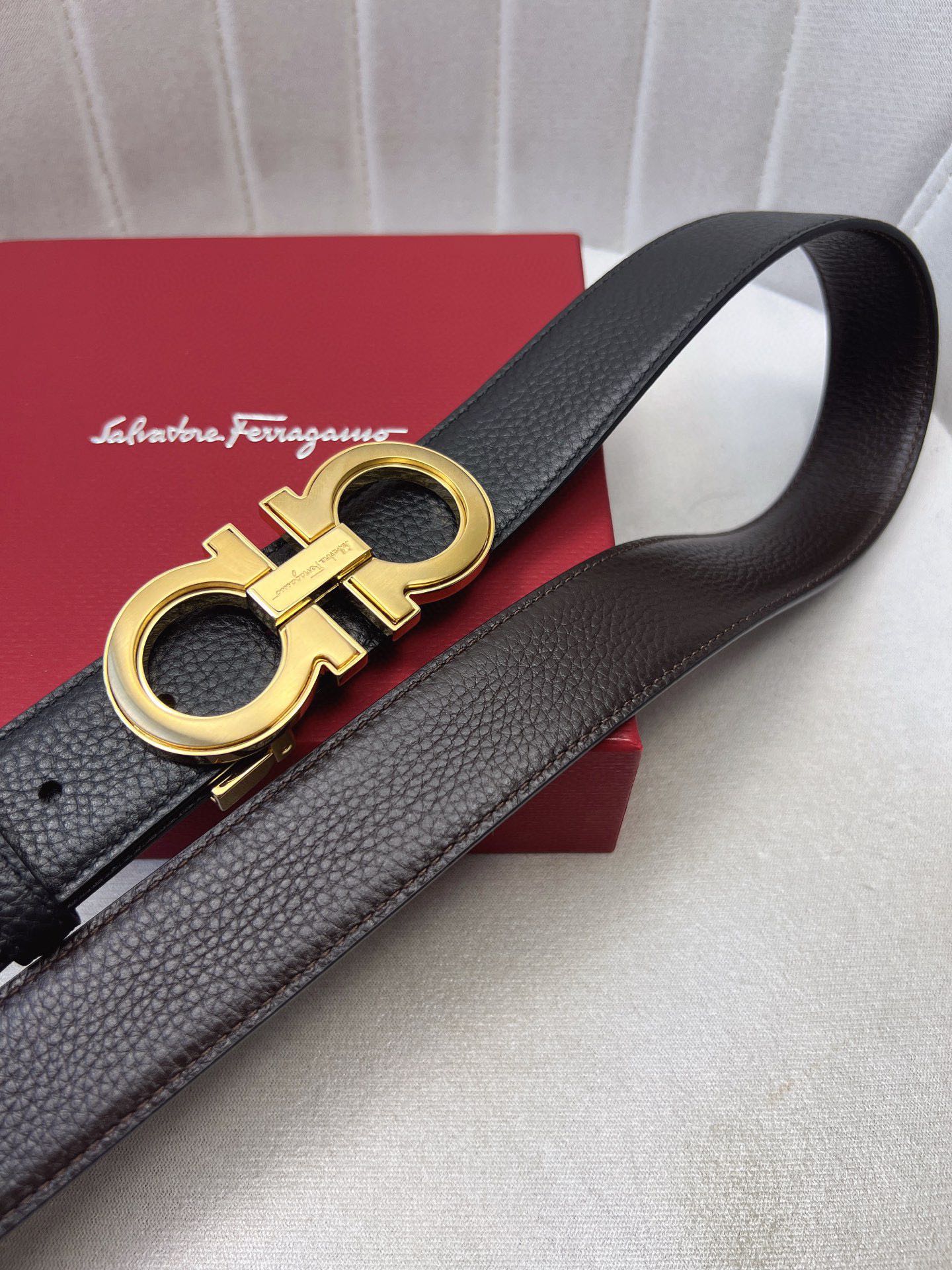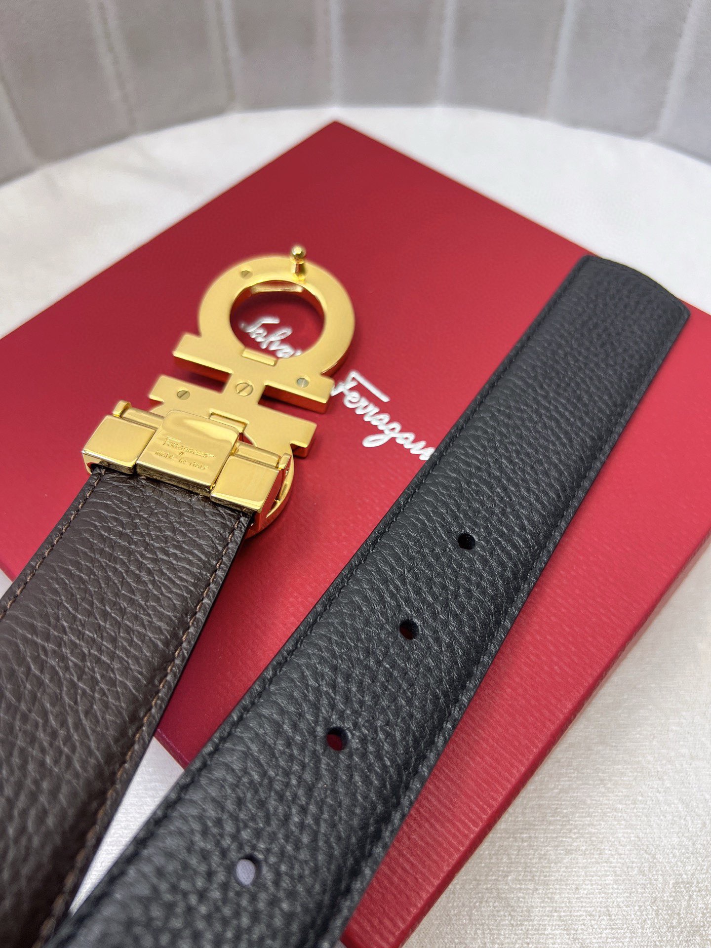 这款皮带是AAAAA 1:1 质量 (非常棒). 使用了和原版一模一样的材料. 商标部分也保持了和菲拉格慕/Salvatore Ferragamo一样. 图片拍摄是实物皮带拍摄, 您所收到的实物保证和我们图片一模一样.
