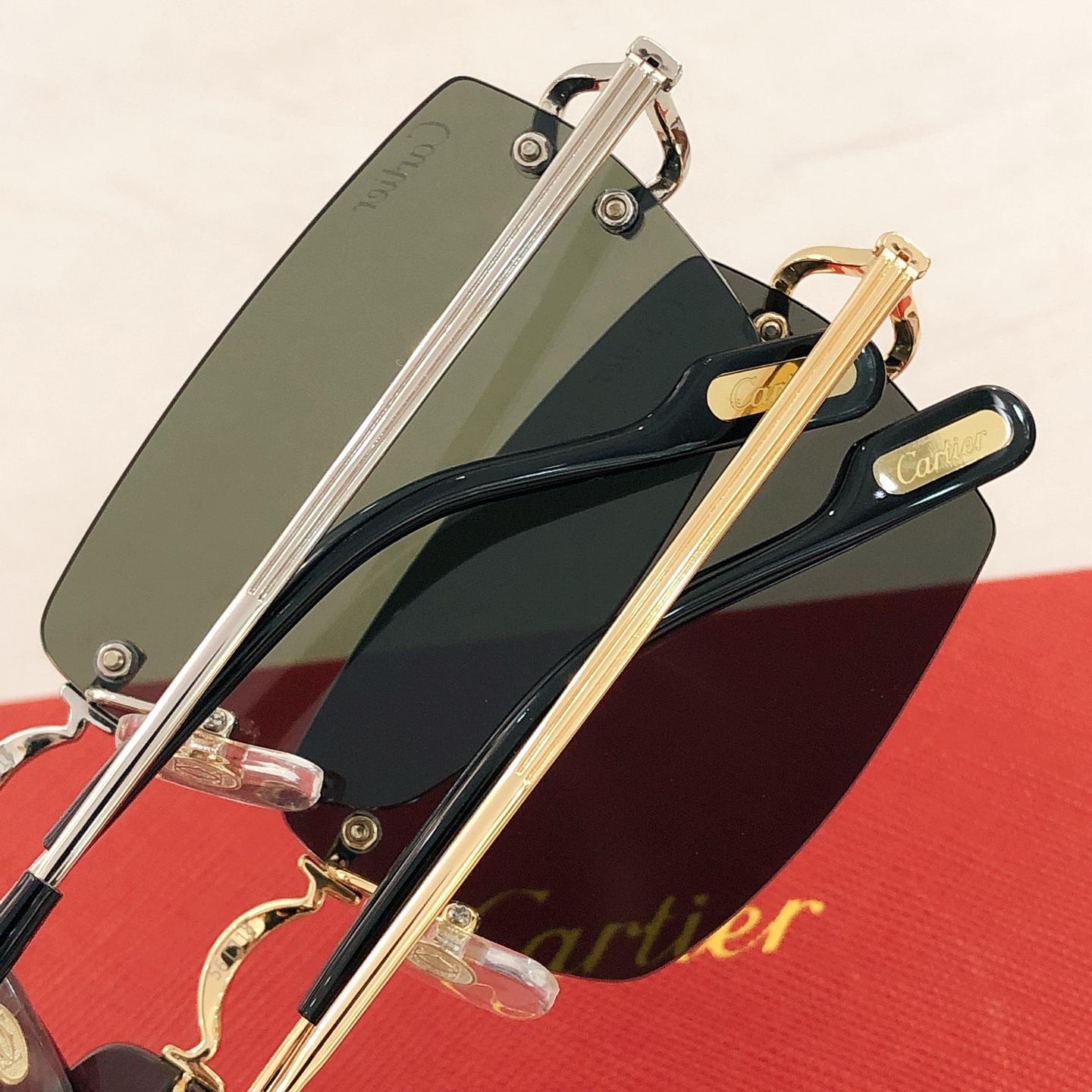 这款太阳眼镜是AAAAA 1:1 质量 (非常棒). 使用了和原版一模一样的材料. 商标部分也保持了和卡地亚/Cartier一样. 图片拍摄是实物太阳眼镜拍摄, 您所收到的实物保证和我们图片一模一样.