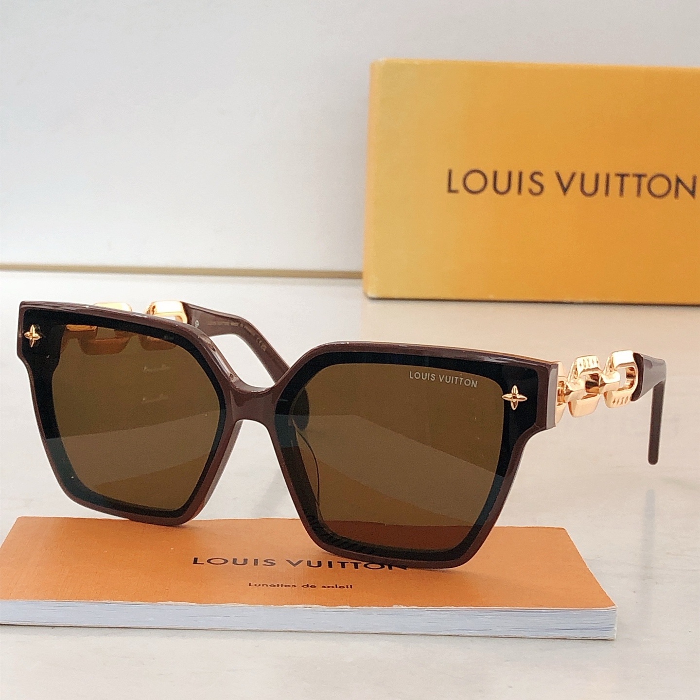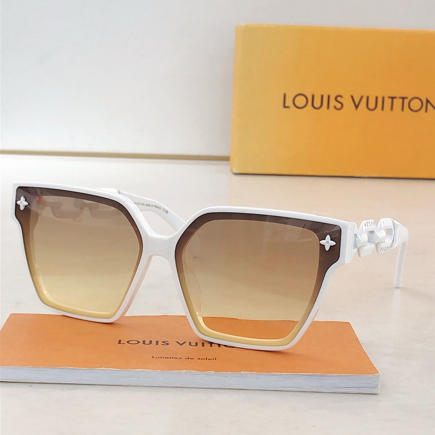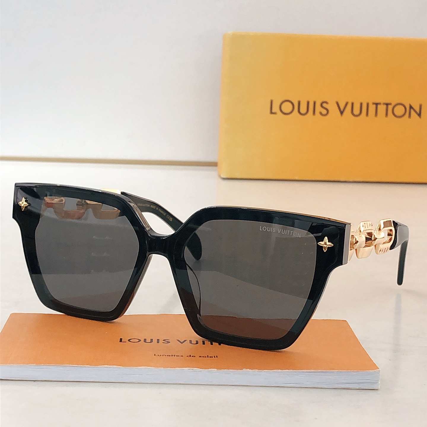 这款太阳眼镜是AAAAA 1:1 质量 (非常棒). 使用了和原版一模一样的材料. 商标部分也保持了和路易威登/Louis Vuitton一样. 图片拍摄是实物太阳眼镜拍摄, 您所收到的实物保证和我们图片一模一样.