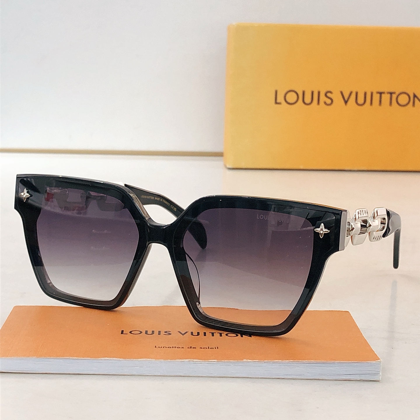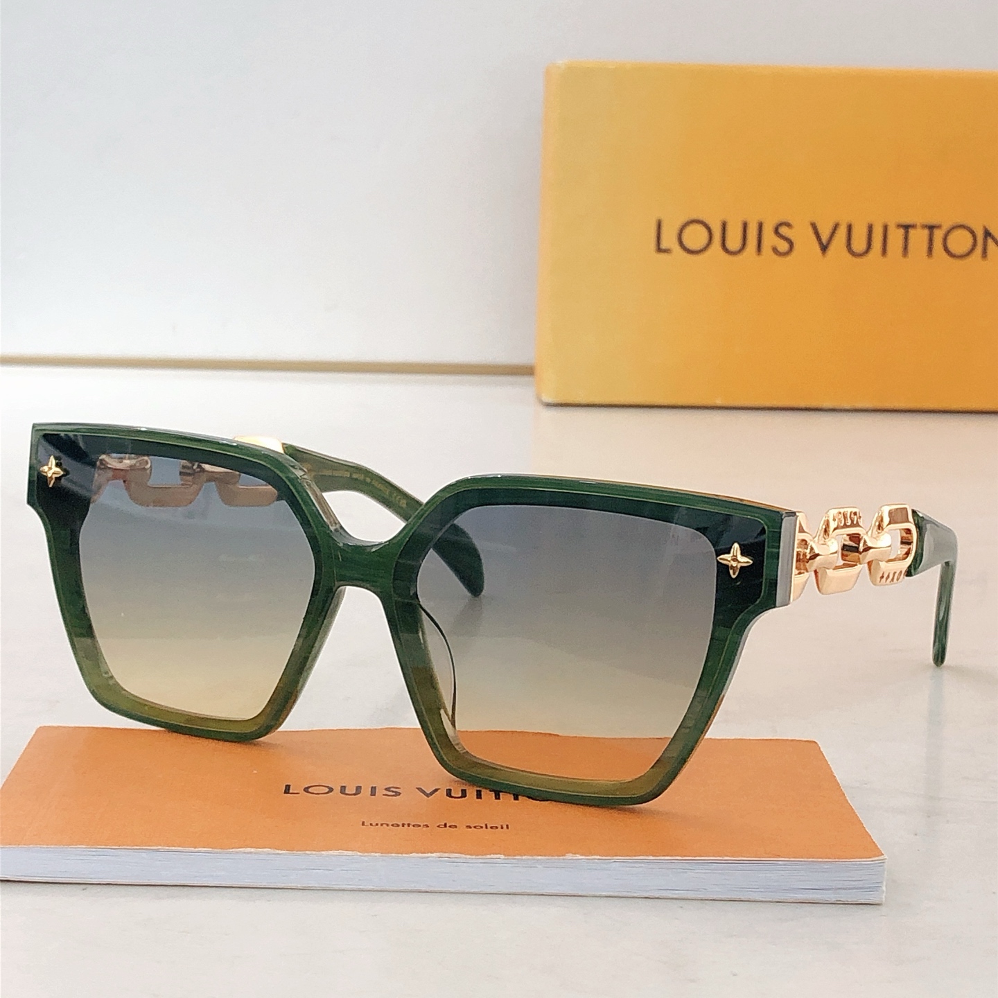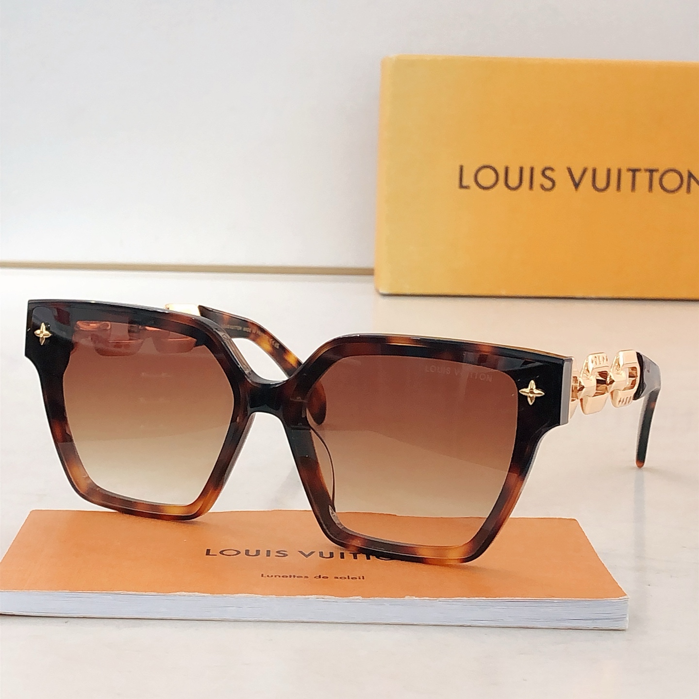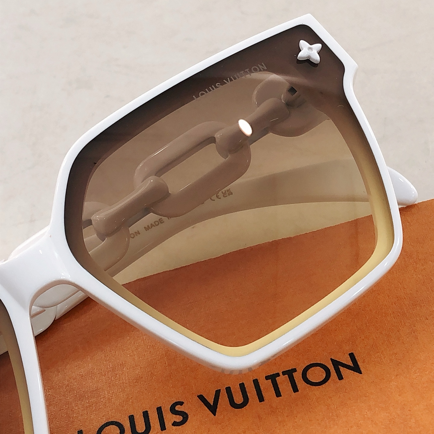 这款太阳眼镜是AAAAA 1:1 质量 (非常棒). 使用了和原版一模一样的材料. 商标部分也保持了和路易威登/Louis Vuitton一样. 图片拍摄是实物太阳眼镜拍摄, 您所收到的实物保证和我们图片一模一样.