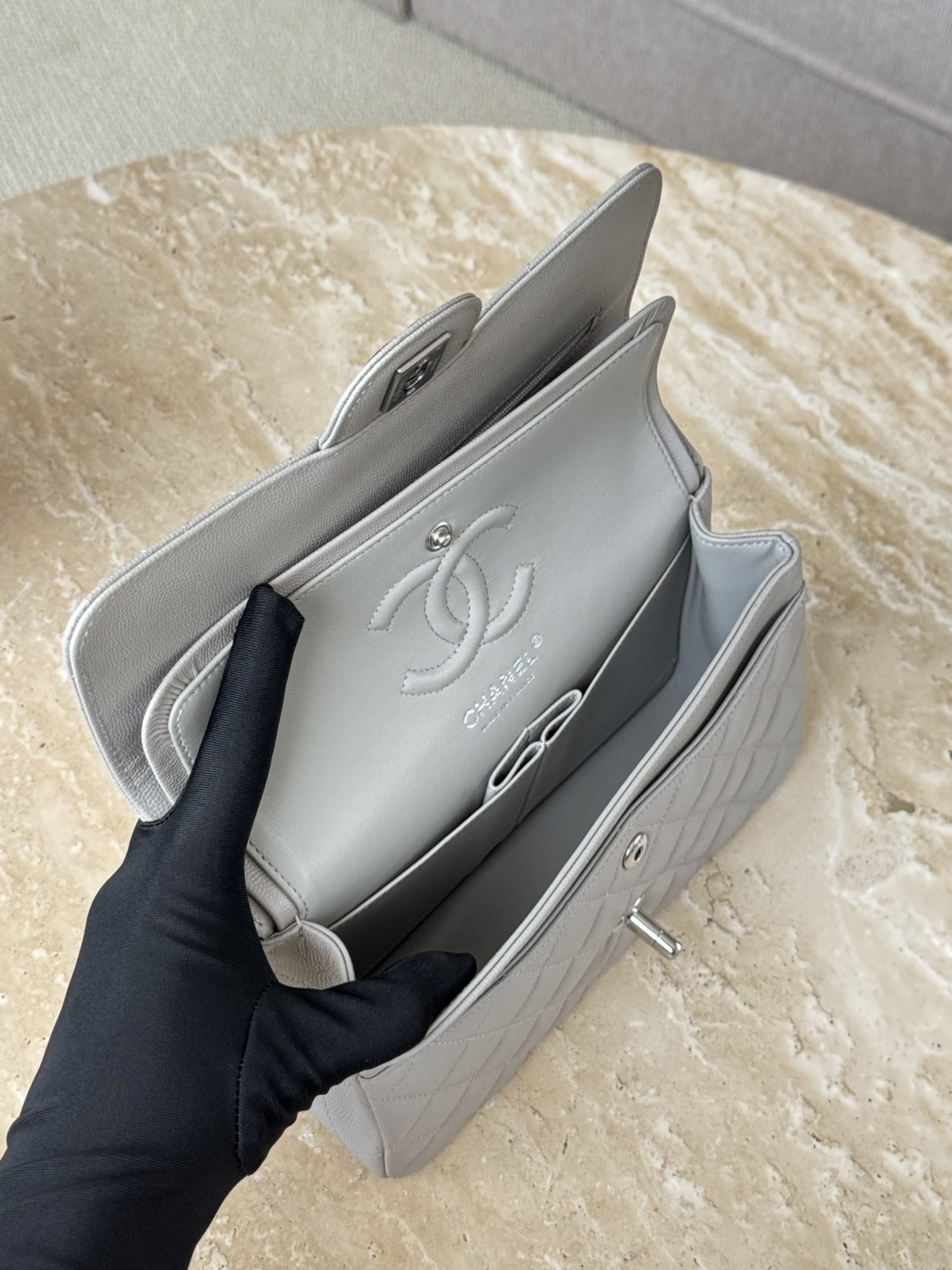 这款包包是AAAAA 1:1 质量 (非常棒). 使用了和原版一模一样的材料. 商标部分也保持了和香奈儿/Chanel一样. 图片拍摄是实物包包拍摄, 您所收到的实物保证和我们图片一模一样.