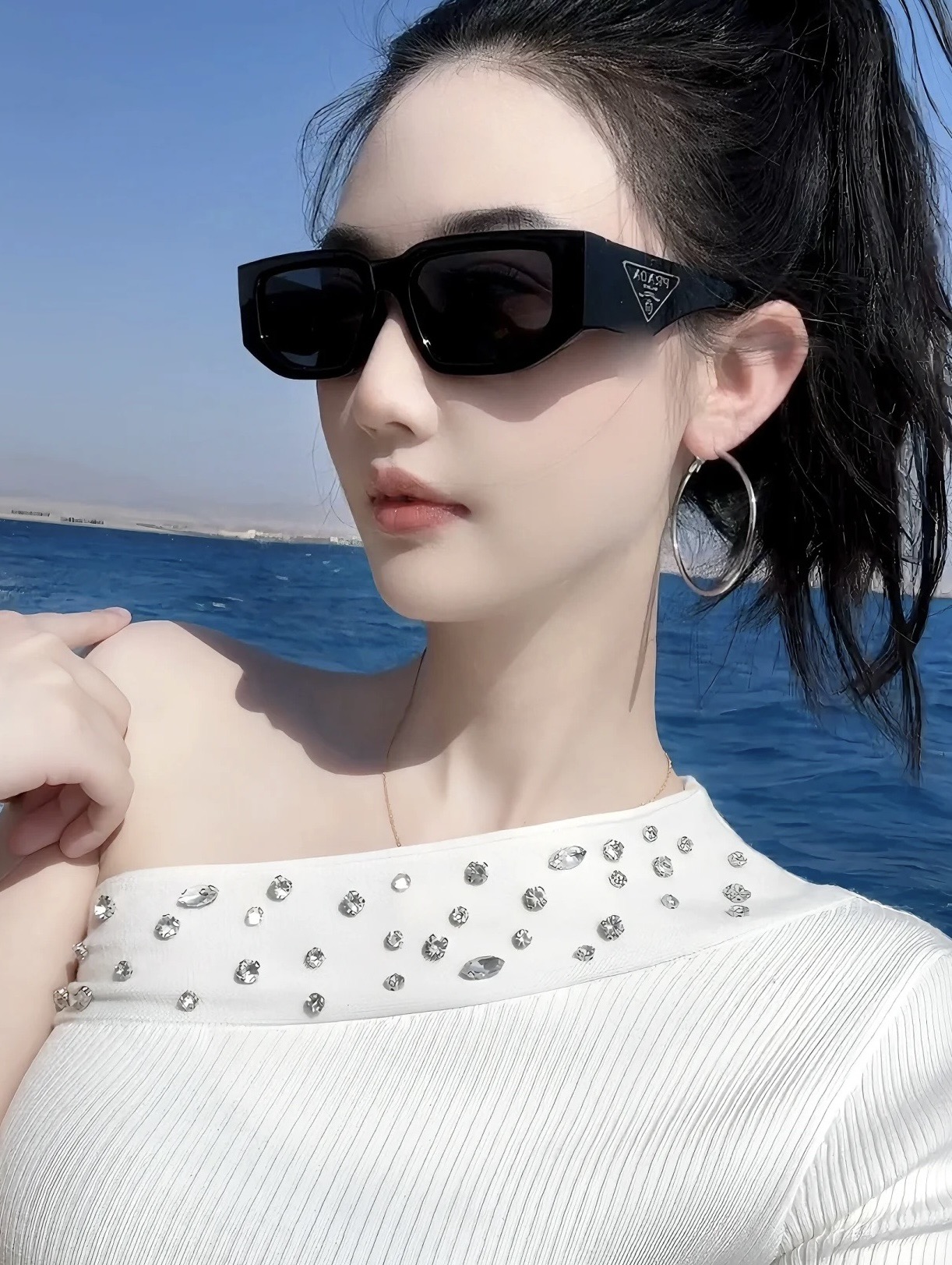 这款太阳眼镜是AAAAA 1:1 质量 (非常棒). 使用了和原版一模一样的材料. 商标部分也保持了和普拉达/Prada一样. 图片拍摄是实物太阳眼镜拍摄, 您所收到的实物保证和我们图片一模一样.