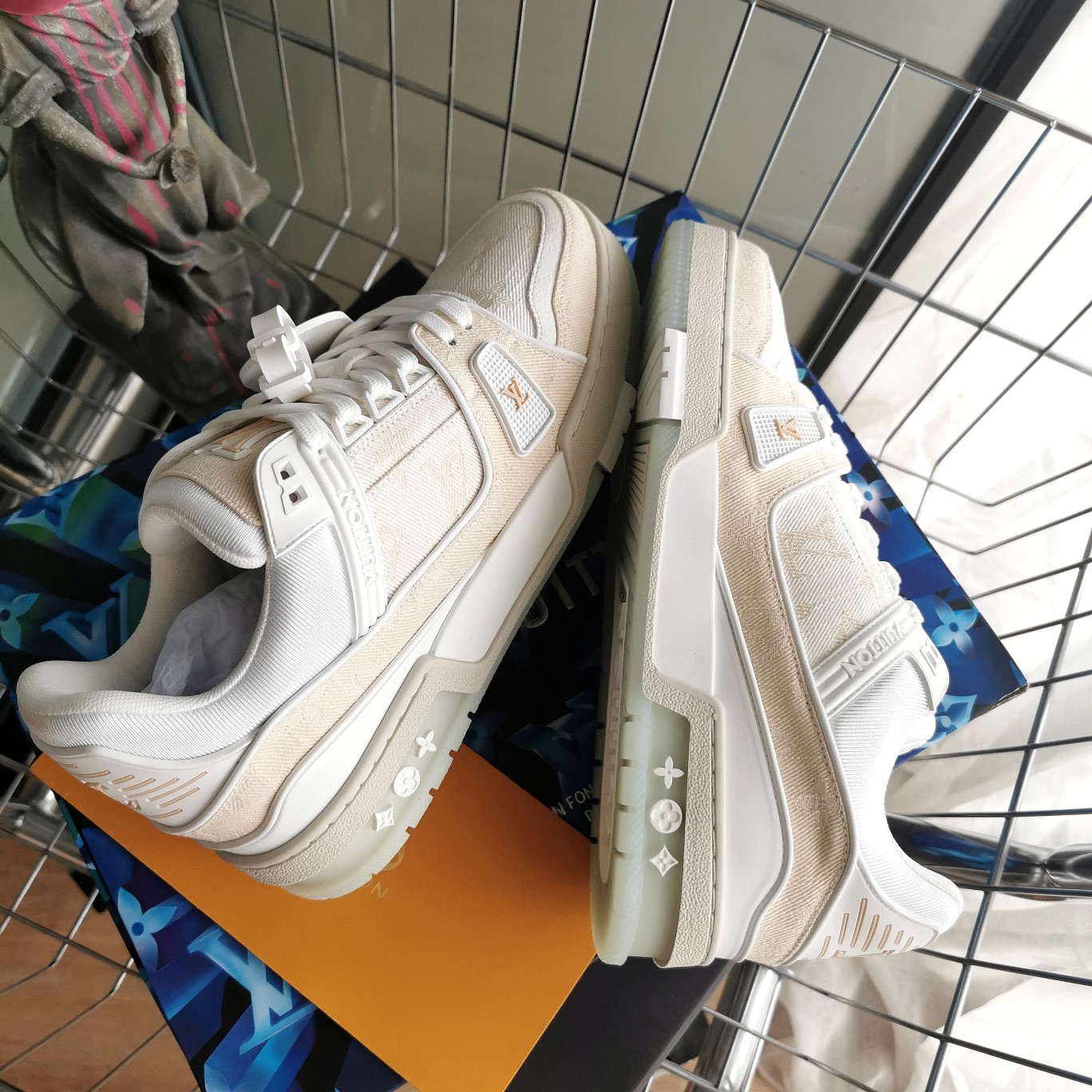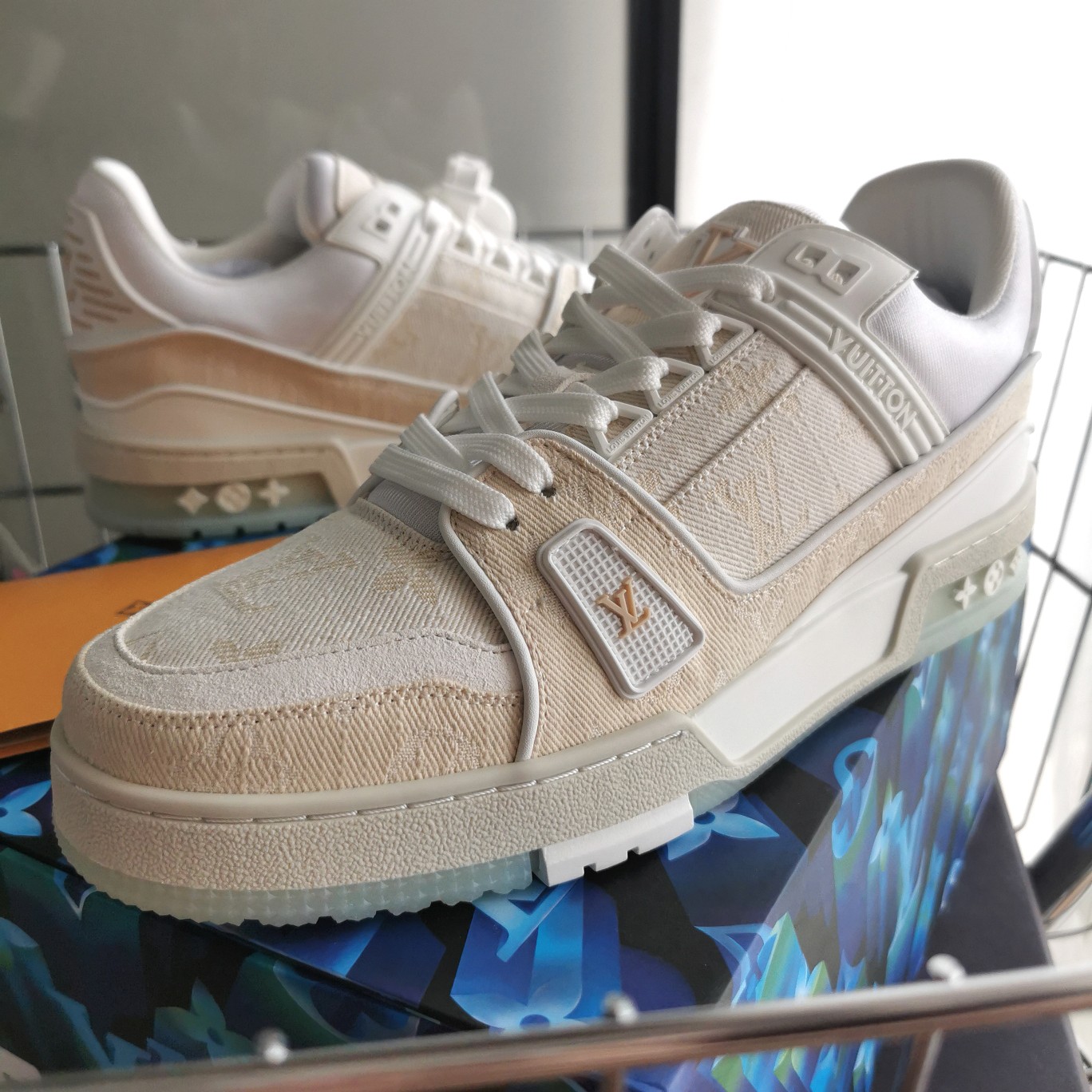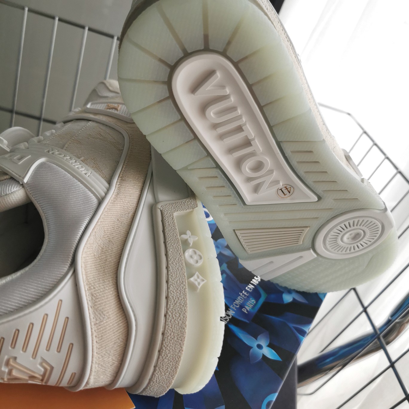 这款鞋子是AAAAA 1:1 质量 (非常棒). 使用了和原版一模一样的材料. 商标部分也保持了和路易威登/Louis Vuitton一样. 图片拍摄是实物鞋子拍摄, 您所收到的实物保证和我们图片一模一样.