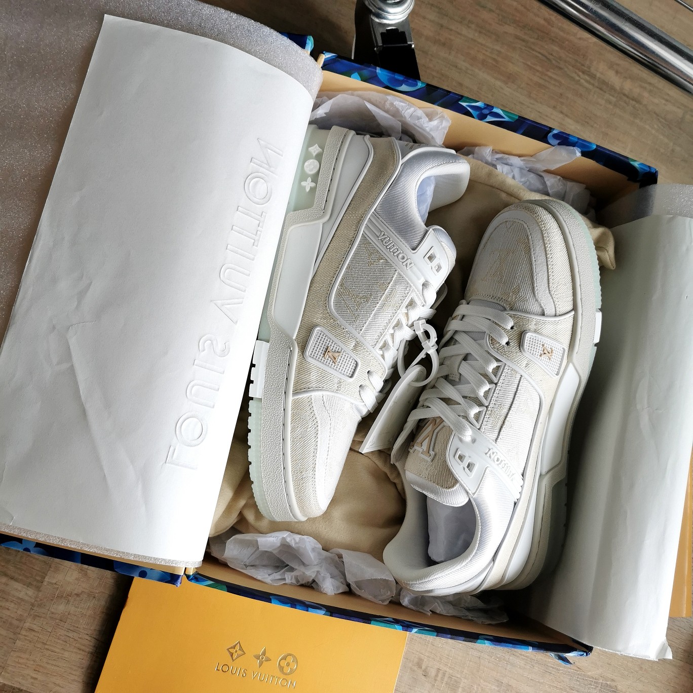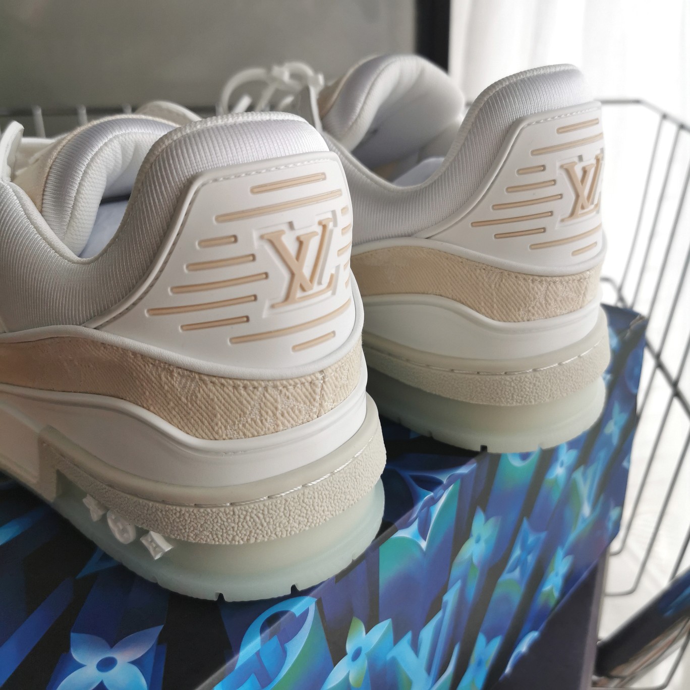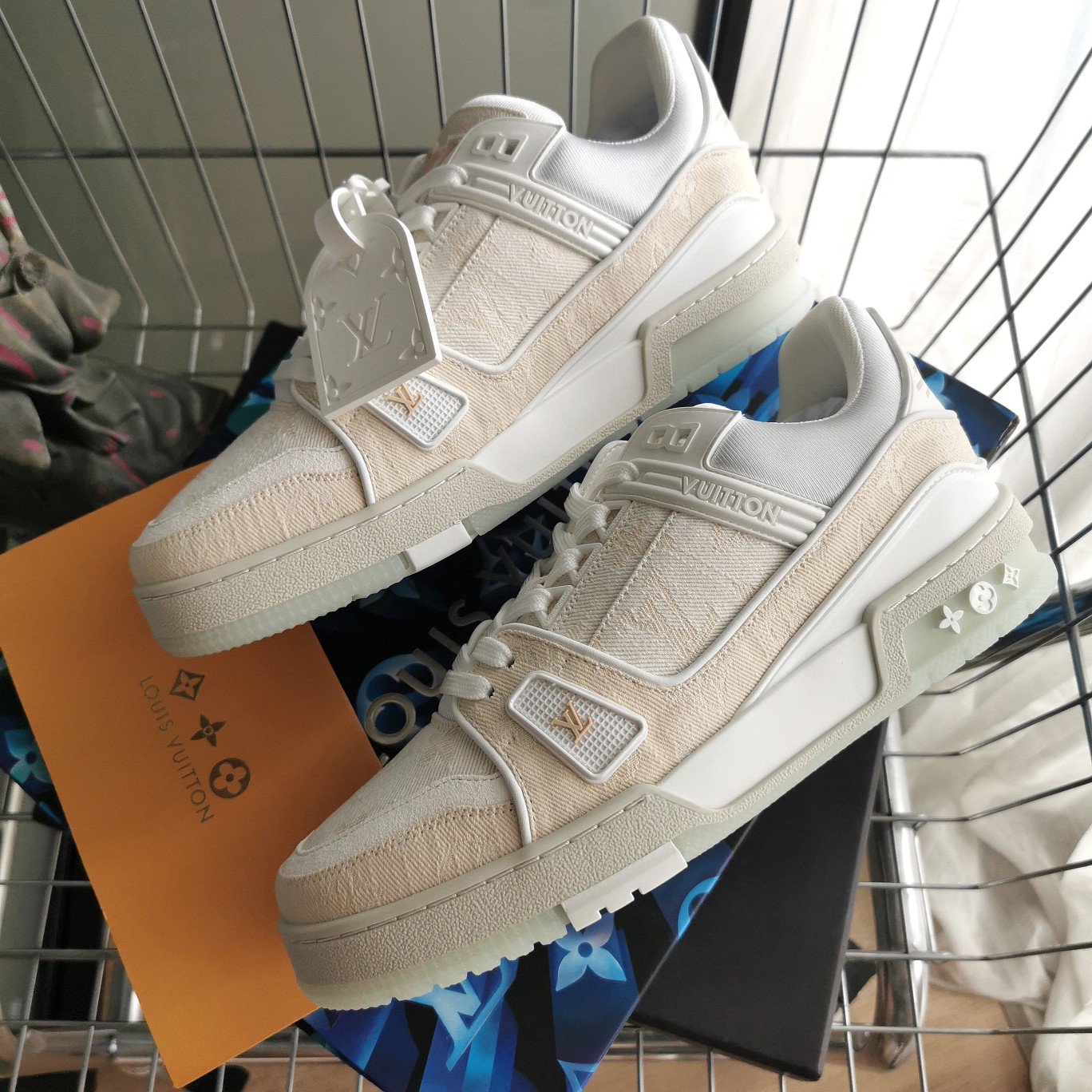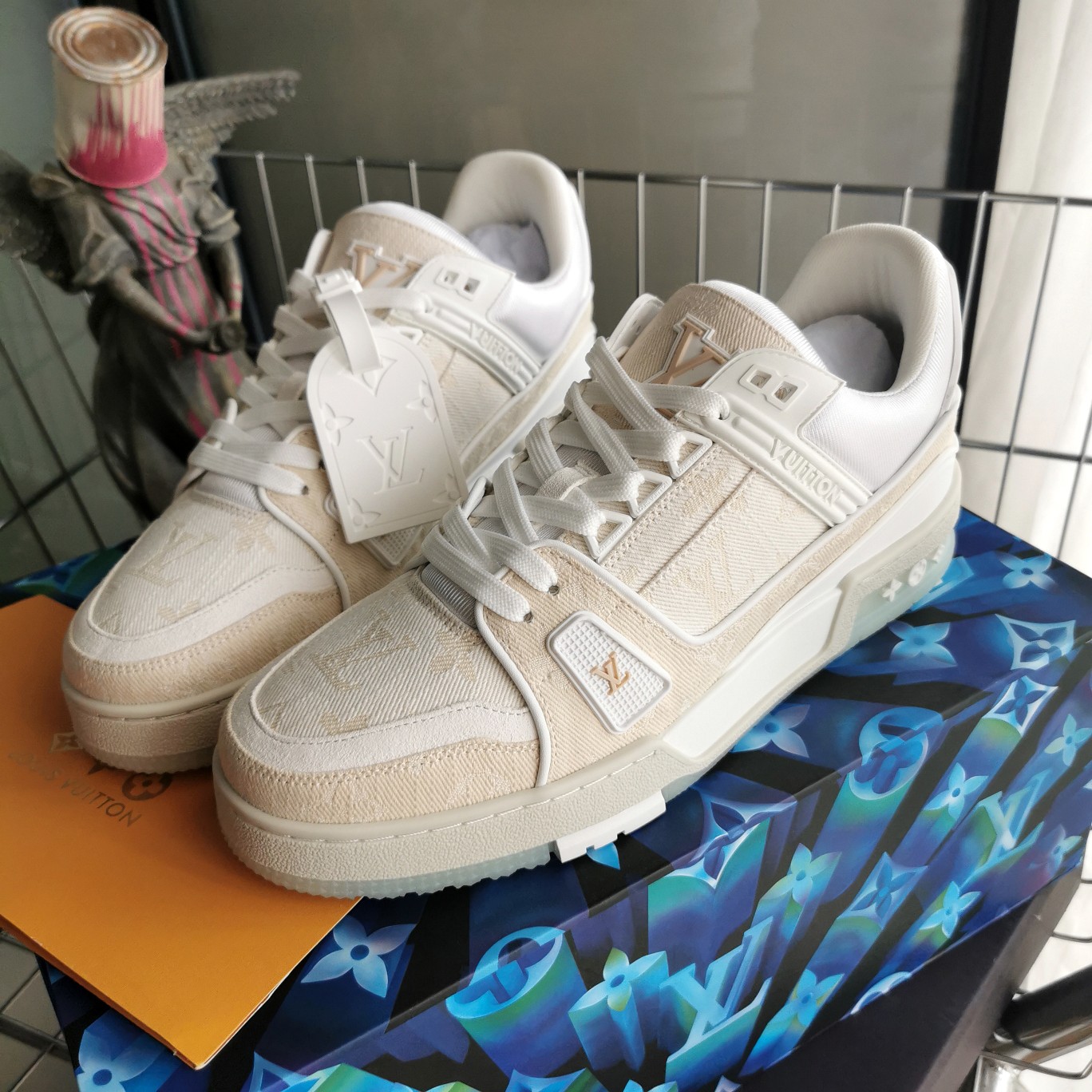 这款鞋子是AAAAA 1:1 质量 (非常棒). 使用了和原版一模一样的材料. 商标部分也保持了和路易威登/Louis Vuitton一样. 图片拍摄是实物鞋子拍摄, 您所收到的实物保证和我们图片一模一样.