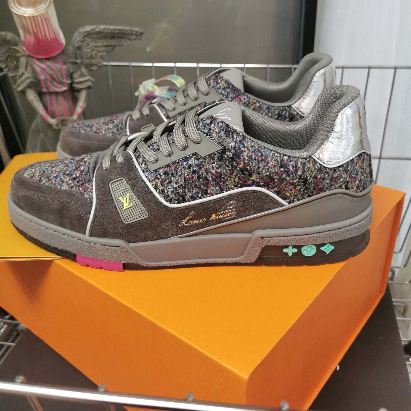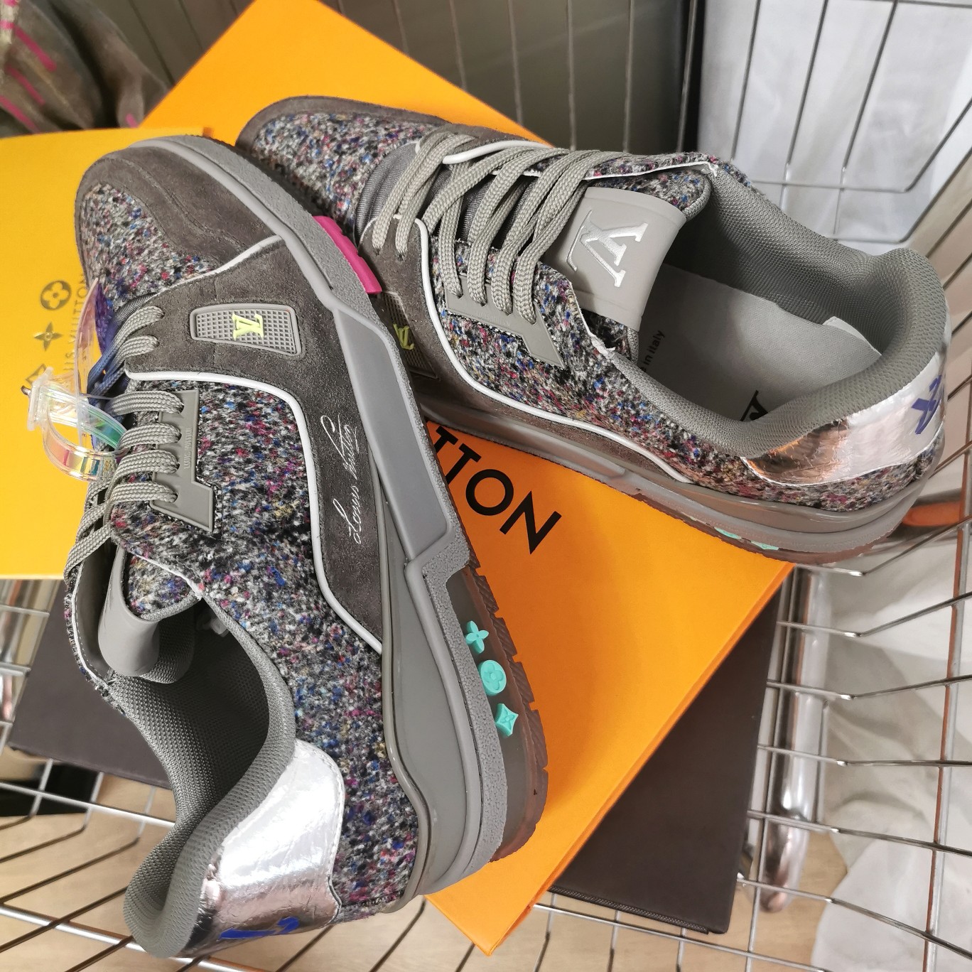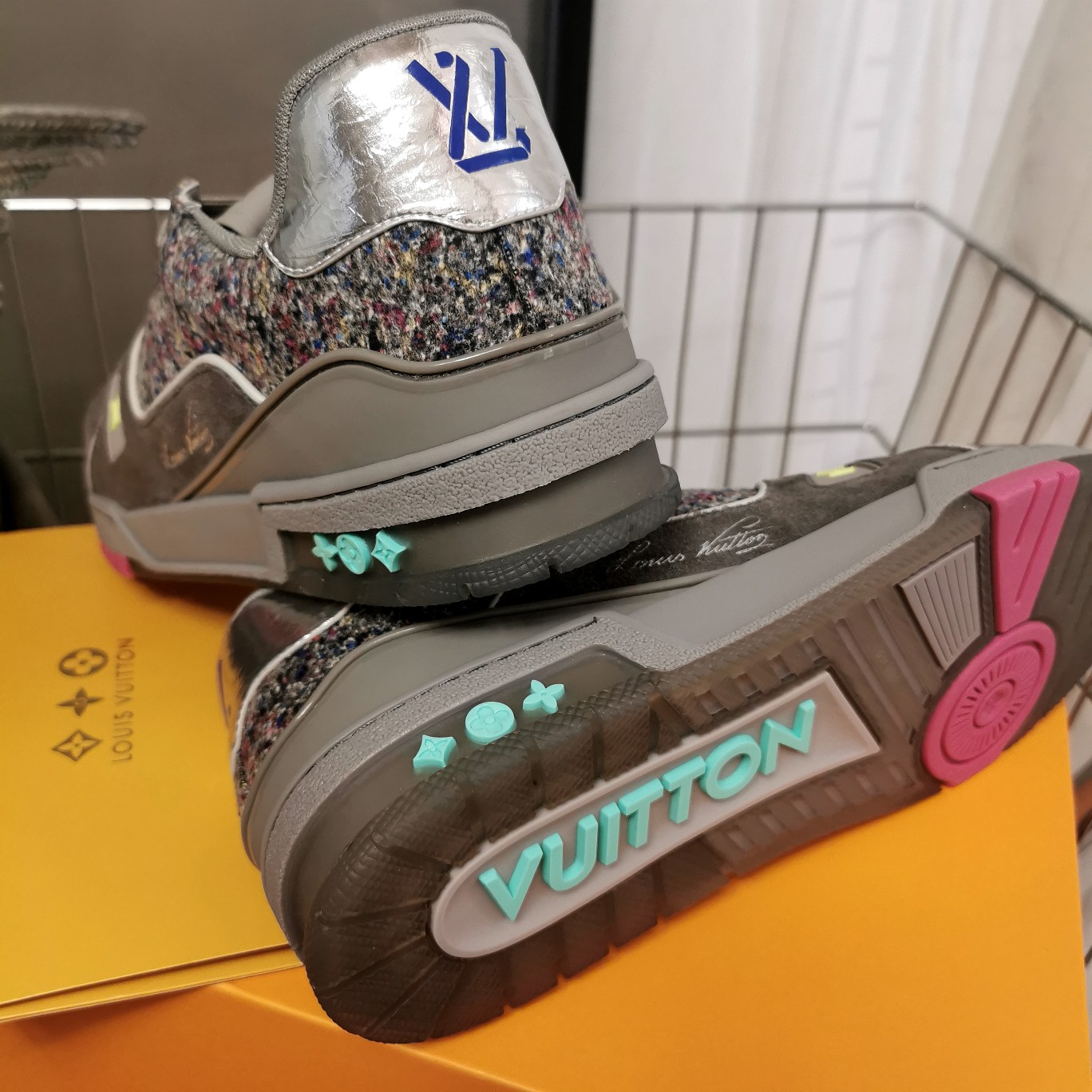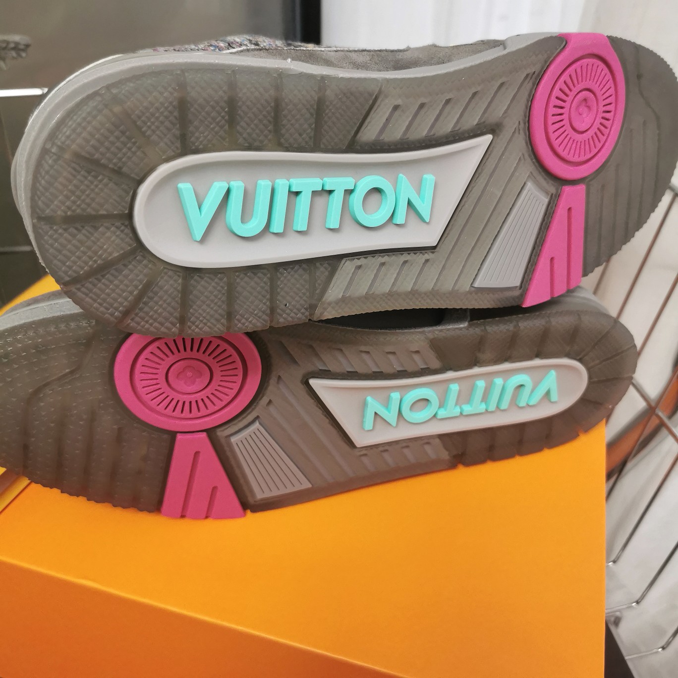 这款鞋子是AAAAA 1:1 质量 (非常棒). 使用了和原版一模一样的材料. 商标部分也保持了和路易威登/Louis Vuitton一样. 图片拍摄是实物鞋子拍摄, 您所收到的实物保证和我们图片一模一样.