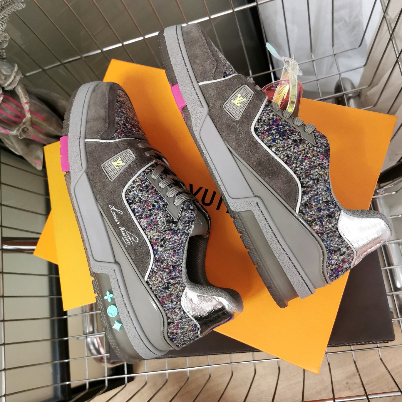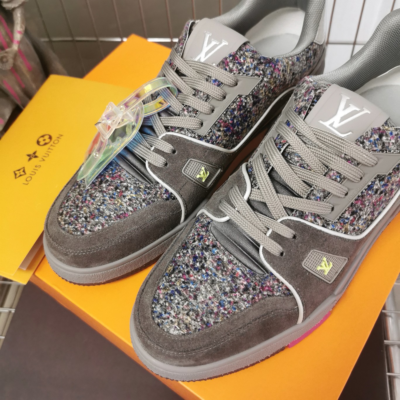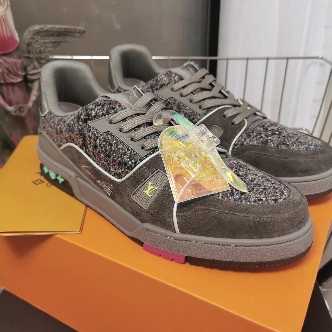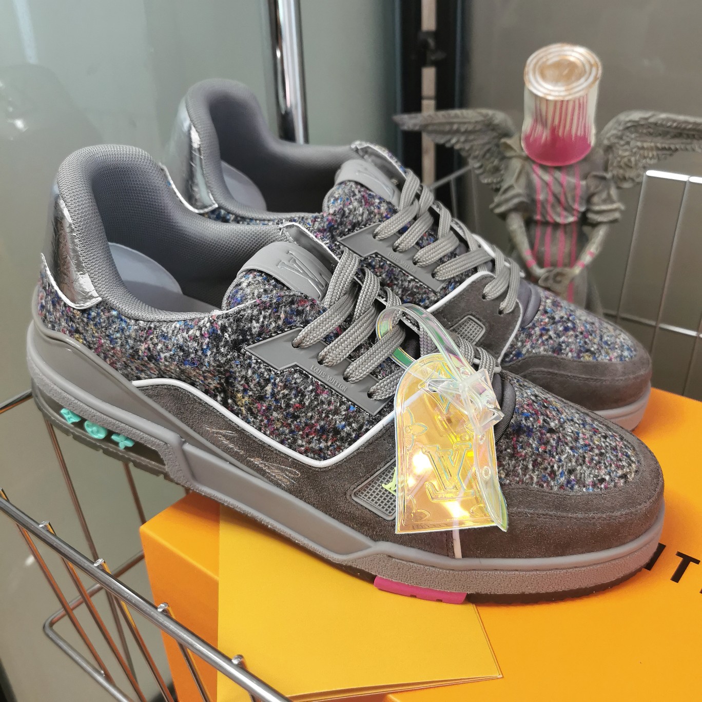 这款鞋子是AAAAA 1:1 质量 (非常棒). 使用了和原版一模一样的材料. 商标部分也保持了和路易威登/Louis Vuitton一样. 图片拍摄是实物鞋子拍摄, 您所收到的实物保证和我们图片一模一样.