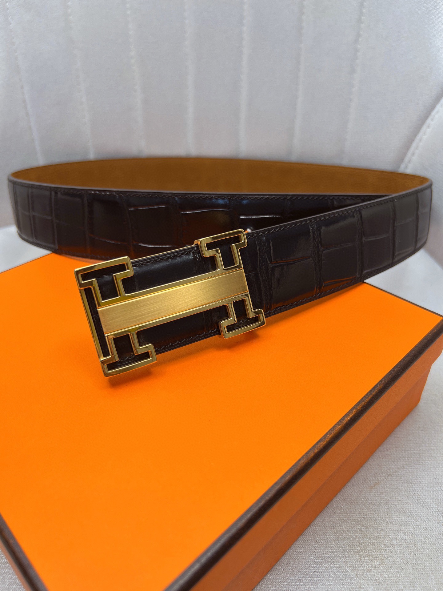 这款皮带是AAAAA 1:1 质量 (非常棒). 使用了和原版一模一样的材料. 商标部分也保持了和爱马仕/Hermes一样. 图片拍摄是实物皮带拍摄, 您所收到的实物保证和我们图片一模一样.