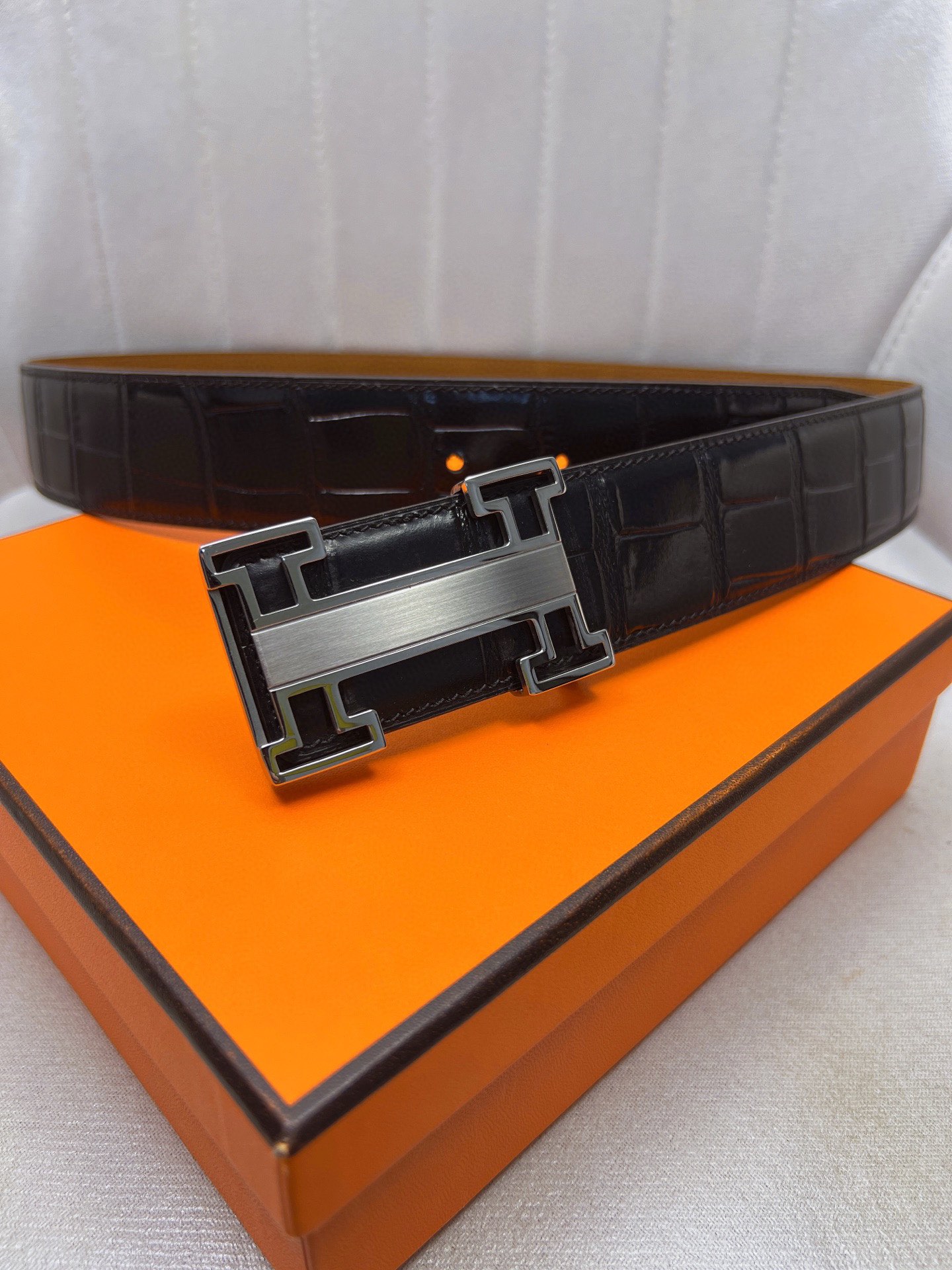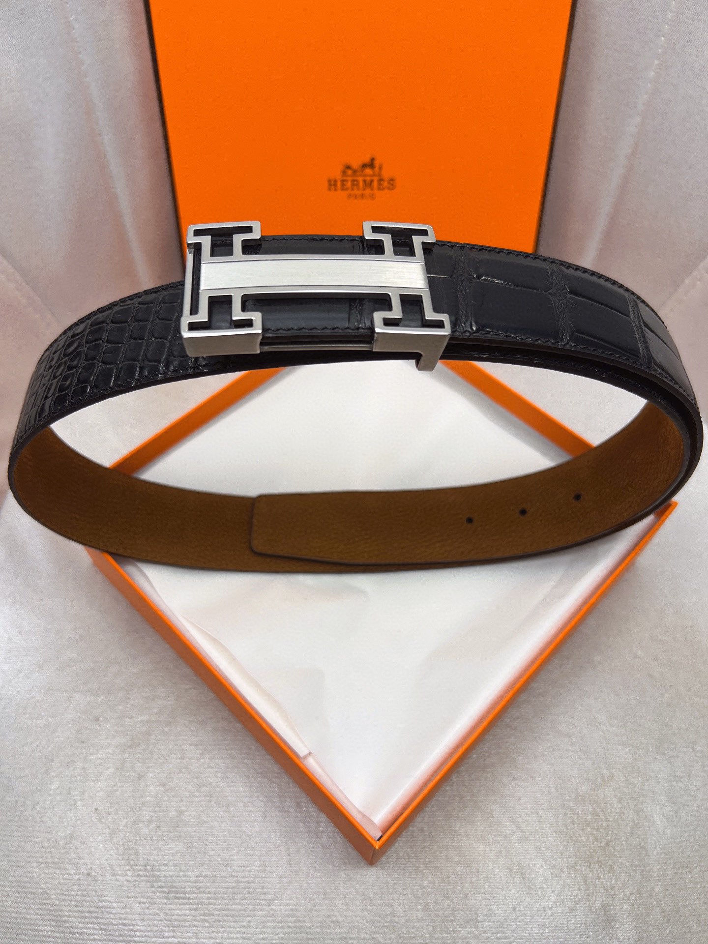 这款皮带是AAAAA 1:1 质量 (非常棒). 使用了和原版一模一样的材料. 商标部分也保持了和爱马仕/Hermes一样. 图片拍摄是实物皮带拍摄, 您所收到的实物保证和我们图片一模一样.
