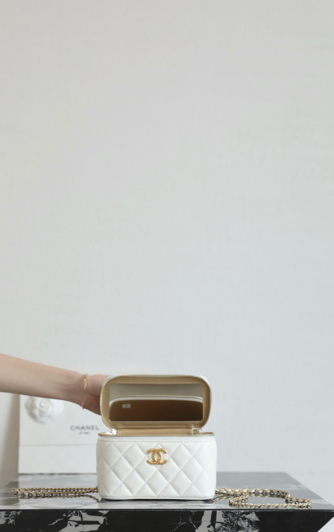 这款包包是AAAAA 1:1 质量 (非常棒). 使用了和原版一模一样的材料. 商标部分也保持了和香奈儿/Chanel一样. 图片拍摄是实物包包拍摄, 您所收到的实物保证和我们图片一模一样.