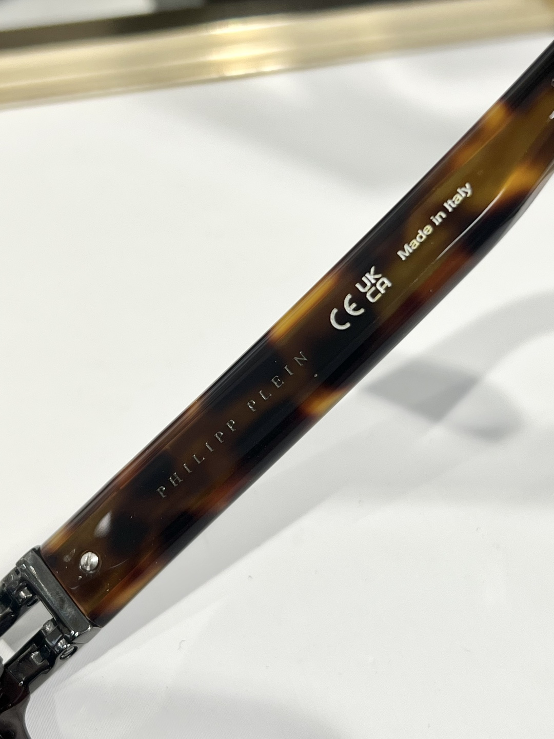 这款太阳眼镜是AAAAA 1:1 质量 (非常棒). 使用了和原版一模一样的材料. 商标部分也保持了和菲利普·普林/Philipp Plein一样. 图片拍摄是实物太阳眼镜拍摄, 您所收到的实物保证和我们图片一模一样.