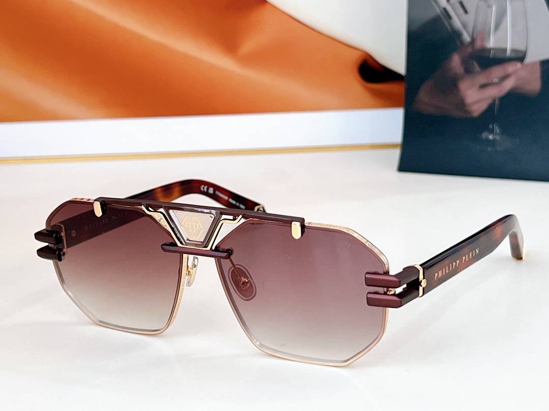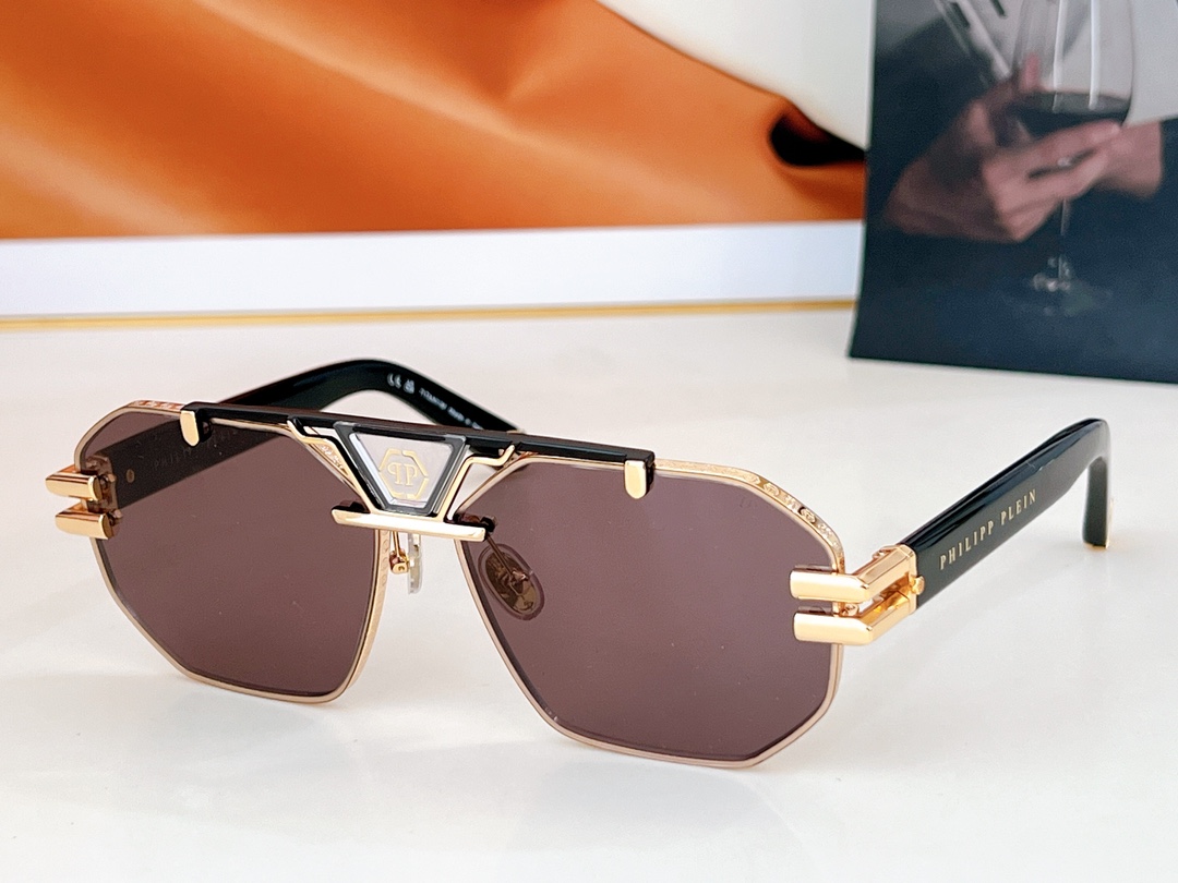 这款太阳眼镜是AAAAA 1:1 质量 (非常棒). 使用了和原版一模一样的材料. 商标部分也保持了和菲利普·普林/Philipp Plein一样. 图片拍摄是实物太阳眼镜拍摄, 您所收到的实物保证和我们图片一模一样.