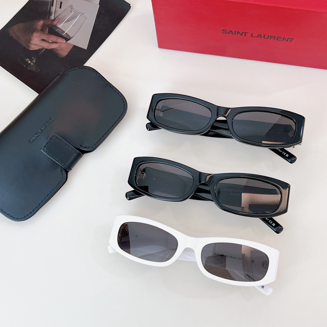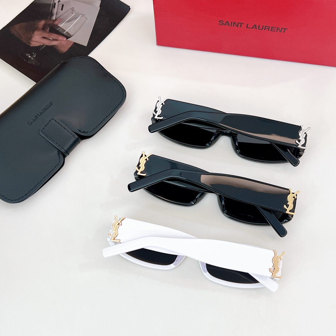 这款太阳眼镜是AAAAA 1:1 质量 (非常棒). 使用了和原版一模一样的材料. 商标部分也保持了和圣罗兰/Saint Laurent一样. 图片拍摄是实物太阳眼镜拍摄, 您所收到的实物保证和我们图片一模一样.