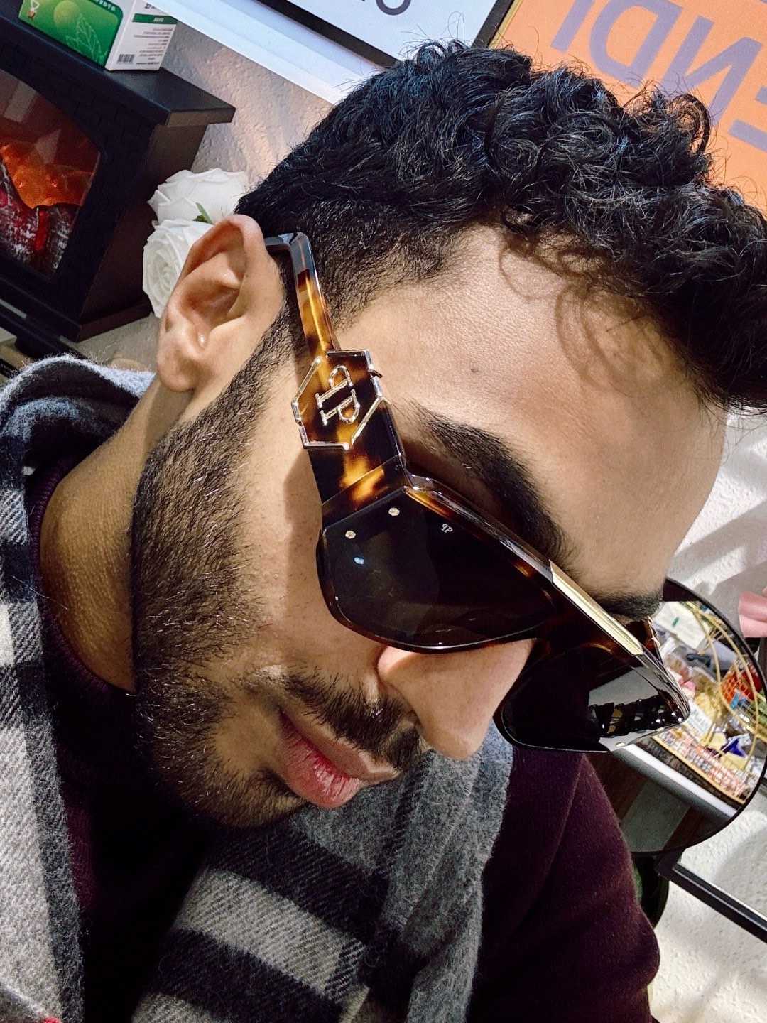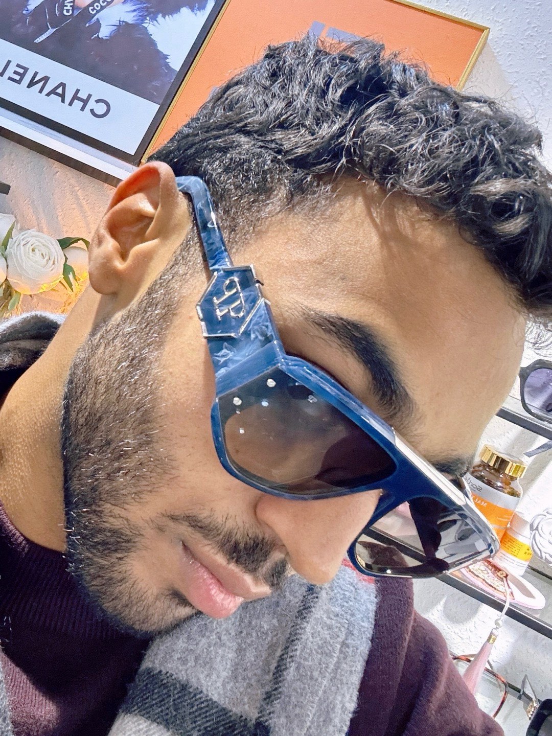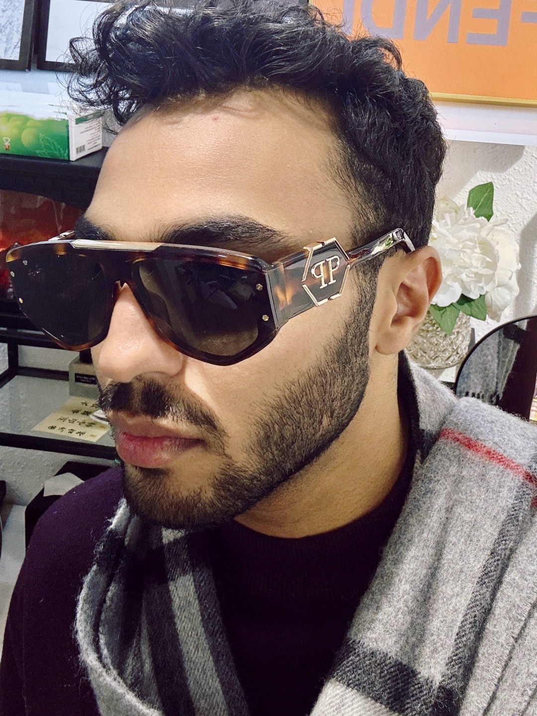 这款太阳眼镜是AAAAA 1:1 质量 (非常棒). 使用了和原版一模一样的材料. 商标部分也保持了和菲利普·普林/Philipp Plein一样. 图片拍摄是实物太阳眼镜拍摄, 您所收到的实物保证和我们图片一模一样.