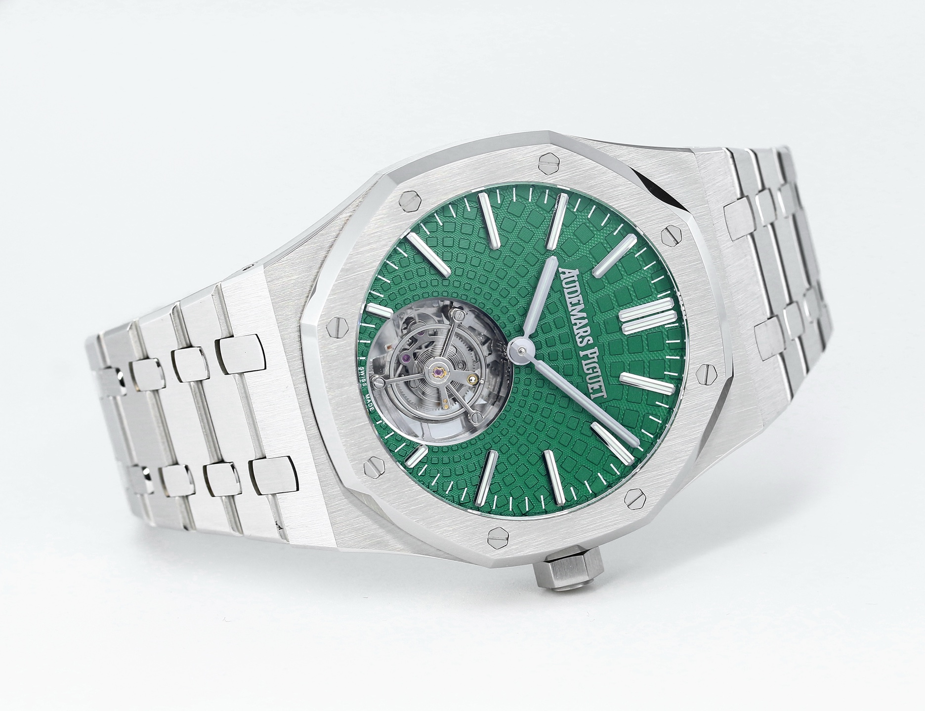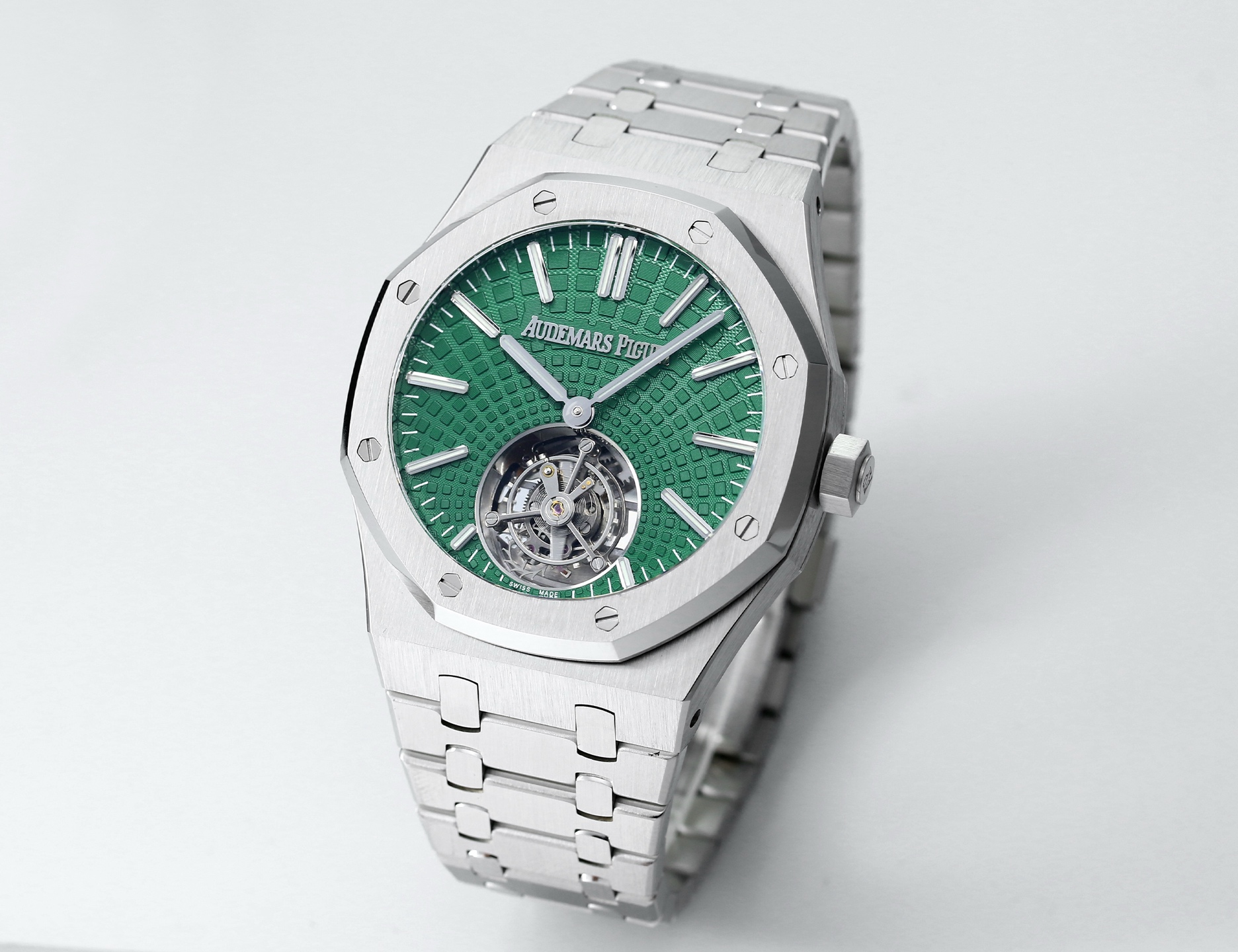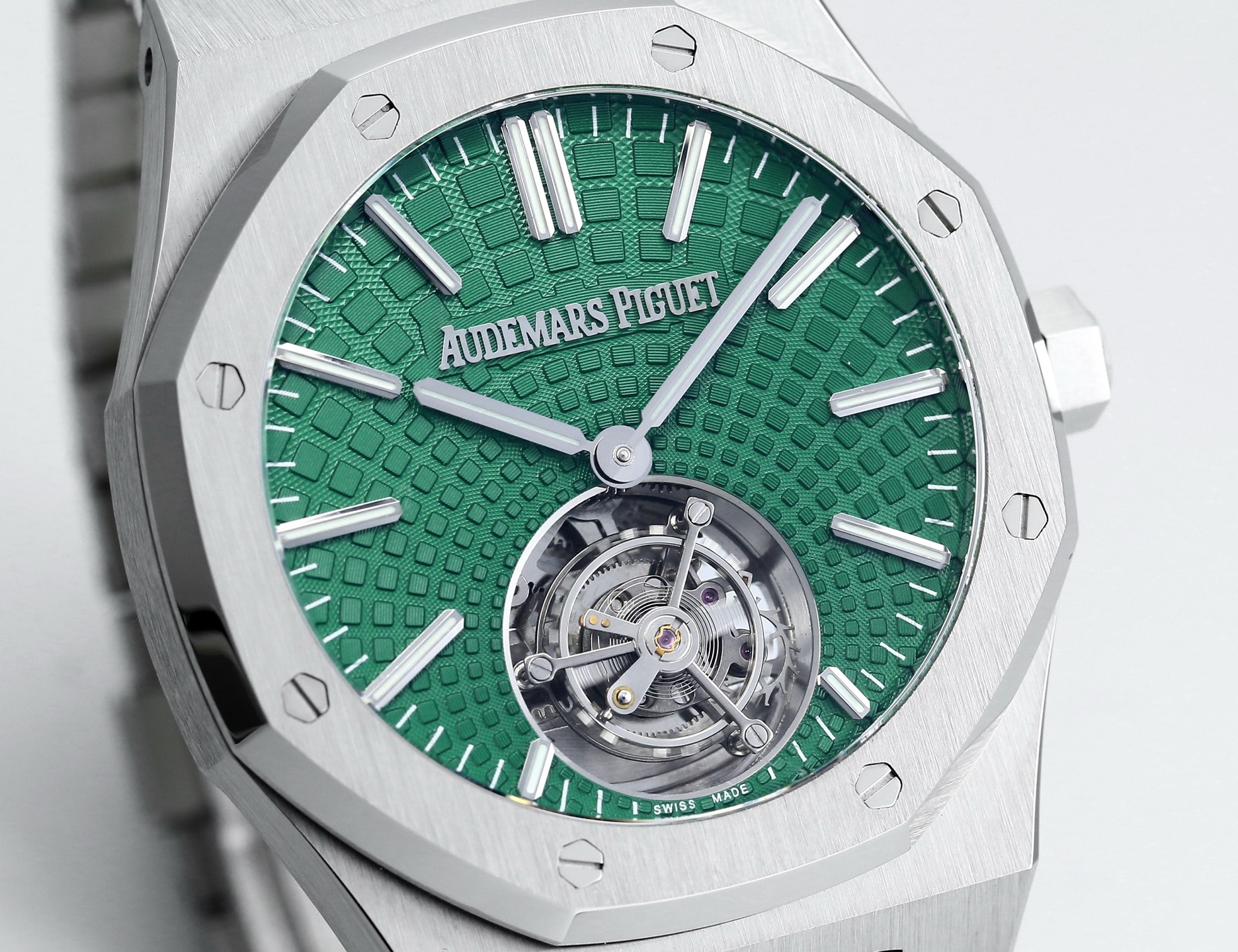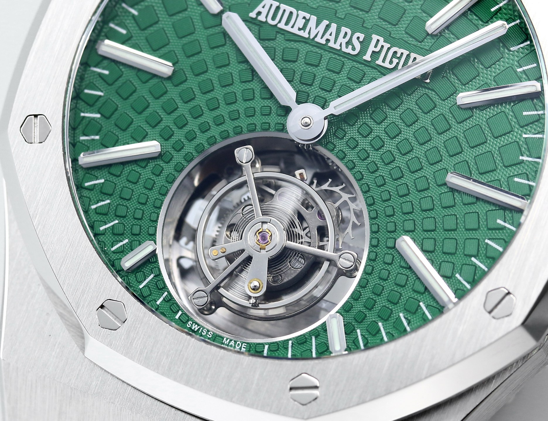 这款手表是AAAAA 1:1 质量 (非常棒). 使用了和原版一模一样的材料. 商标部分也保持了和爱彼/Audemars Piguet一样. 图片拍摄是实物手表拍摄, 您所收到的实物保证和我们图片一模一样.