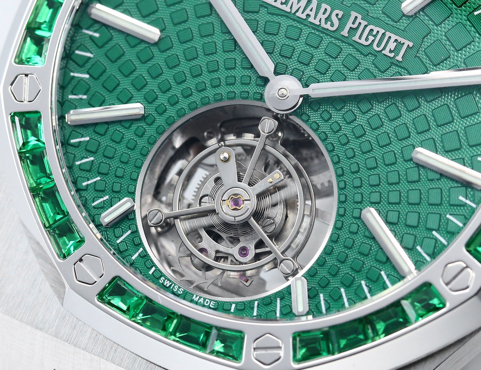 这款手表是AAAAA 1:1 质量 (非常棒). 使用了和原版一模一样的材料. 商标部分也保持了和爱彼/Audemars Piguet一样. 图片拍摄是实物手表拍摄, 您所收到的实物保证和我们图片一模一样.