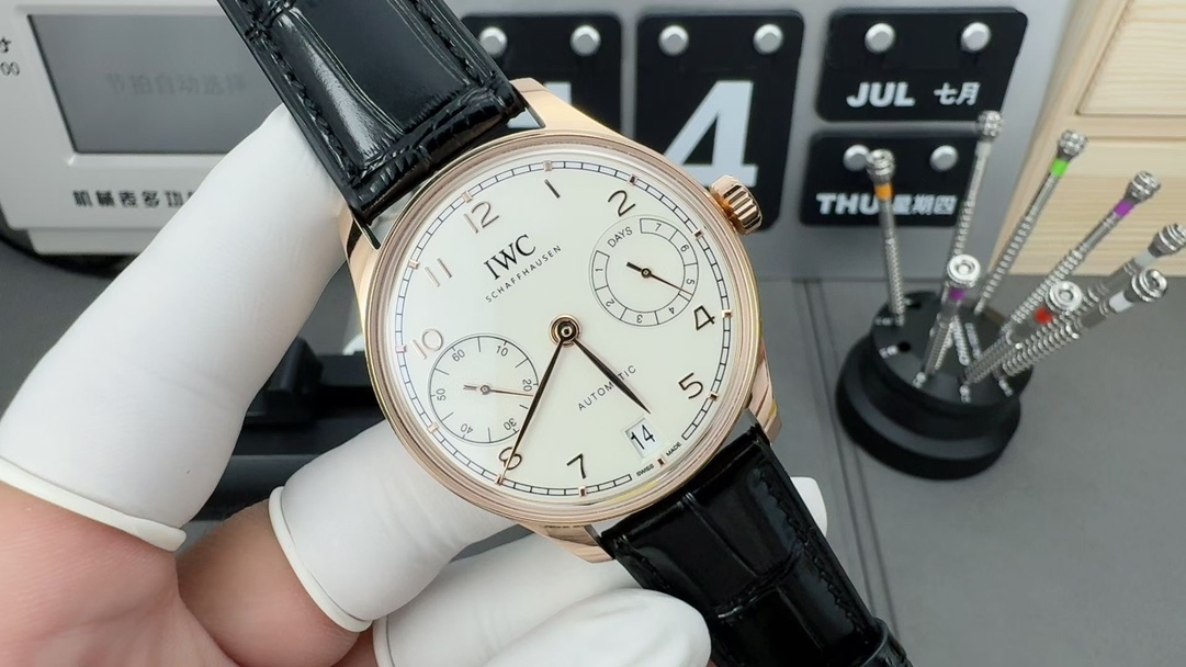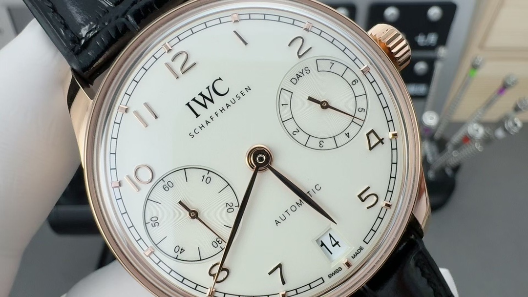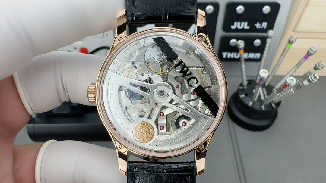 这款手表是AAAAA 1:1 质量 (非常棒). 使用了和原版一模一样的材料. 商标部分也保持了和万国表/IWC Schaffhausen一样. 图片拍摄是实物手表拍摄, 您所收到的实物保证和我们图片一模一样.