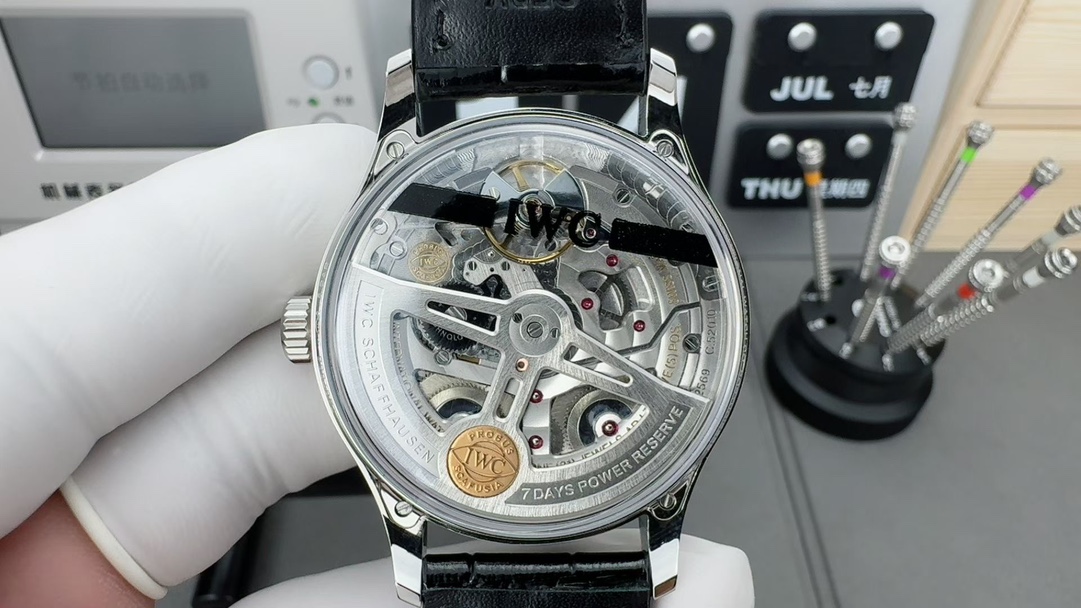 这款手表是AAAAA 1:1 质量 (非常棒). 使用了和原版一模一样的材料. 商标部分也保持了和万国表/IWC Schaffhausen一样. 图片拍摄是实物手表拍摄, 您所收到的实物保证和我们图片一模一样.