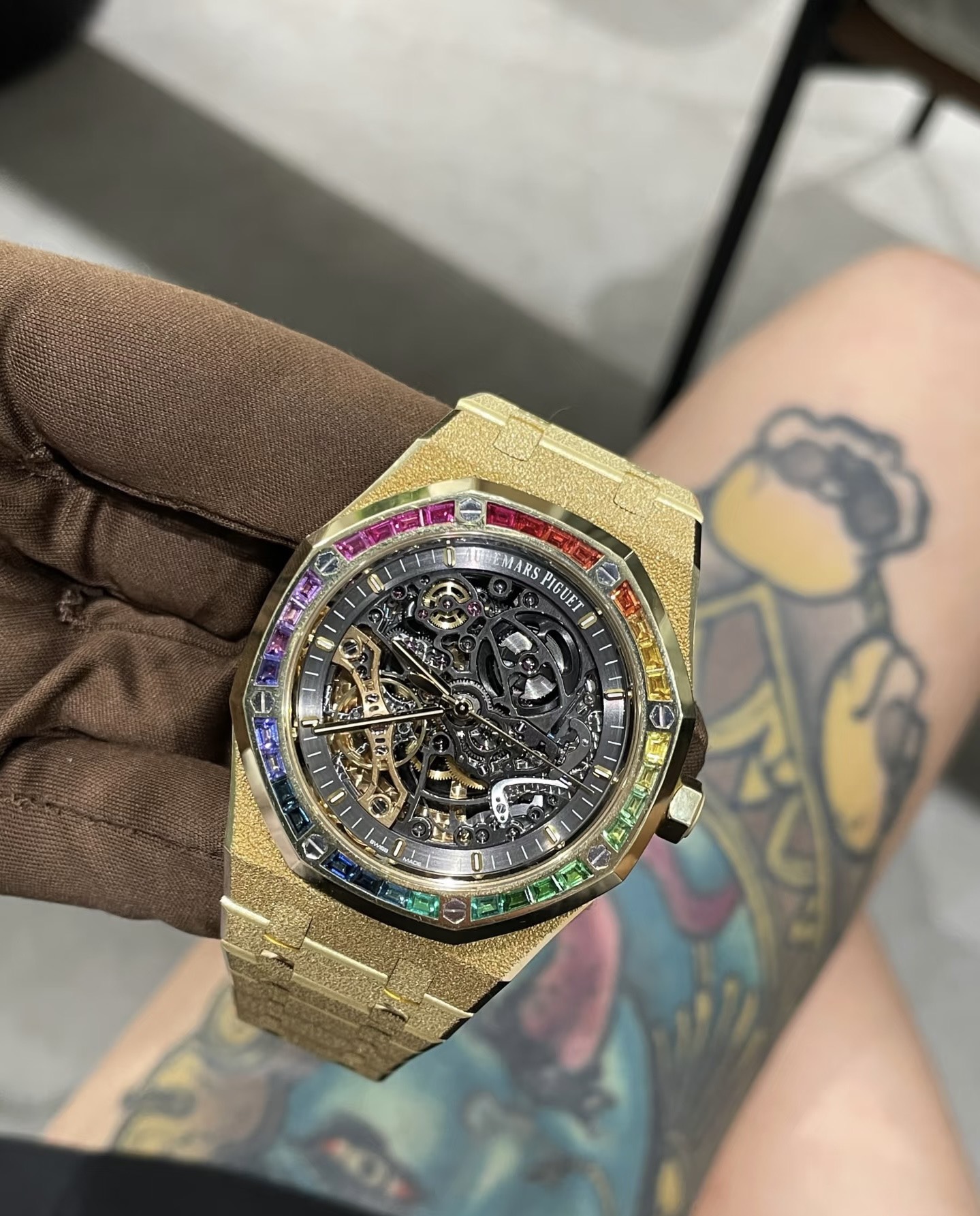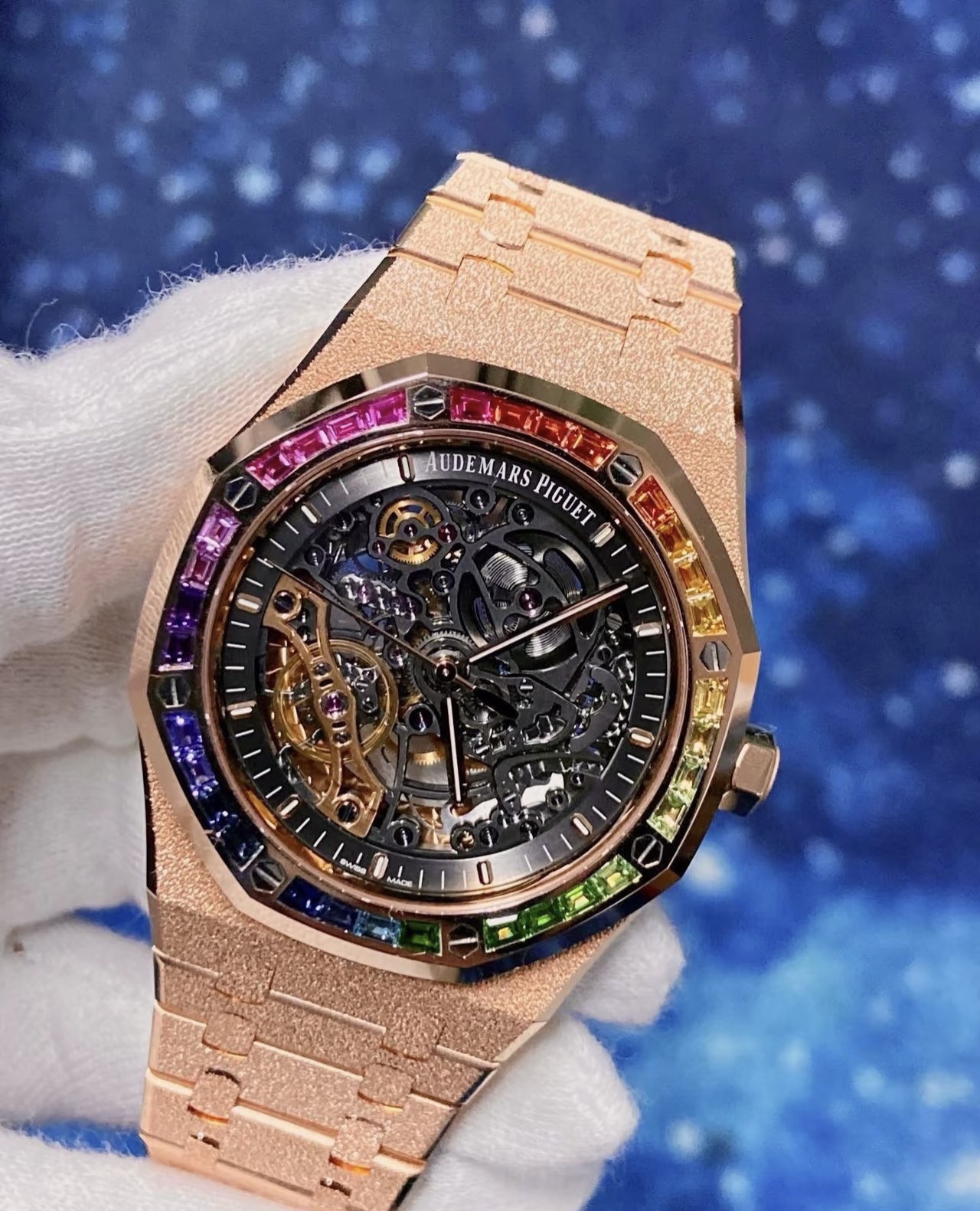 这款手表是AAAAA 1:1 质量 (非常棒). 使用了和原版一模一样的材料. 商标部分也保持了和爱彼/Audemars Piguet一样. 图片拍摄是实物手表拍摄, 您所收到的实物保证和我们图片一模一样.