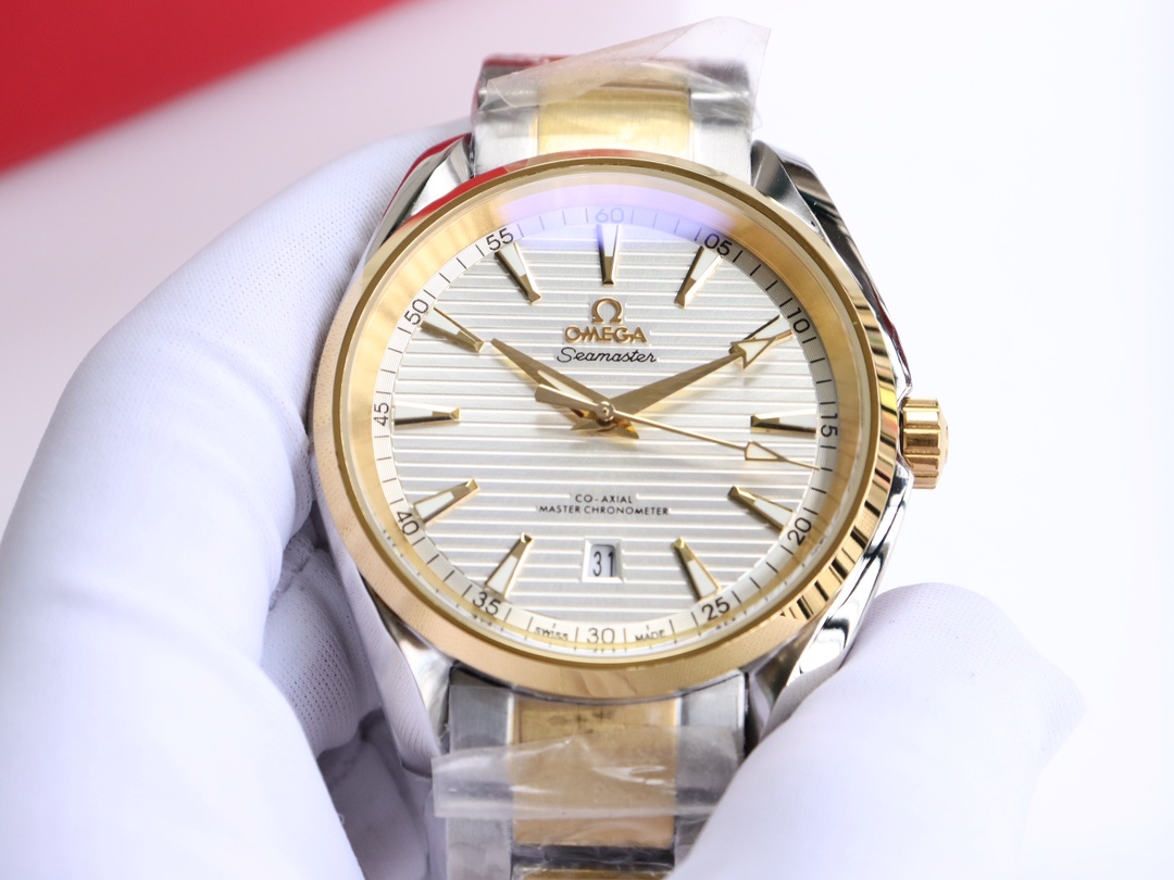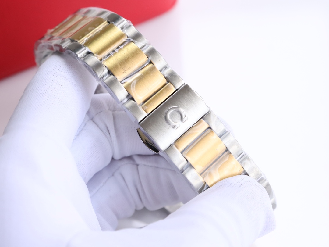 这款手表是AAAAA 1:1 质量 (非常棒). 使用了和原版一模一样的材料. 商标部分也保持了和欧米茄/Omega一样. 图片拍摄是实物手表拍摄, 您所收到的实物保证和我们图片一模一样.