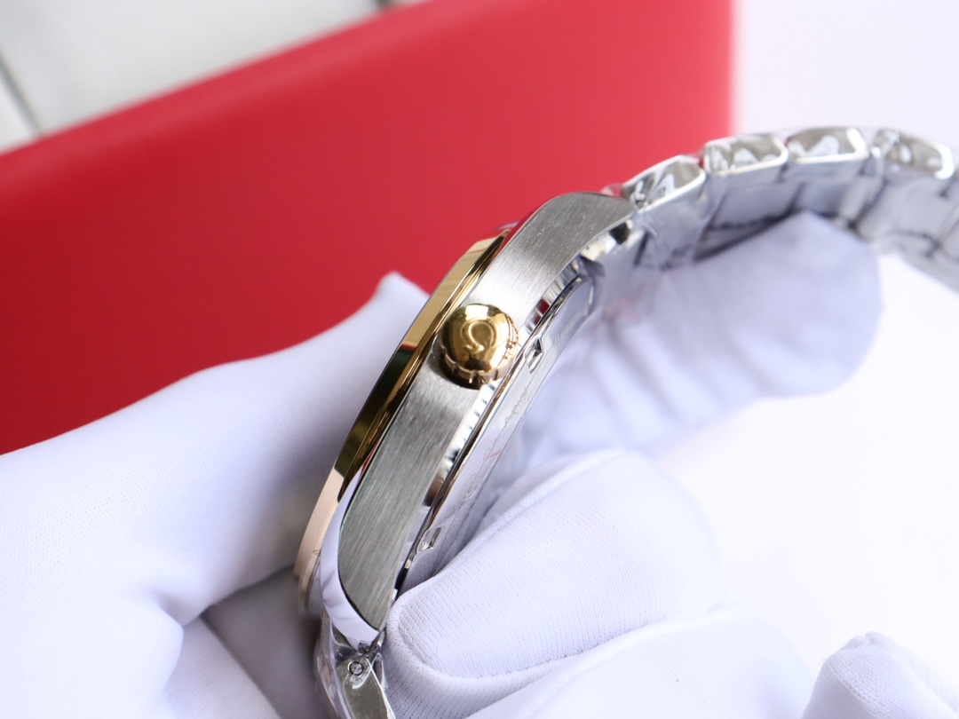 这款手表是AAAAA 1:1 质量 (非常棒). 使用了和原版一模一样的材料. 商标部分也保持了和欧米茄/Omega一样. 图片拍摄是实物手表拍摄, 您所收到的实物保证和我们图片一模一样.