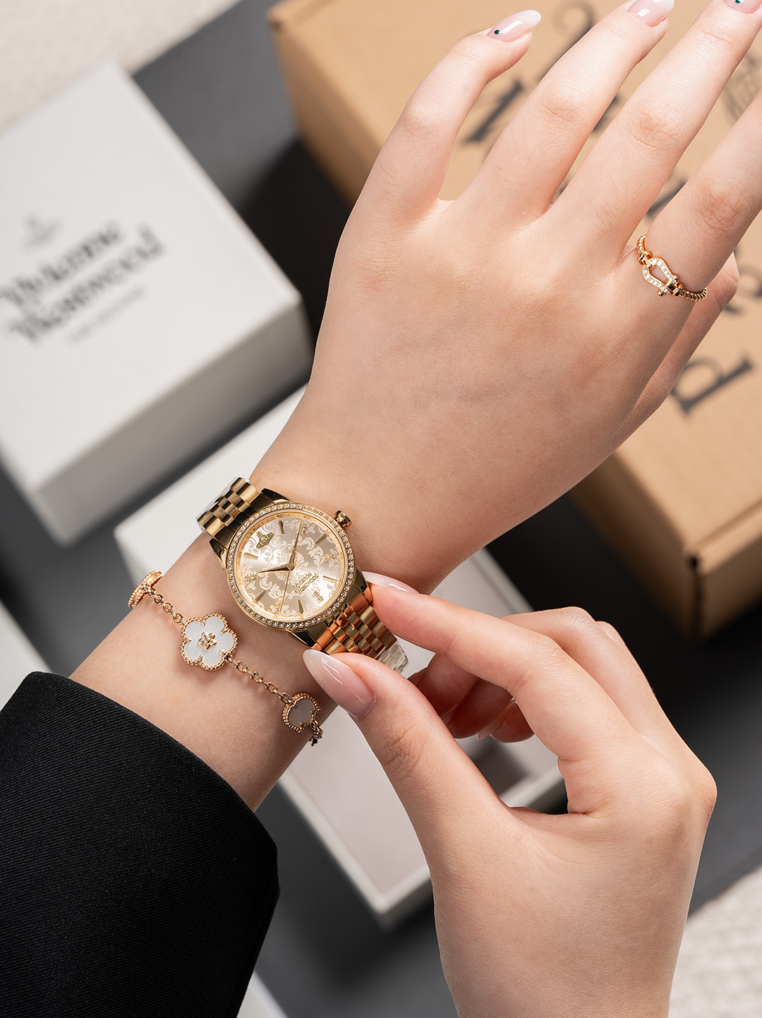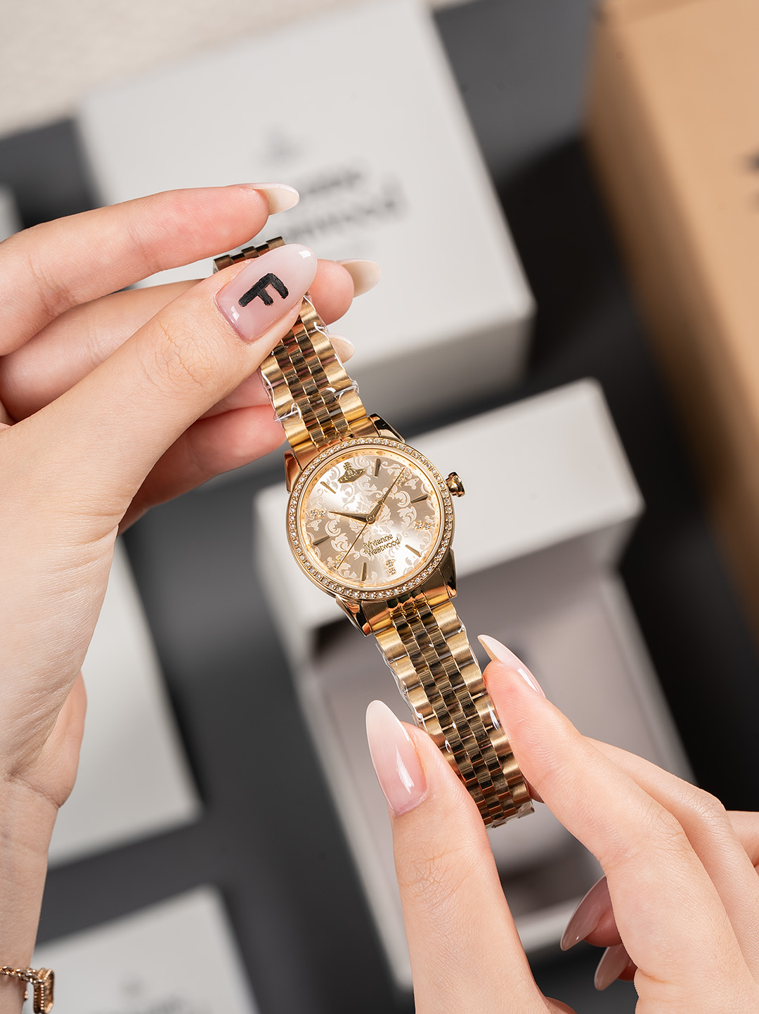 这款手表是AAAAA 1:1 质量 (非常棒). 使用了和原版一模一样的材料. 商标部分也保持了和Vivienne WESTwood一样. 图片拍摄是实物手表拍摄, 您所收到的实物保证和我们图片一模一样.