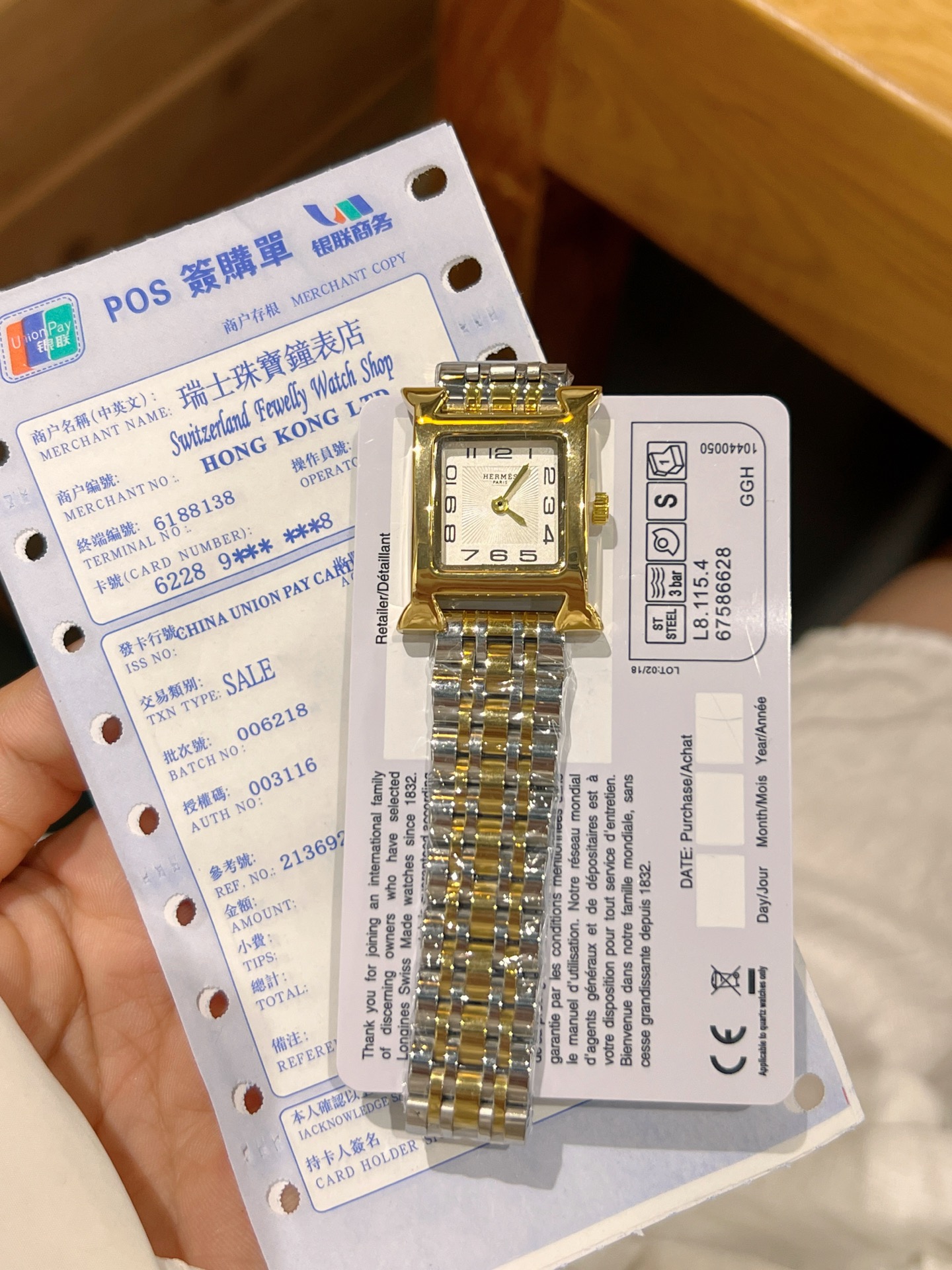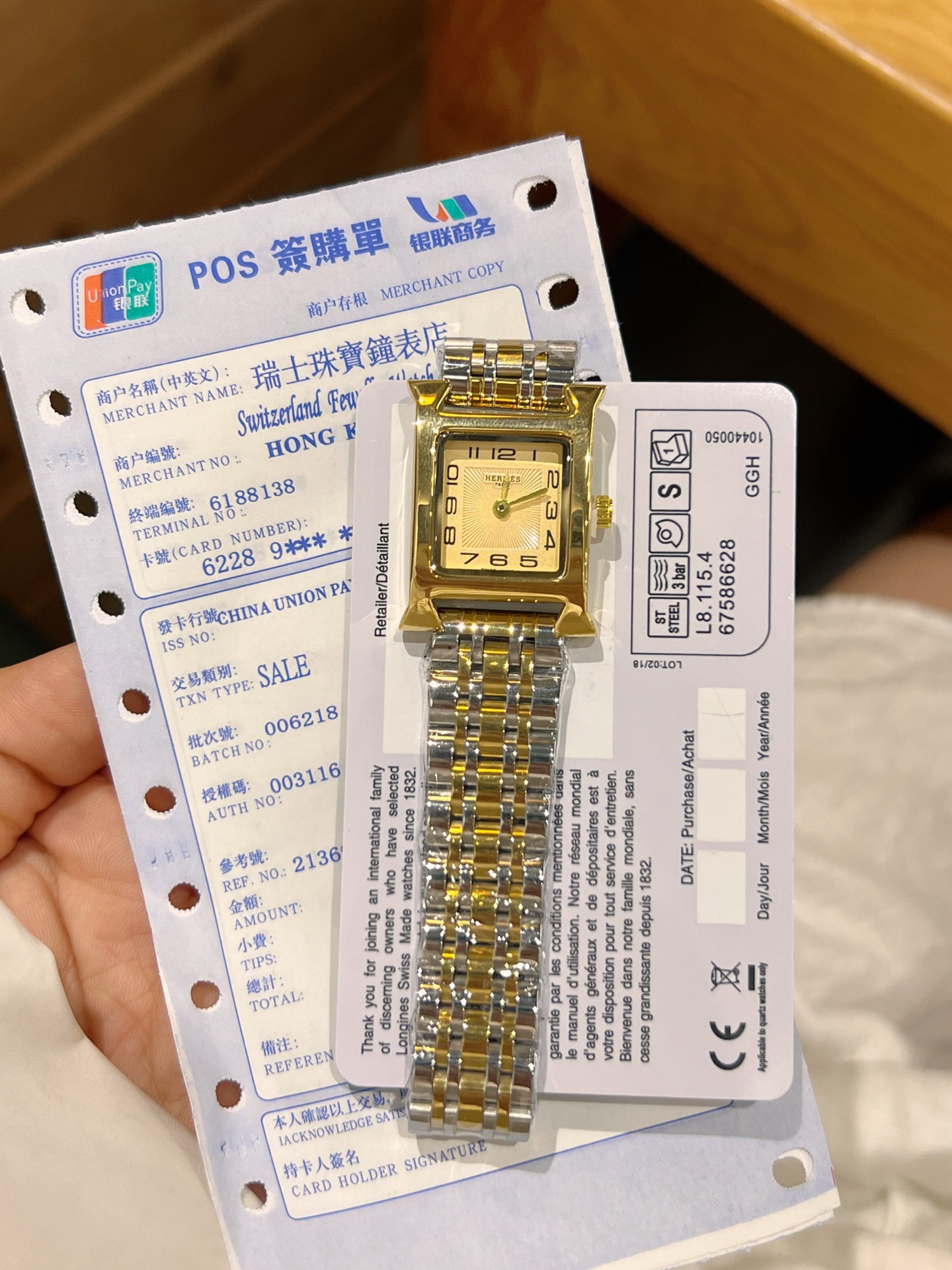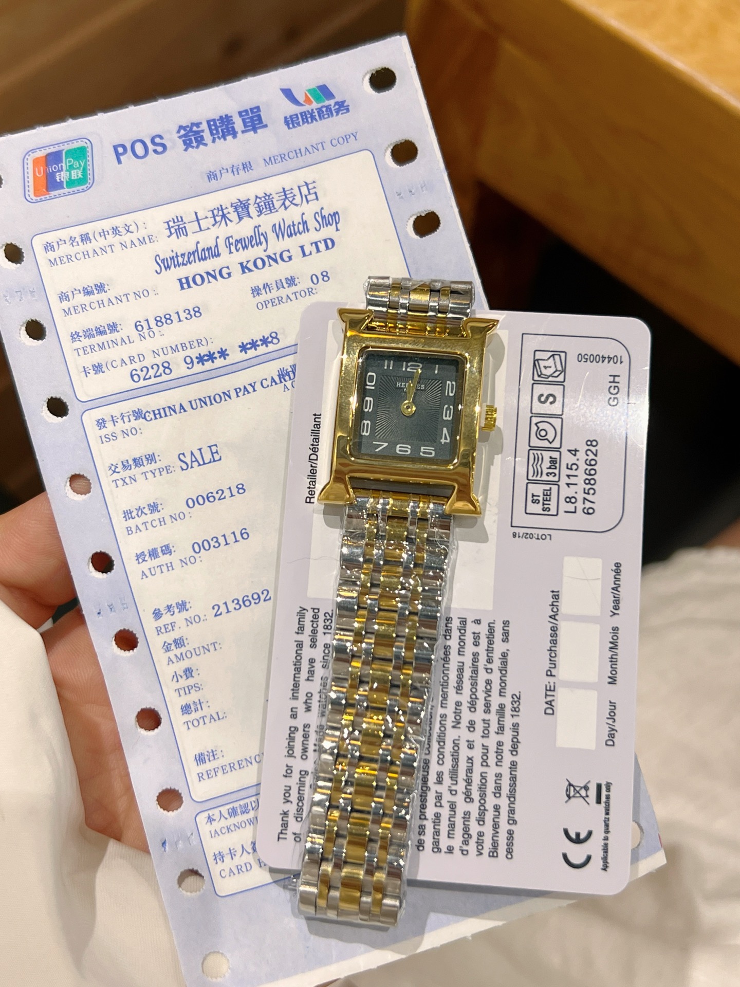 这款手表是AAAAA 1:1 质量 (非常棒). 使用了和原版一模一样的材料. 商标部分也保持了和爱马仕/Hermes一样. 图片拍摄是实物手表拍摄, 您所收到的实物保证和我们图片一模一样.
