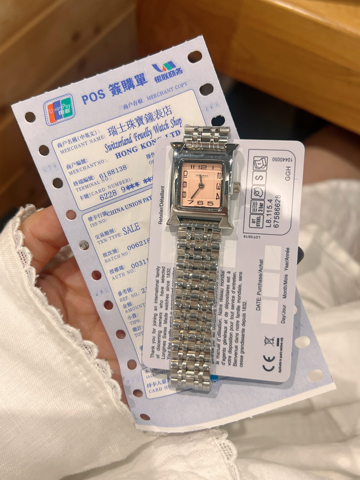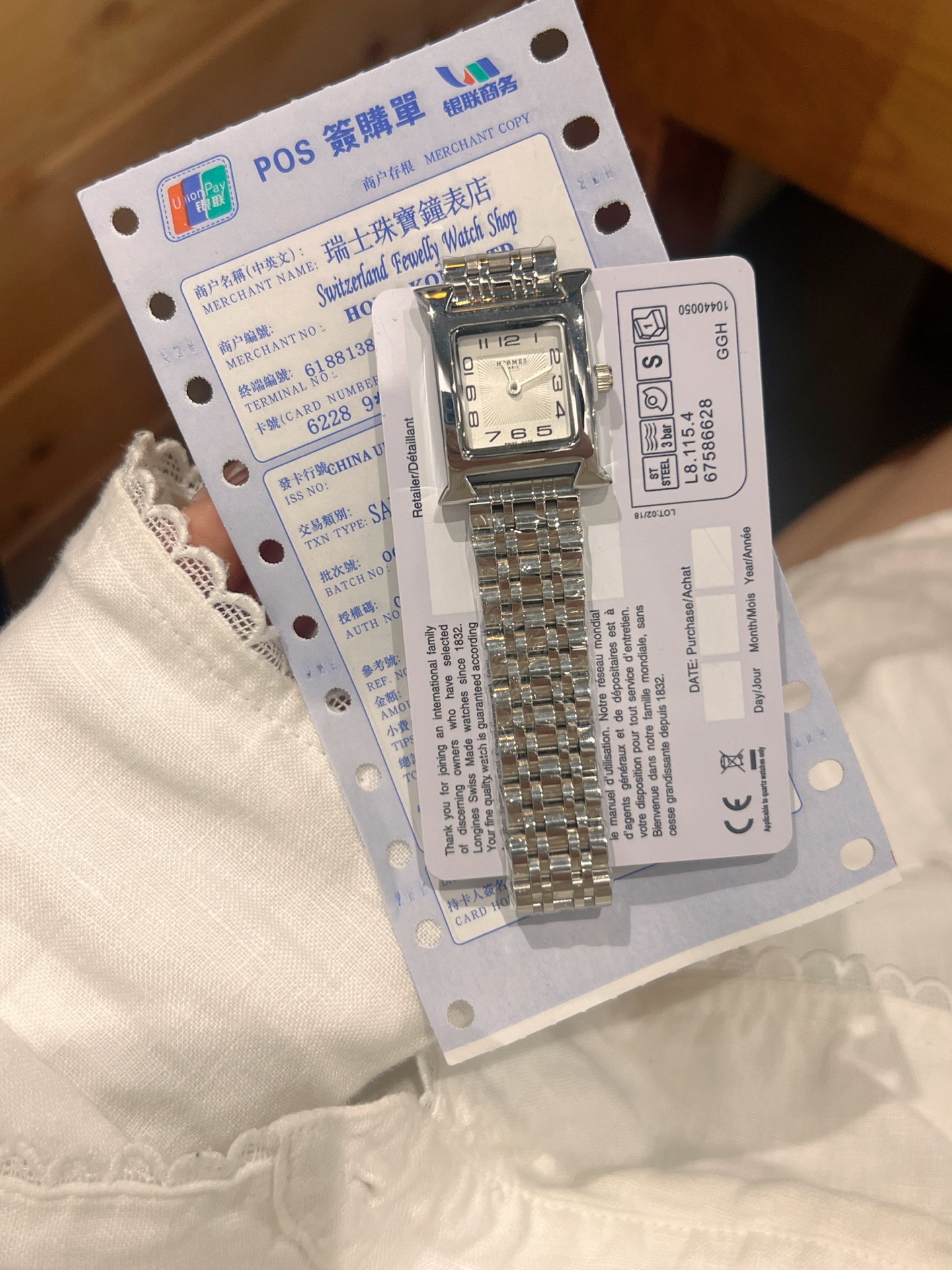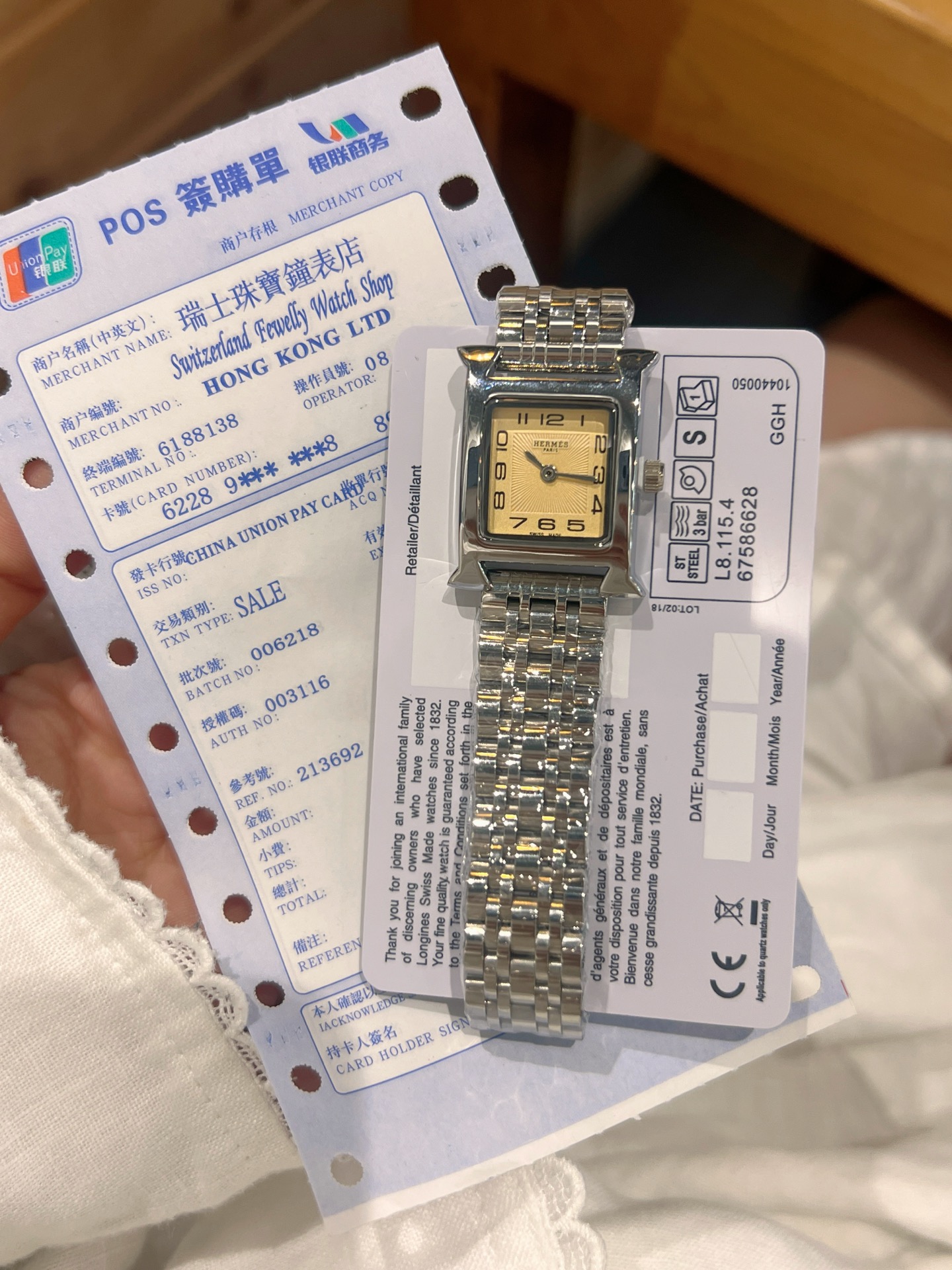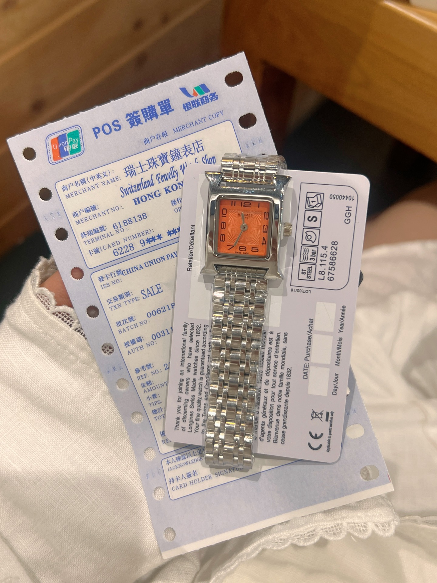 这款手表是AAAAA 1:1 质量 (非常棒). 使用了和原版一模一样的材料. 商标部分也保持了和爱马仕/Hermes一样. 图片拍摄是实物手表拍摄, 您所收到的实物保证和我们图片一模一样.