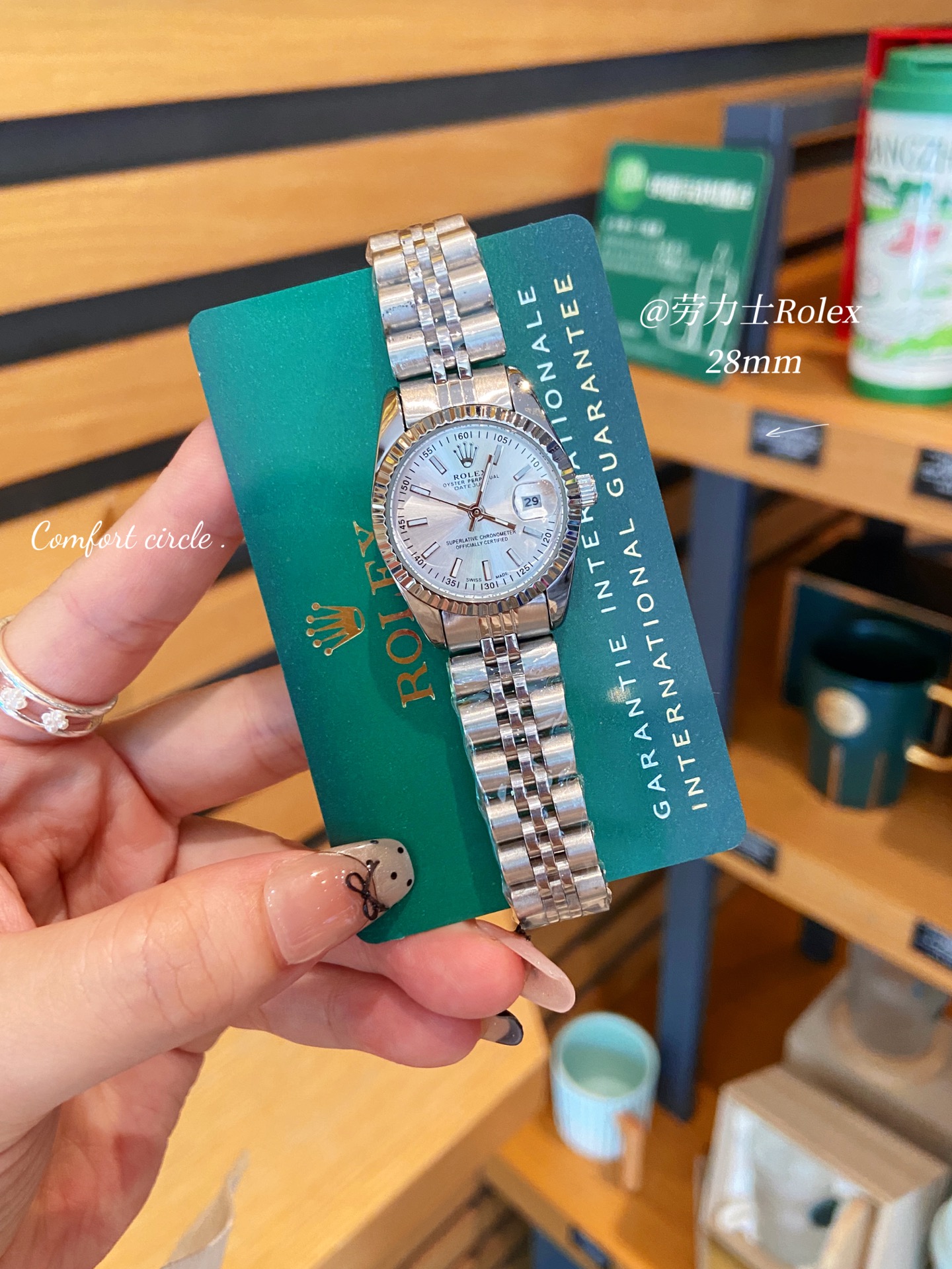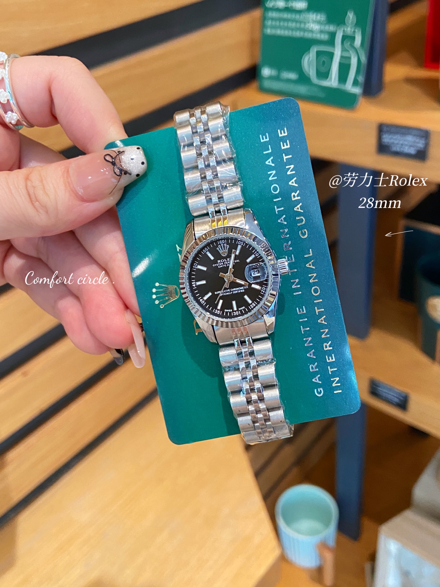这款手表是AAAAA 1:1 质量 (非常棒). 使用了和原版一模一样的材料. 商标部分也保持了和劳力士/Rolex一样. 图片拍摄是实物手表拍摄, 您所收到的实物保证和我们图片一模一样.