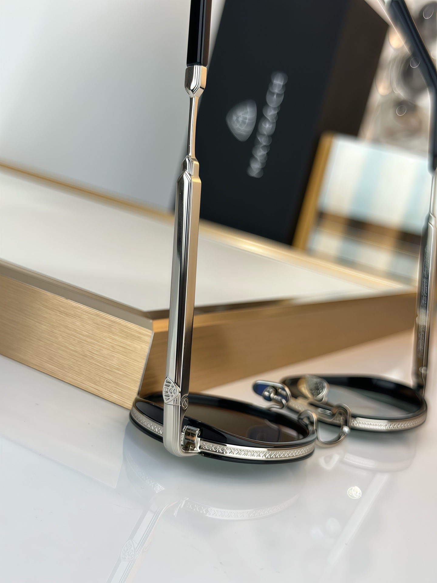 这款太阳眼镜是AAAAA 1:1 质量 (非常棒). 使用了和原版一模一样的材料. 商标部分也保持了和MAYBACH一样. 图片拍摄是实物太阳眼镜拍摄, 您所收到的实物保证和我们图片一模一样.