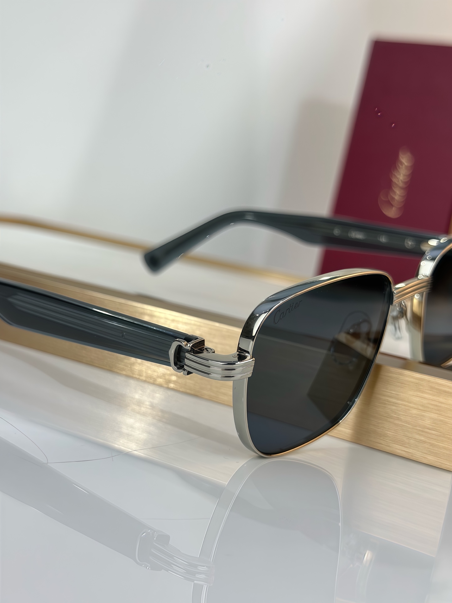 这款太阳眼镜是AAAAA 1:1 质量 (非常棒). 使用了和原版一模一样的材料. 商标部分也保持了和卡地亚/Cartier一样. 图片拍摄是实物太阳眼镜拍摄, 您所收到的实物保证和我们图片一模一样.