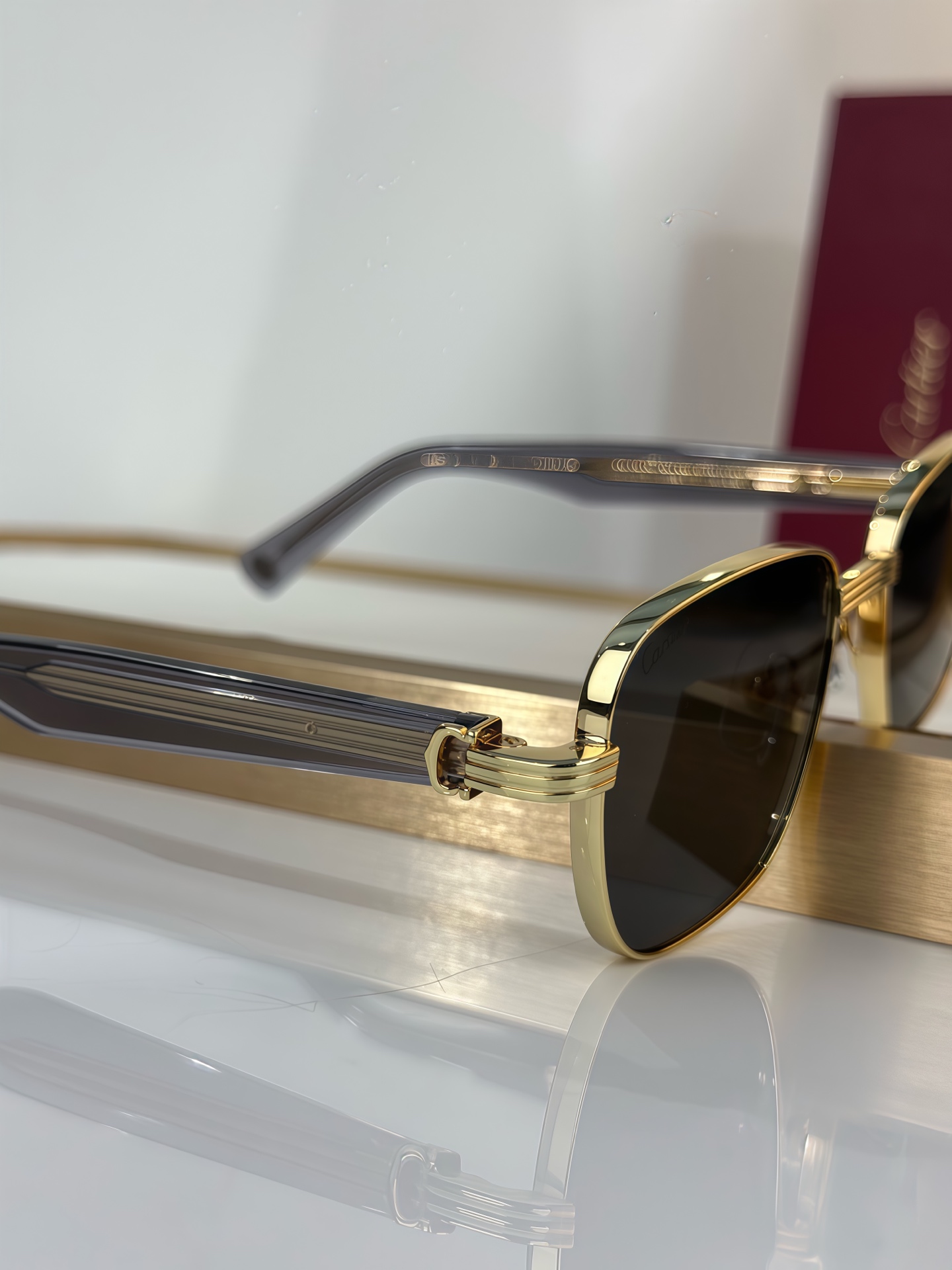 这款太阳眼镜是AAAAA 1:1 质量 (非常棒). 使用了和原版一模一样的材料. 商标部分也保持了和卡地亚/Cartier一样. 图片拍摄是实物太阳眼镜拍摄, 您所收到的实物保证和我们图片一模一样.