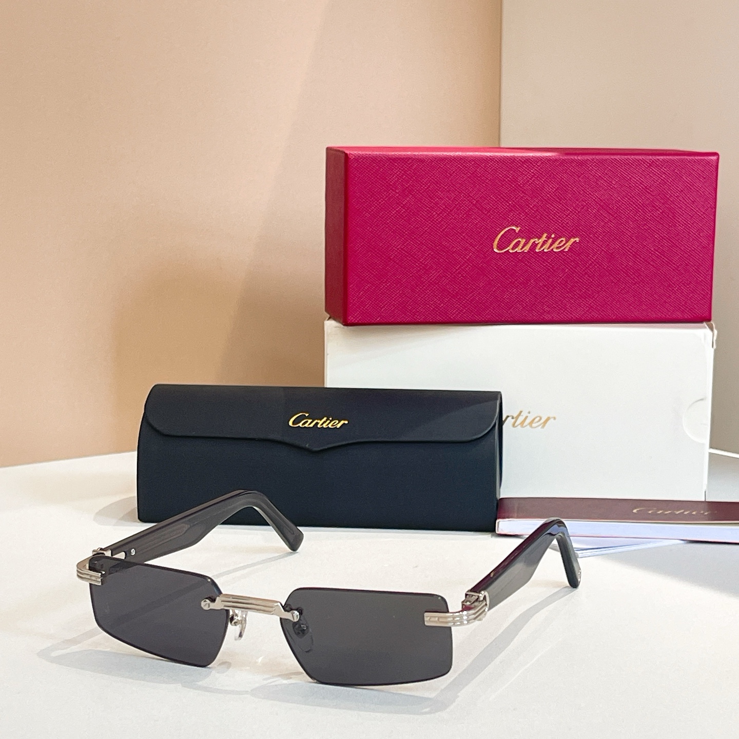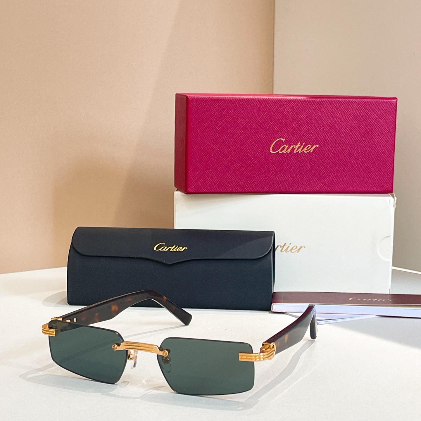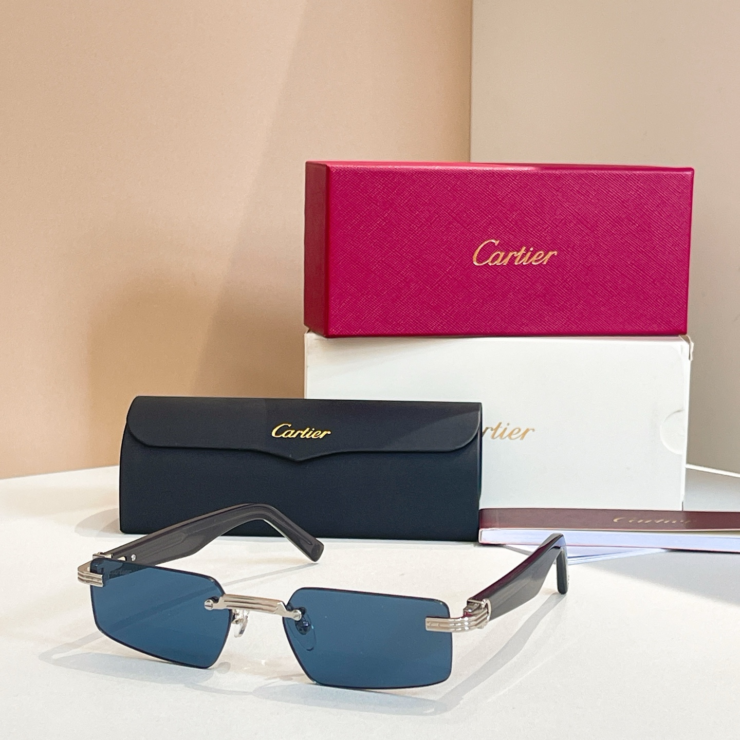 这款太阳眼镜是AAAAA 1:1 质量 (非常棒). 使用了和原版一模一样的材料. 商标部分也保持了和卡地亚/Cartier一样. 图片拍摄是实物太阳眼镜拍摄, 您所收到的实物保证和我们图片一模一样.