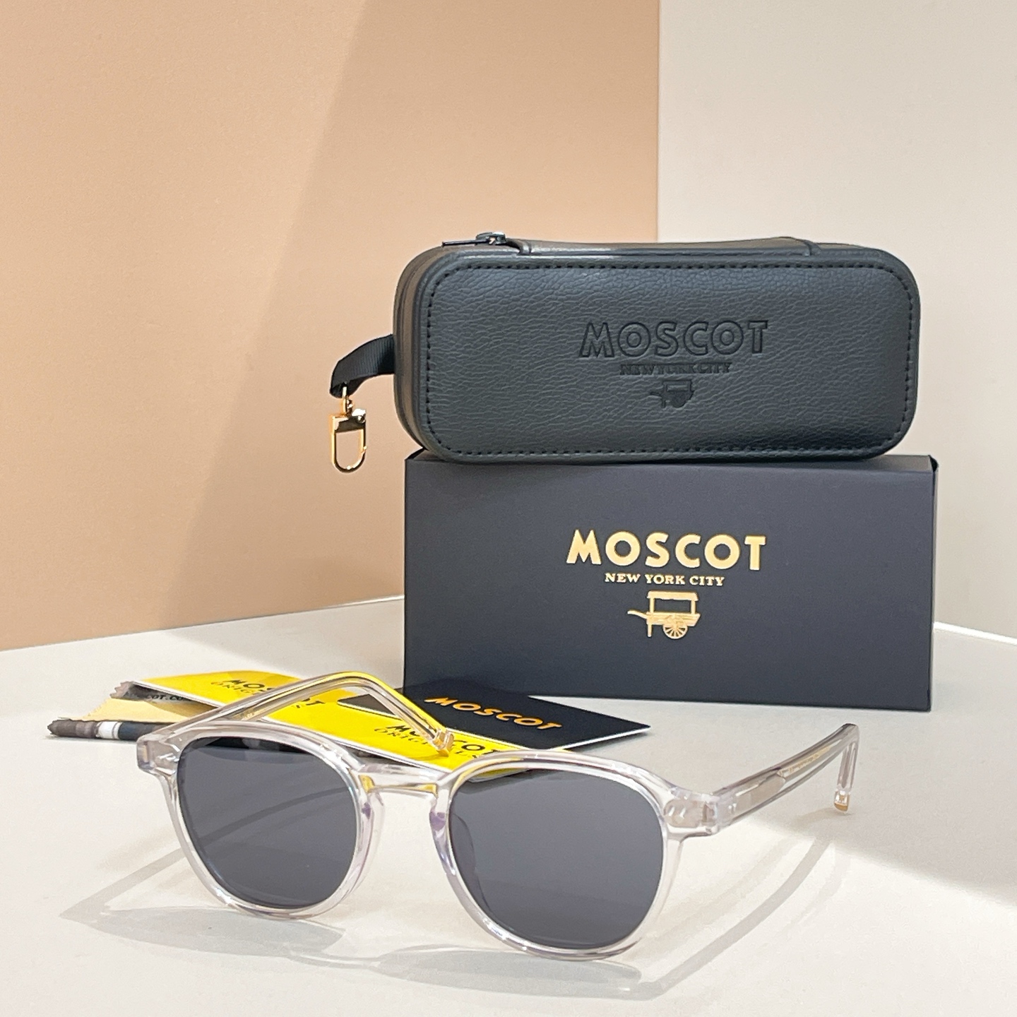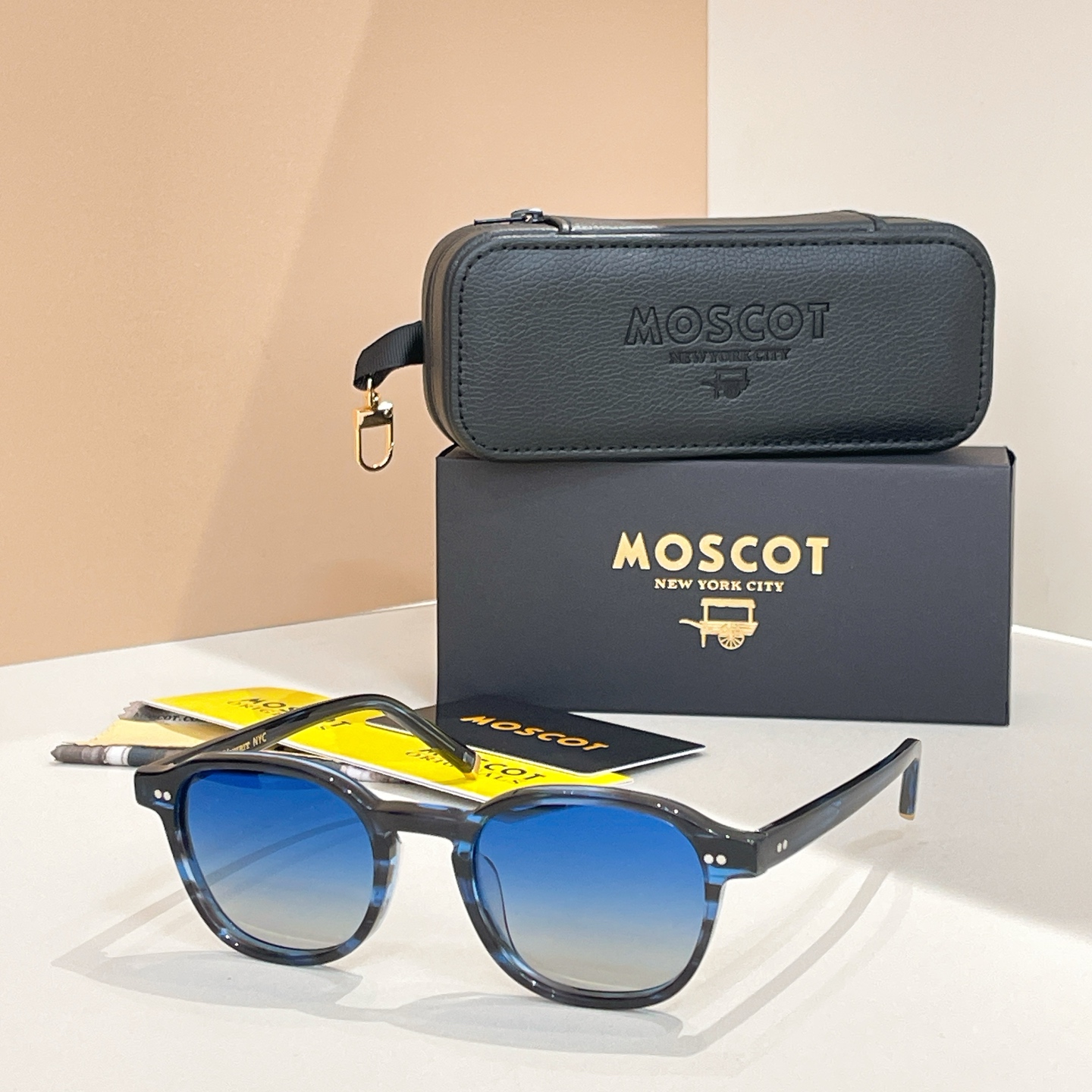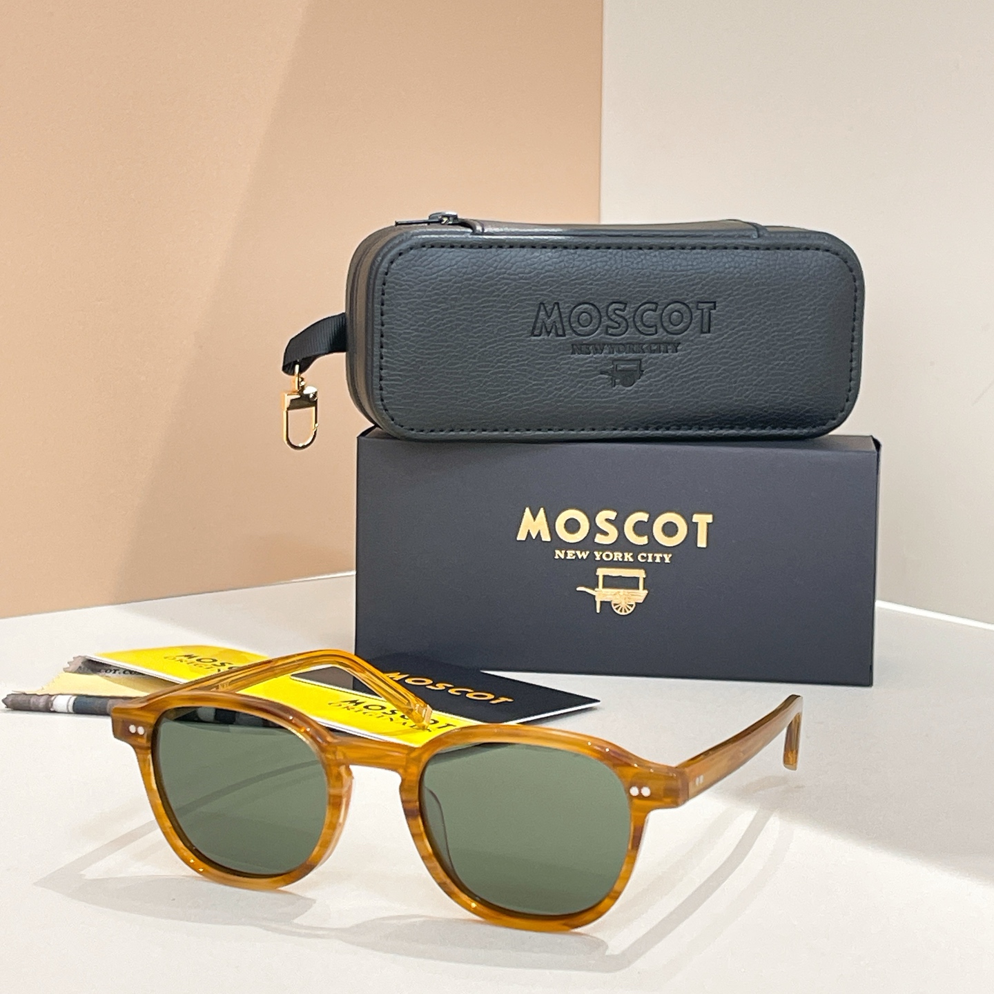 这款太阳眼镜是AAAAA 1:1 质量 (非常棒). 使用了和原版一模一样的材料. 商标部分也保持了和MOSCOT一样. 图片拍摄是实物太阳眼镜拍摄, 您所收到的实物保证和我们图片一模一样.