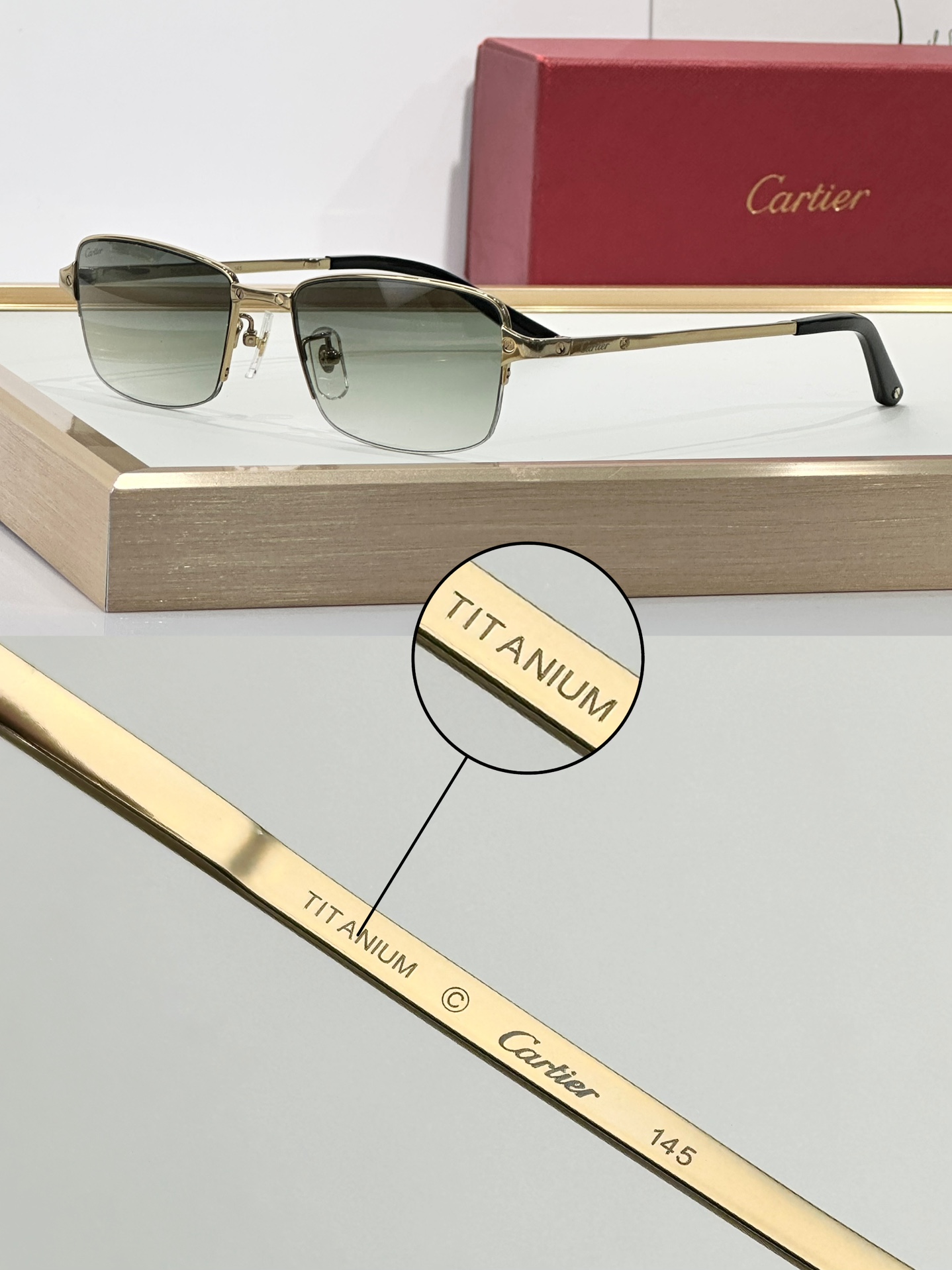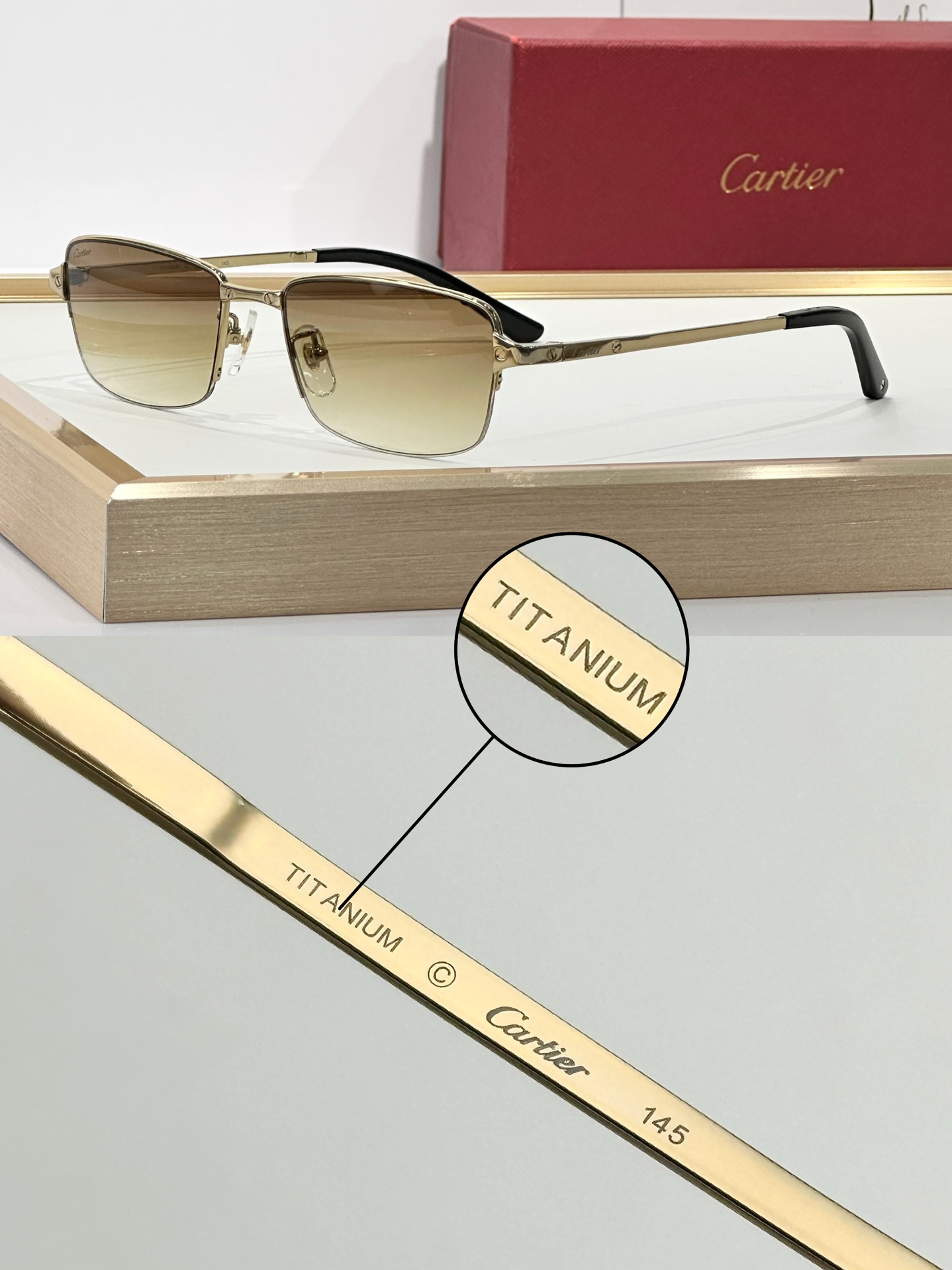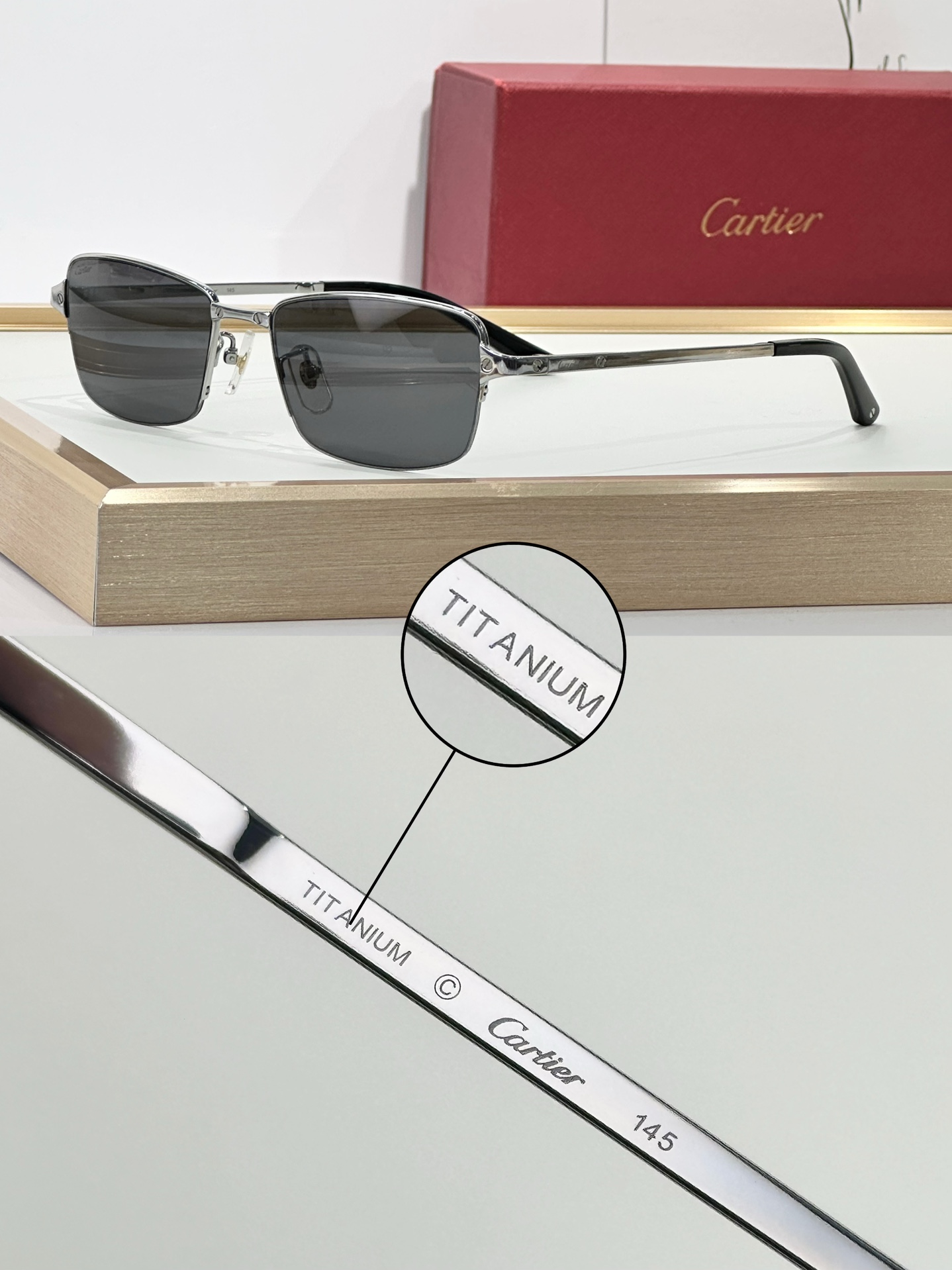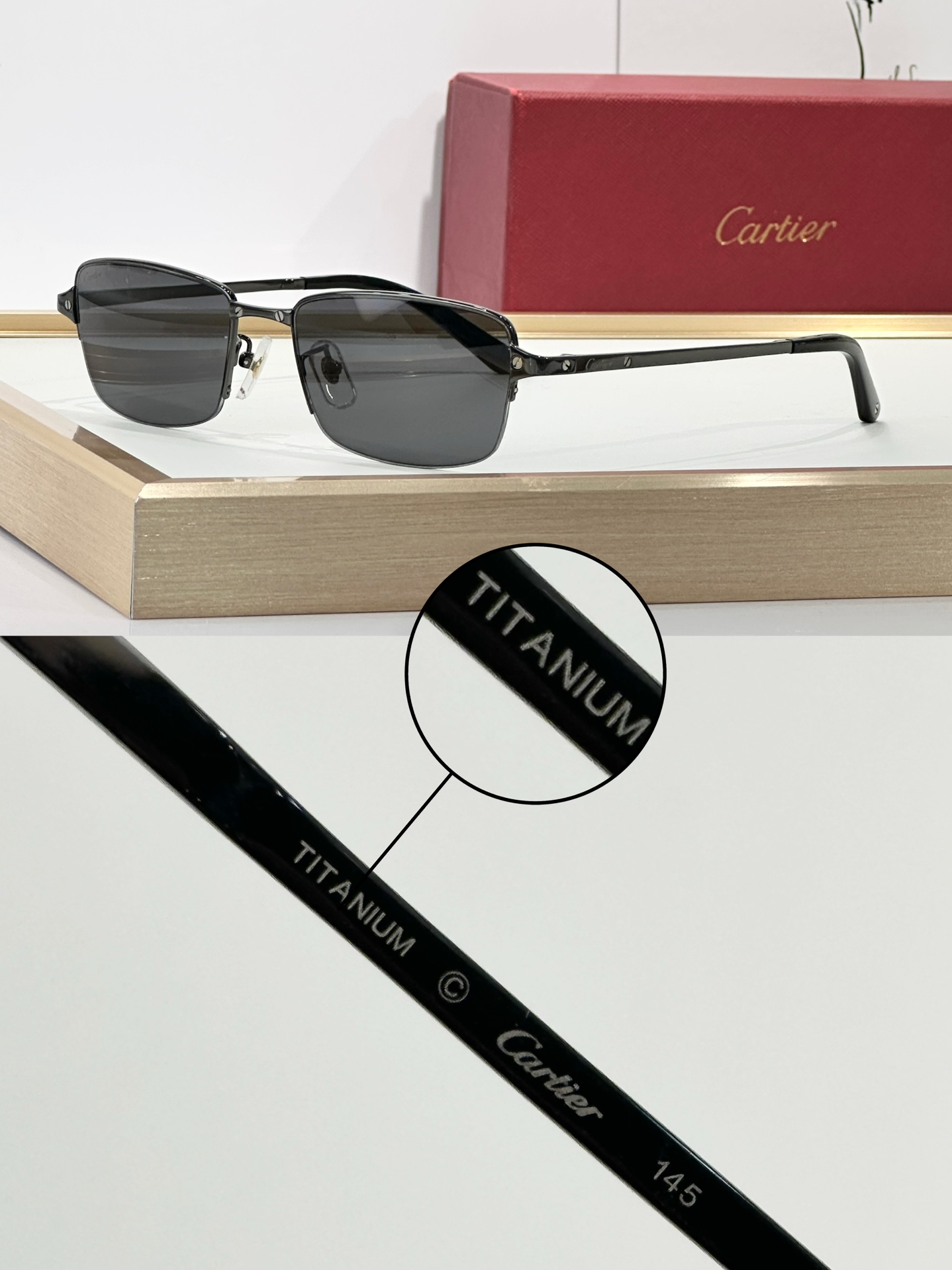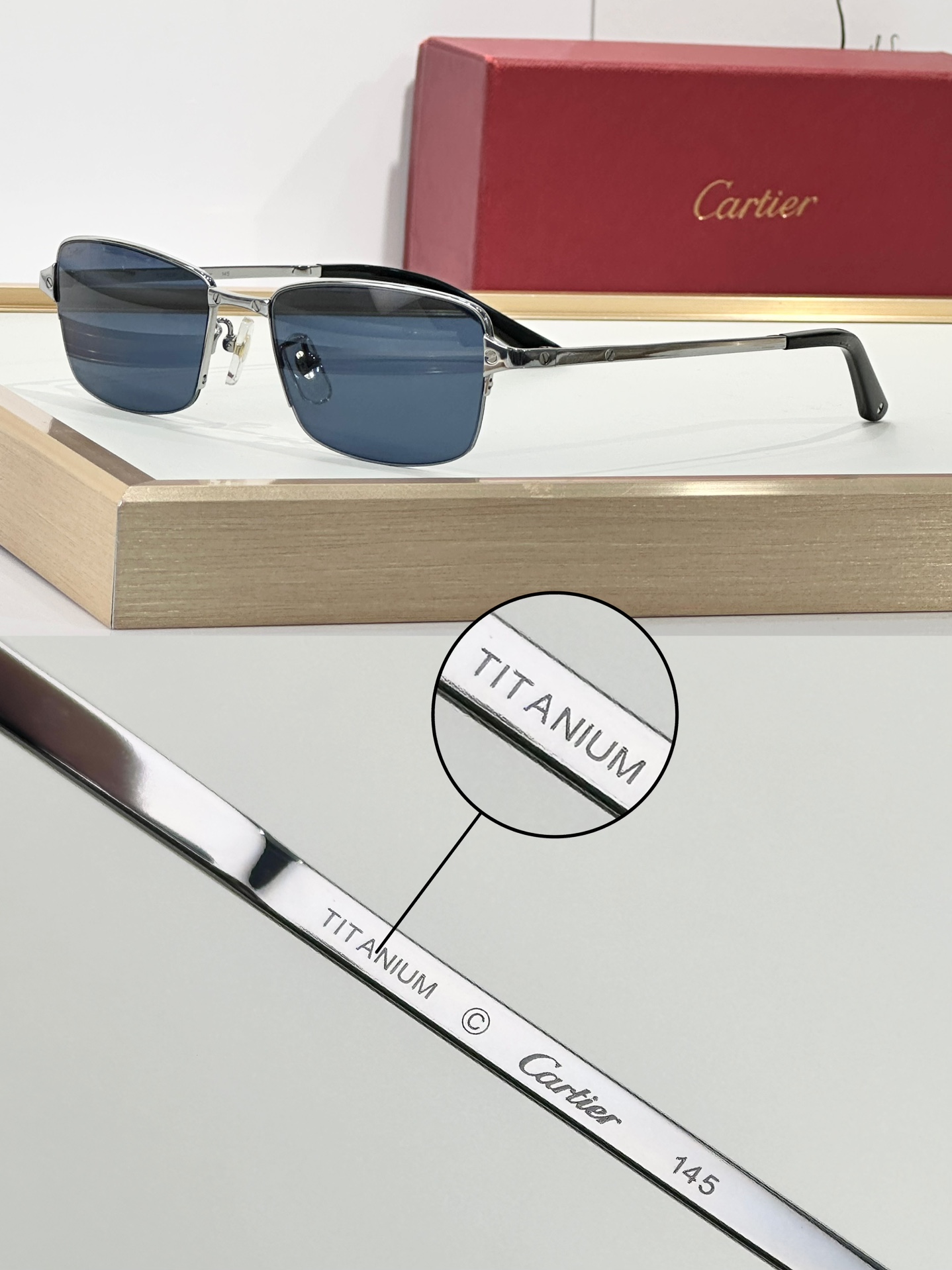这款太阳眼镜是AAAAA 1:1 质量 (非常棒). 使用了和原版一模一样的材料. 商标部分也保持了和卡地亚/Cartier一样. 图片拍摄是实物太阳眼镜拍摄, 您所收到的实物保证和我们图片一模一样.