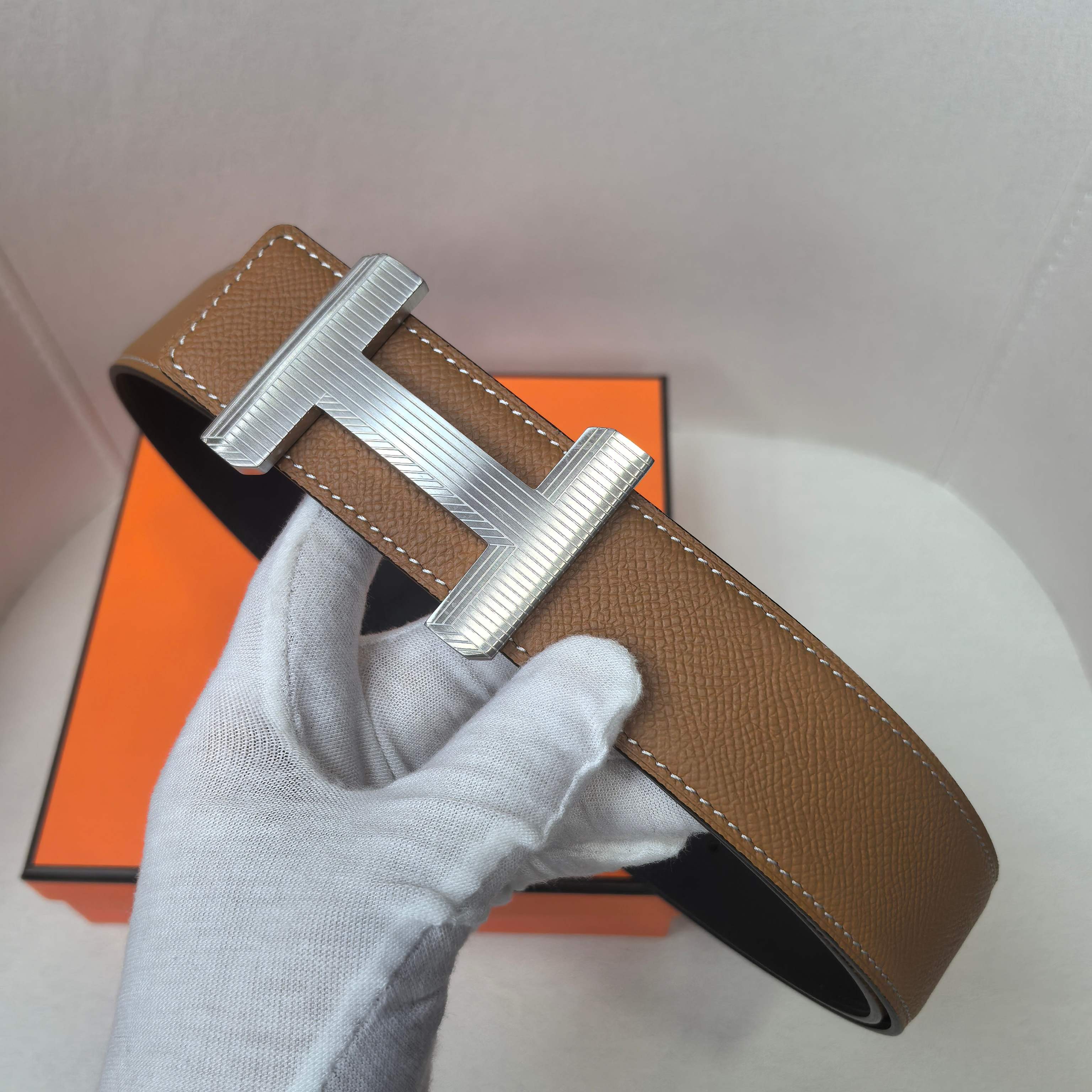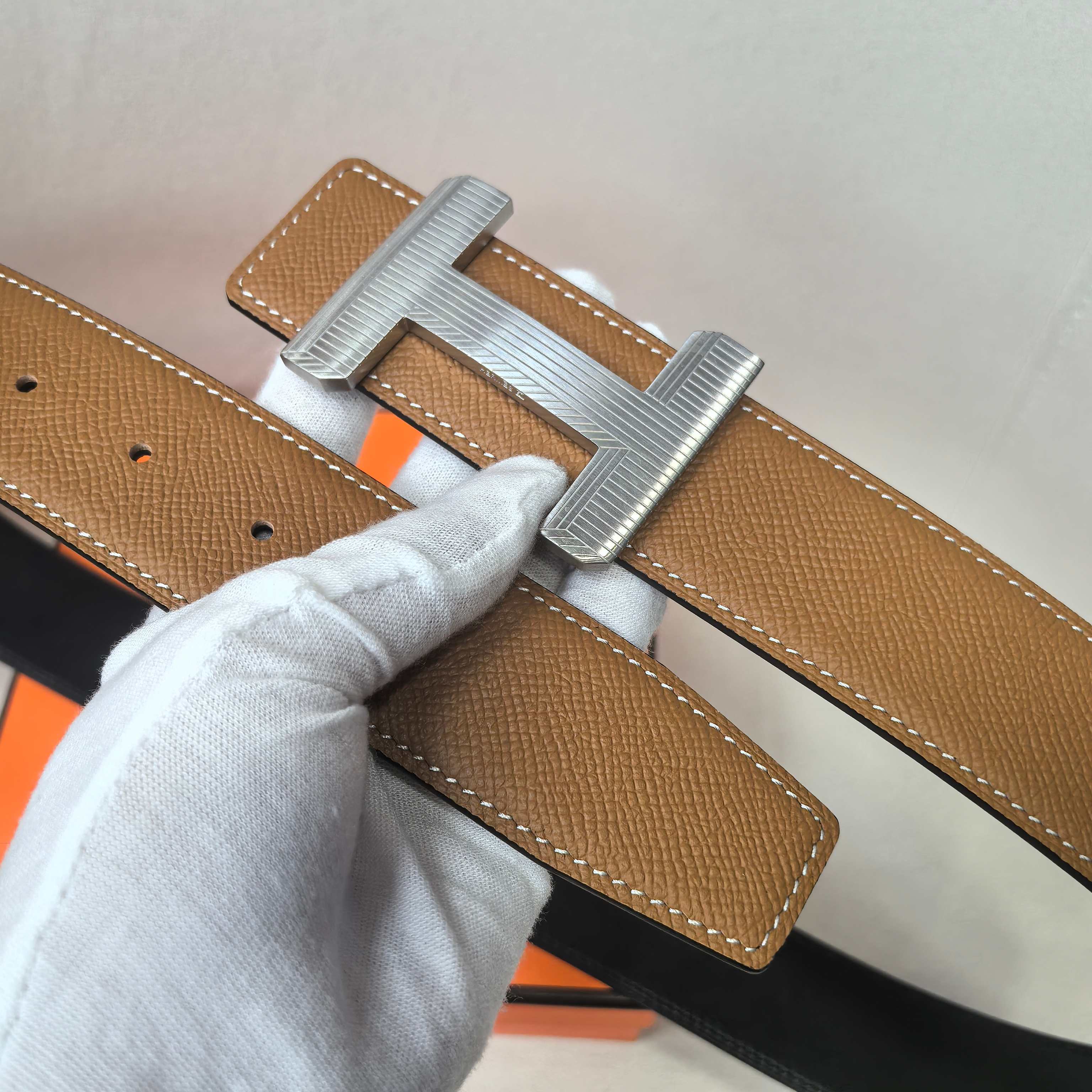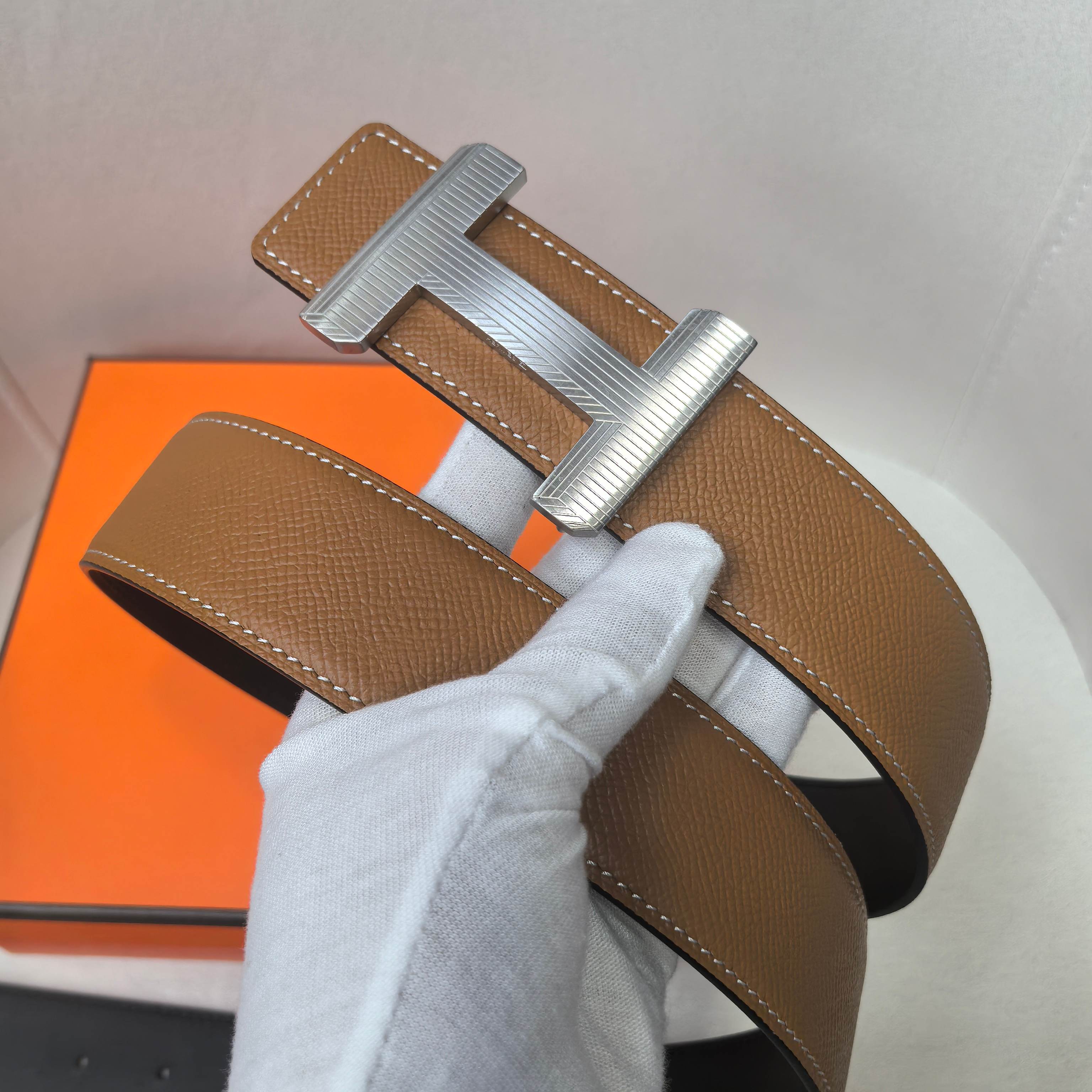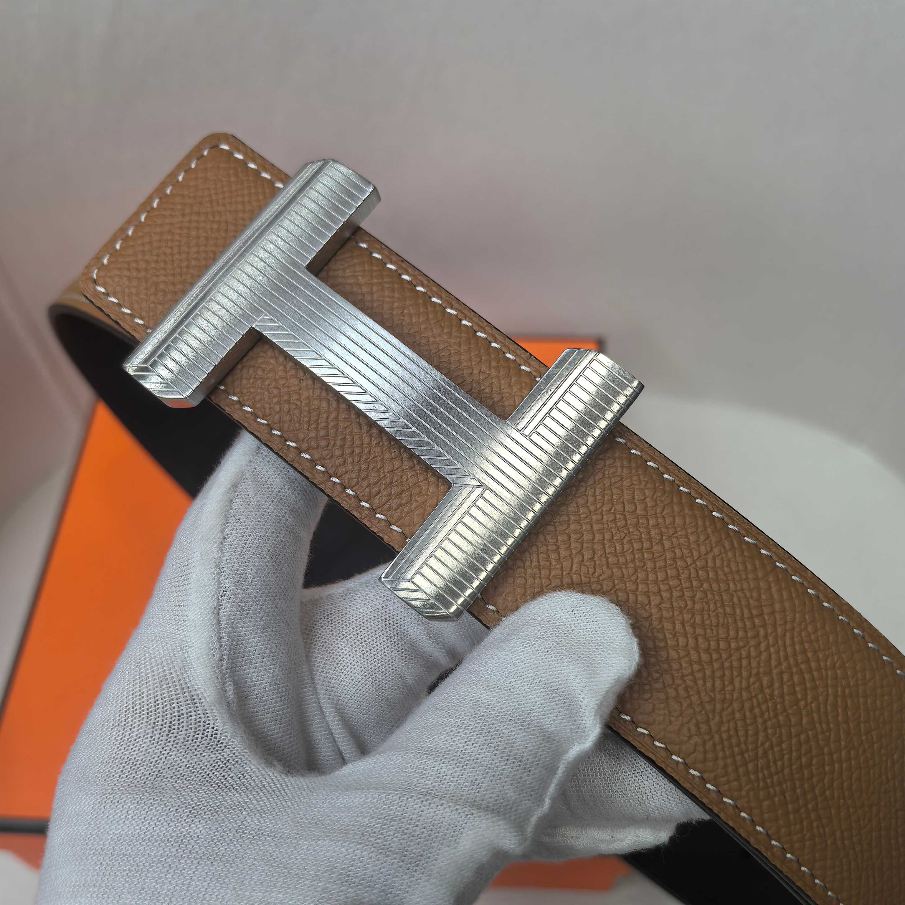 这款皮带是AAAAA 1:1 质量 (非常棒). 使用了和原版一模一样的材料. 商标部分也保持了和爱马仕/Hermes一样. 图片拍摄是实物皮带拍摄, 您所收到的实物保证和我们图片一模一样.