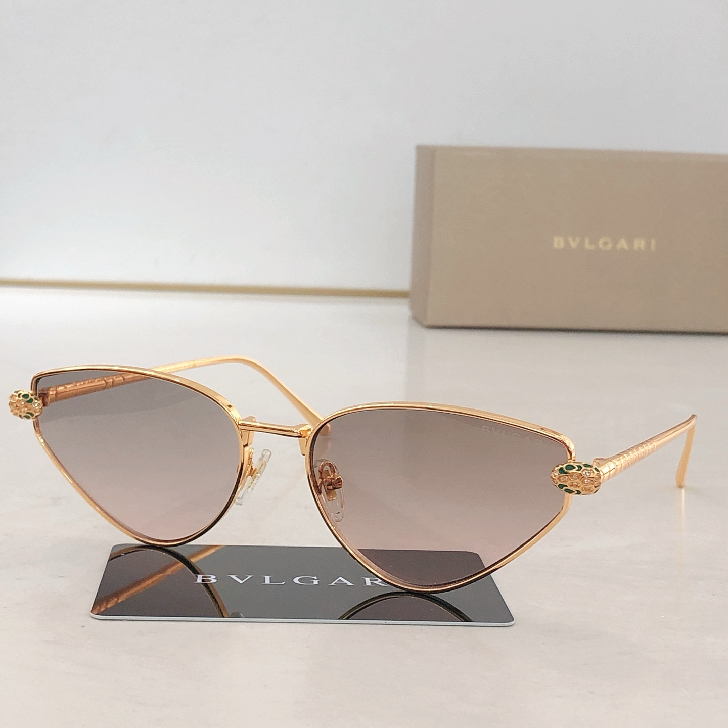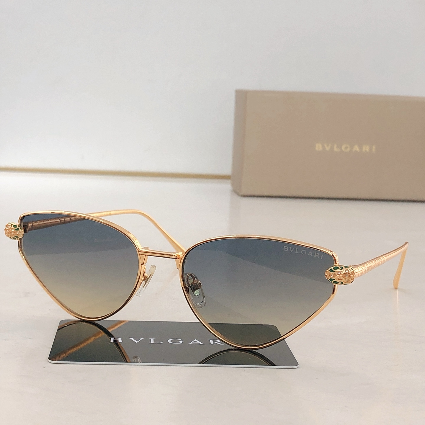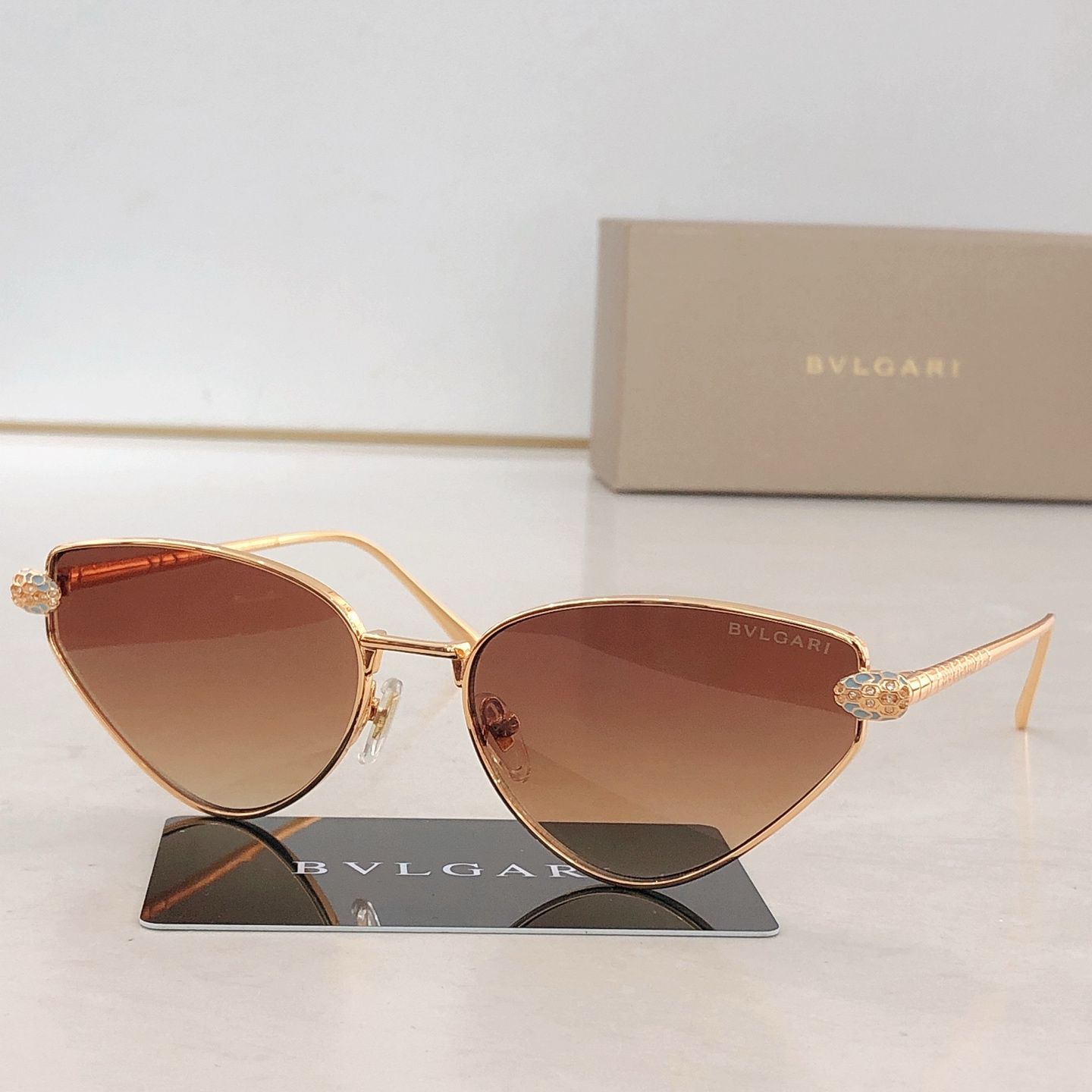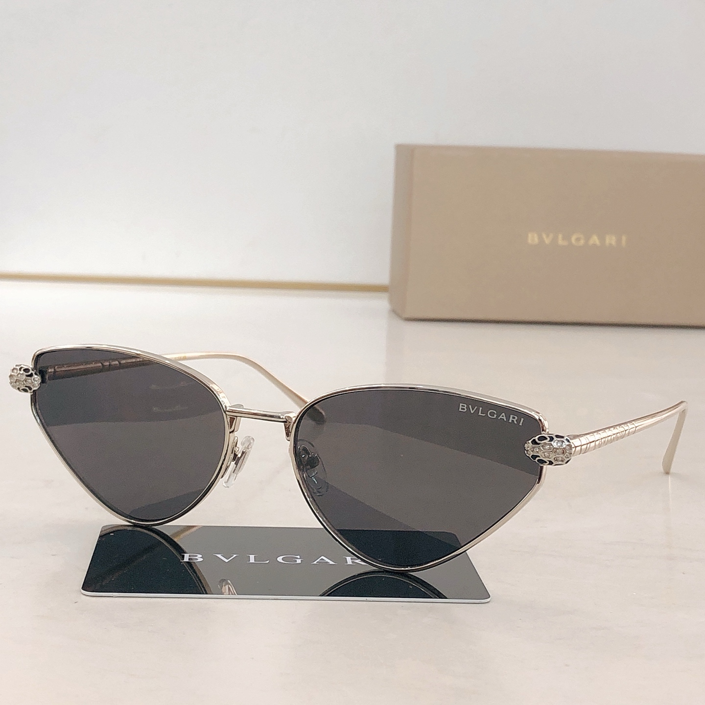 这款太阳眼镜是AAAAA 1:1 质量 (非常棒). 使用了和原版一模一样的材料. 商标部分也保持了和宝格丽/Bulgari一样. 图片拍摄是实物太阳眼镜拍摄, 您所收到的实物保证和我们图片一模一样.