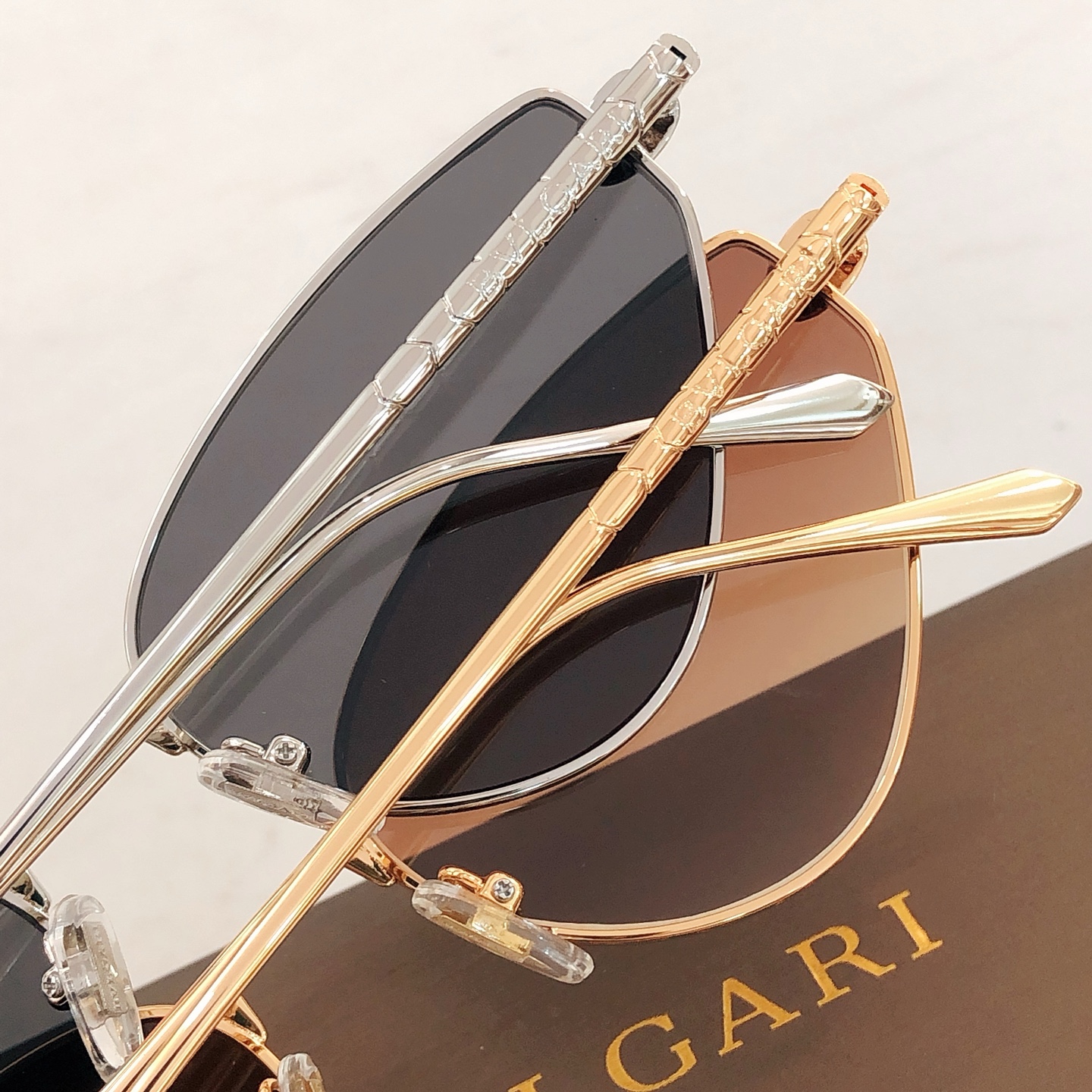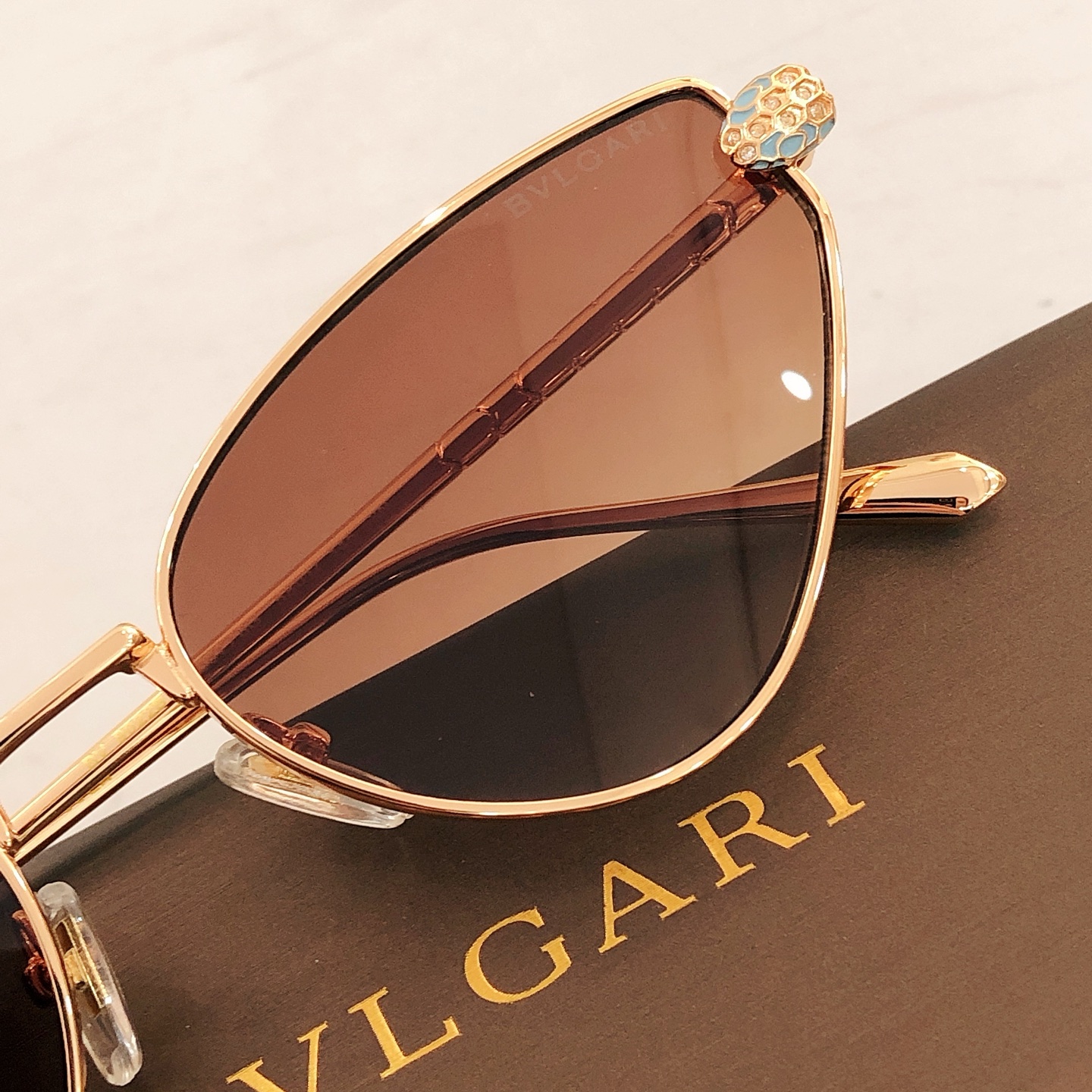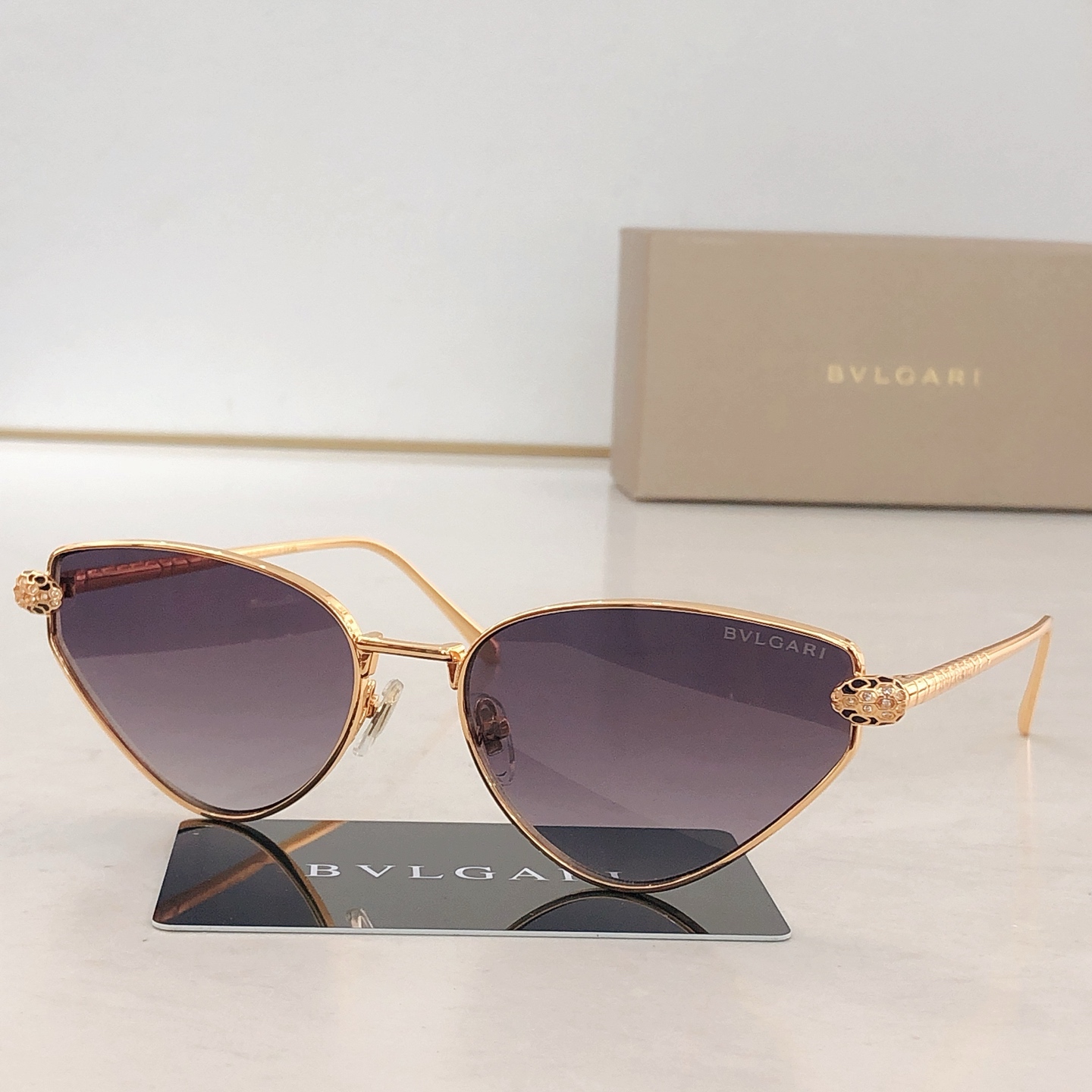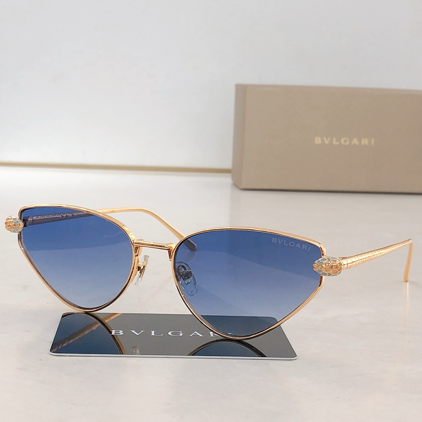 这款太阳眼镜是AAAAA 1:1 质量 (非常棒). 使用了和原版一模一样的材料. 商标部分也保持了和宝格丽/Bulgari一样. 图片拍摄是实物太阳眼镜拍摄, 您所收到的实物保证和我们图片一模一样.