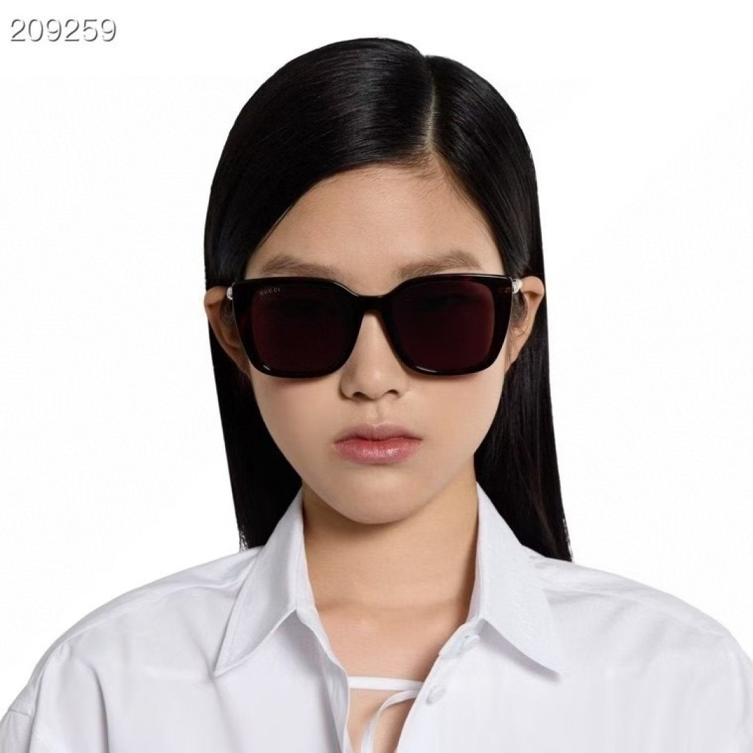 这款太阳眼镜是AAAAA 1:1 质量 (非常棒). 使用了和原版一模一样的材料. 商标部分也保持了和古奇/Gucci一样. 图片拍摄是实物太阳眼镜拍摄, 您所收到的实物保证和我们图片一模一样.