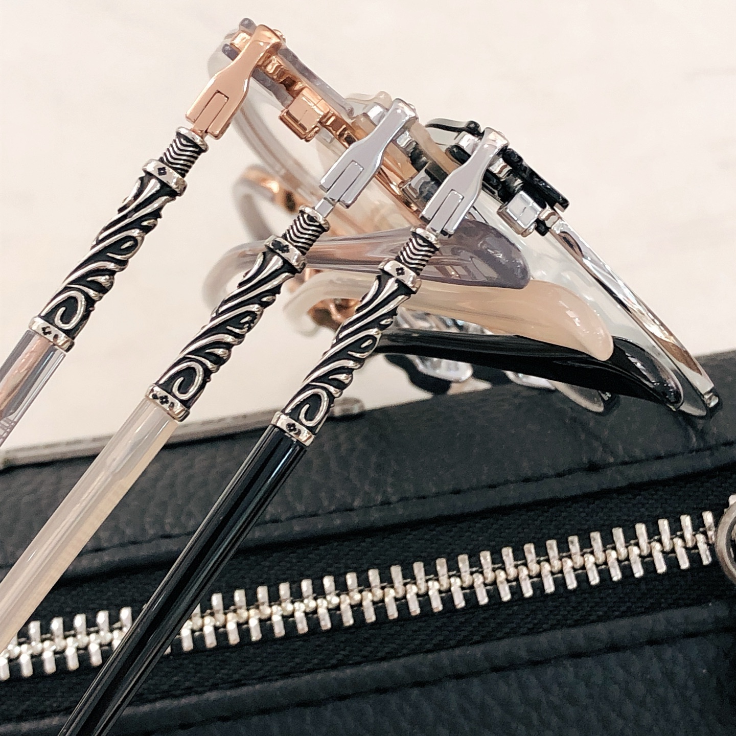 这款太阳眼镜是AAAAA 1:1 质量 (非常棒). 使用了和原版一模一样的材料. 商标部分也保持了和克罗心/Chrome Hearts一样. 图片拍摄是实物太阳眼镜拍摄, 您所收到的实物保证和我们图片一模一样.