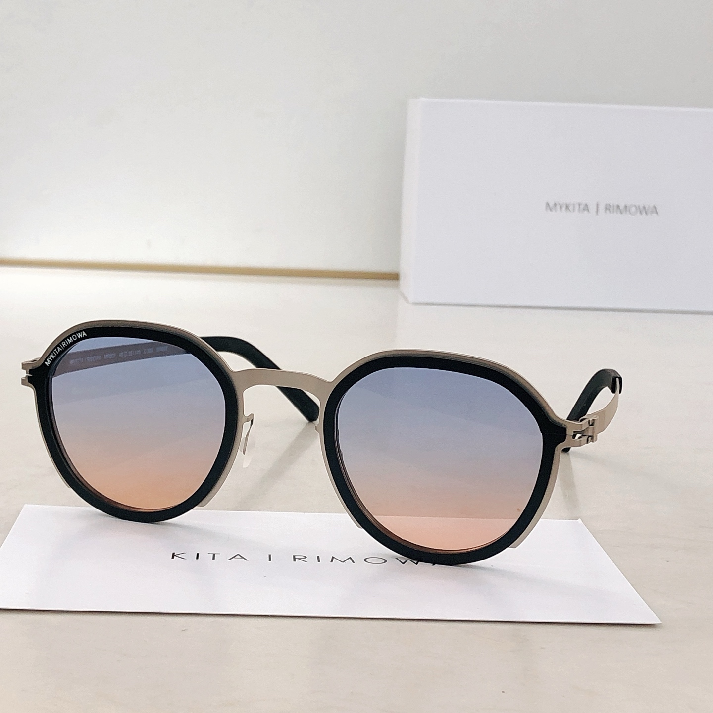 这款太阳眼镜是AAAAA 1:1 质量 (非常棒). 使用了和原版一模一样的材料. 商标部分也保持了和MYKITA一样. 图片拍摄是实物太阳眼镜拍摄, 您所收到的实物保证和我们图片一模一样.
