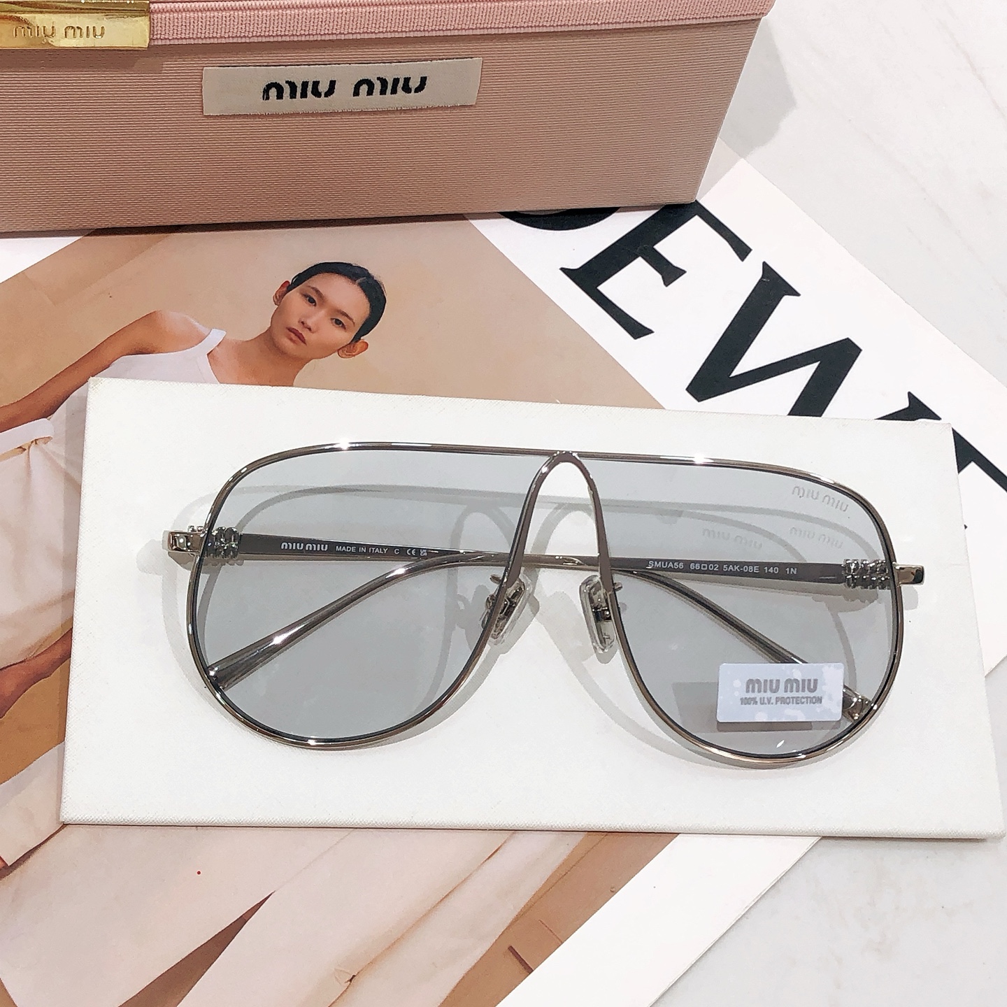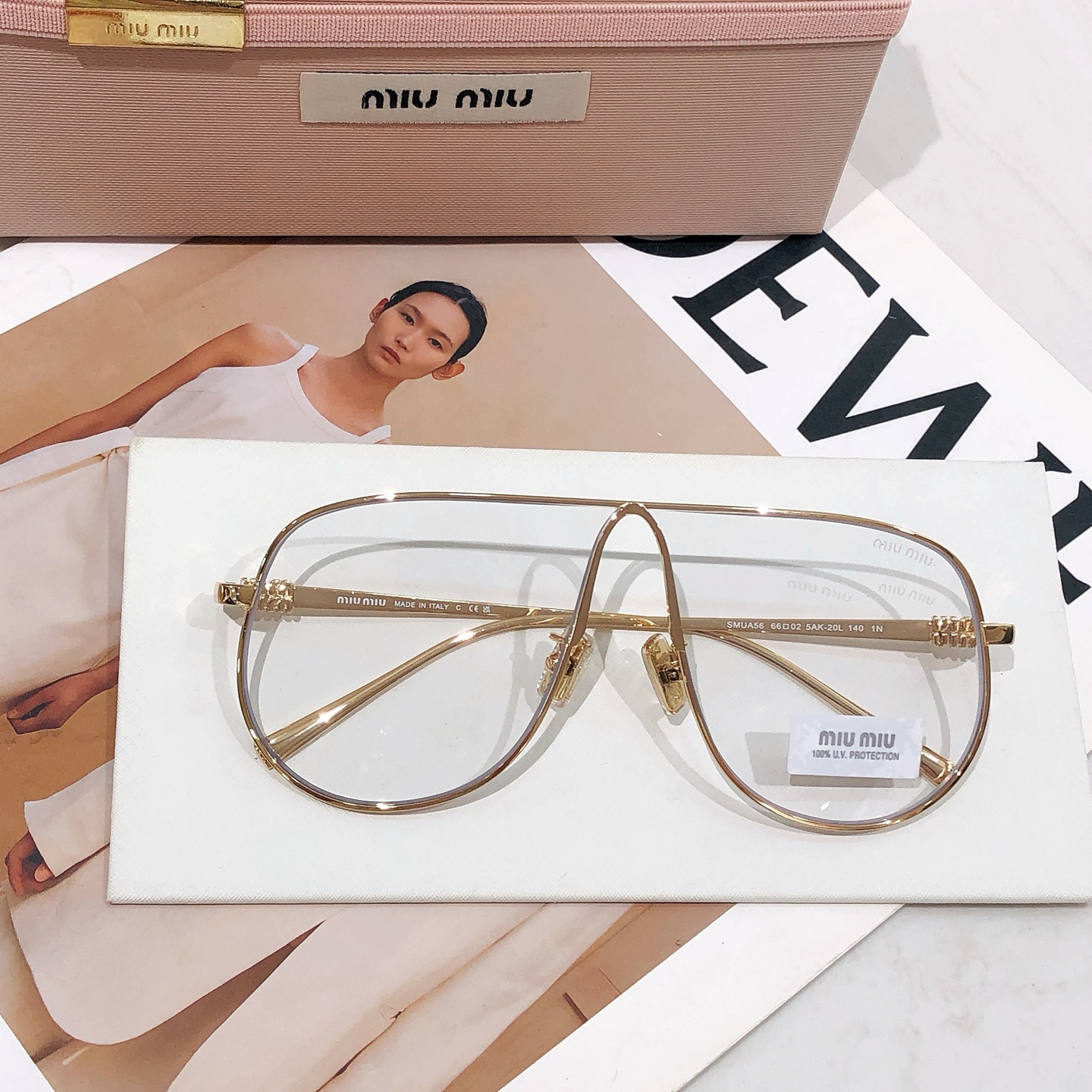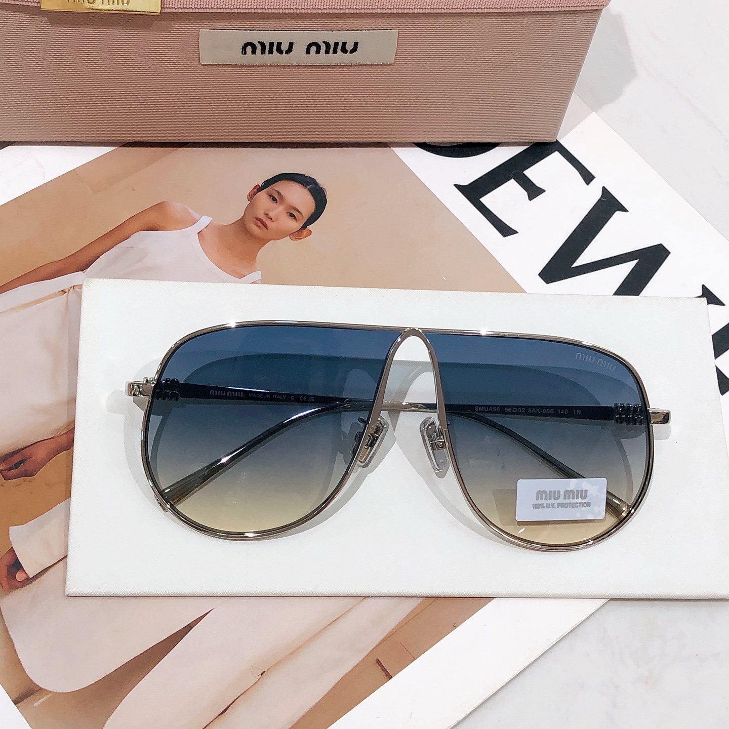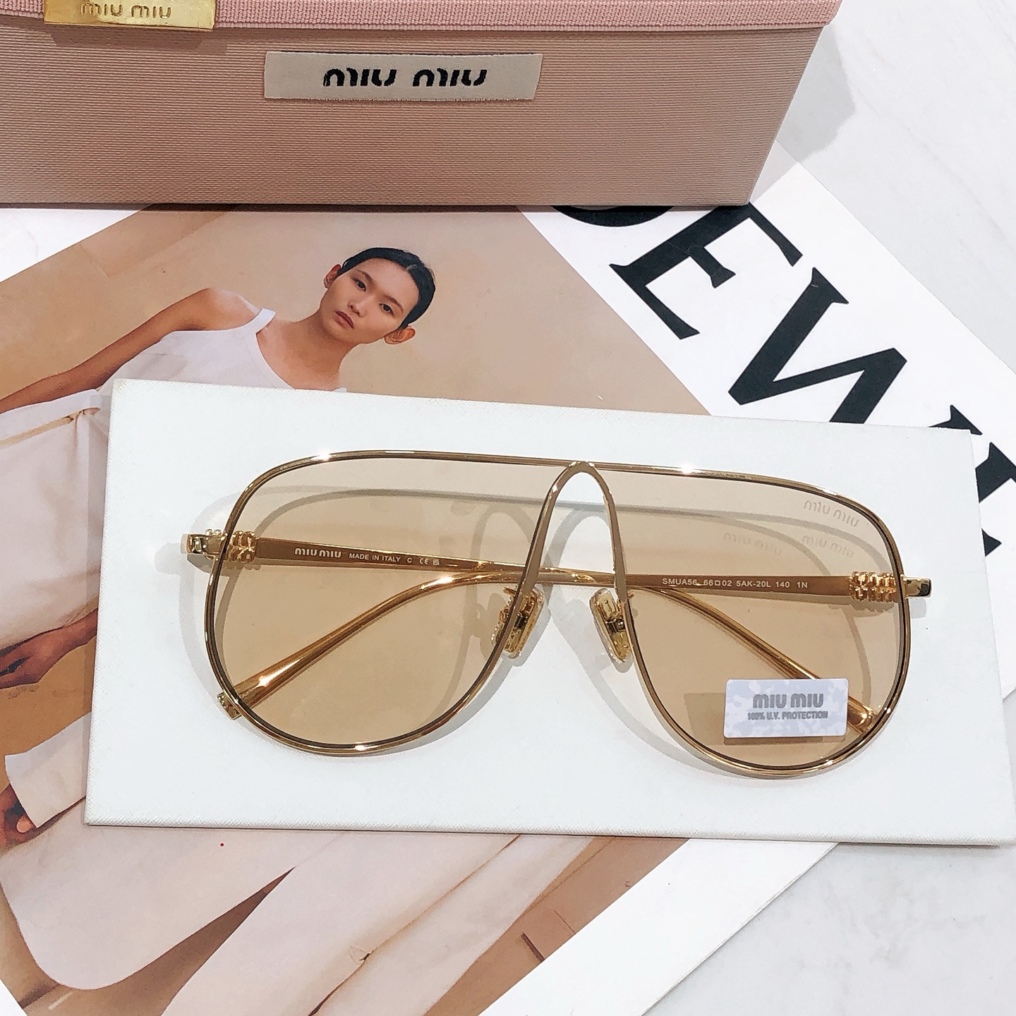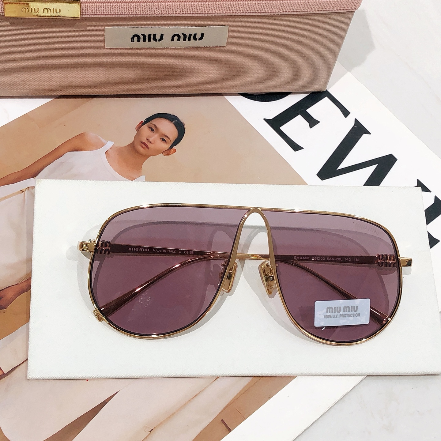 这款太阳眼镜是AAAAA 1:1 质量 (非常棒). 使用了和原版一模一样的材料. 商标部分也保持了和缪缪/Miu Miu一样. 图片拍摄是实物太阳眼镜拍摄, 您所收到的实物保证和我们图片一模一样.
