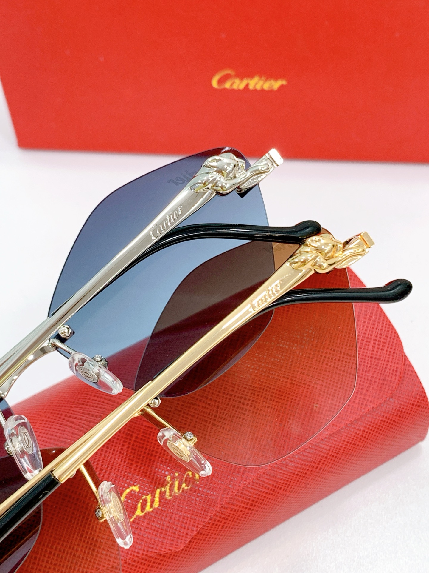这款太阳眼镜是AAAAA 1:1 质量 (非常棒). 使用了和原版一模一样的材料. 商标部分也保持了和卡地亚/Cartier一样. 图片拍摄是实物太阳眼镜拍摄, 您所收到的实物保证和我们图片一模一样.