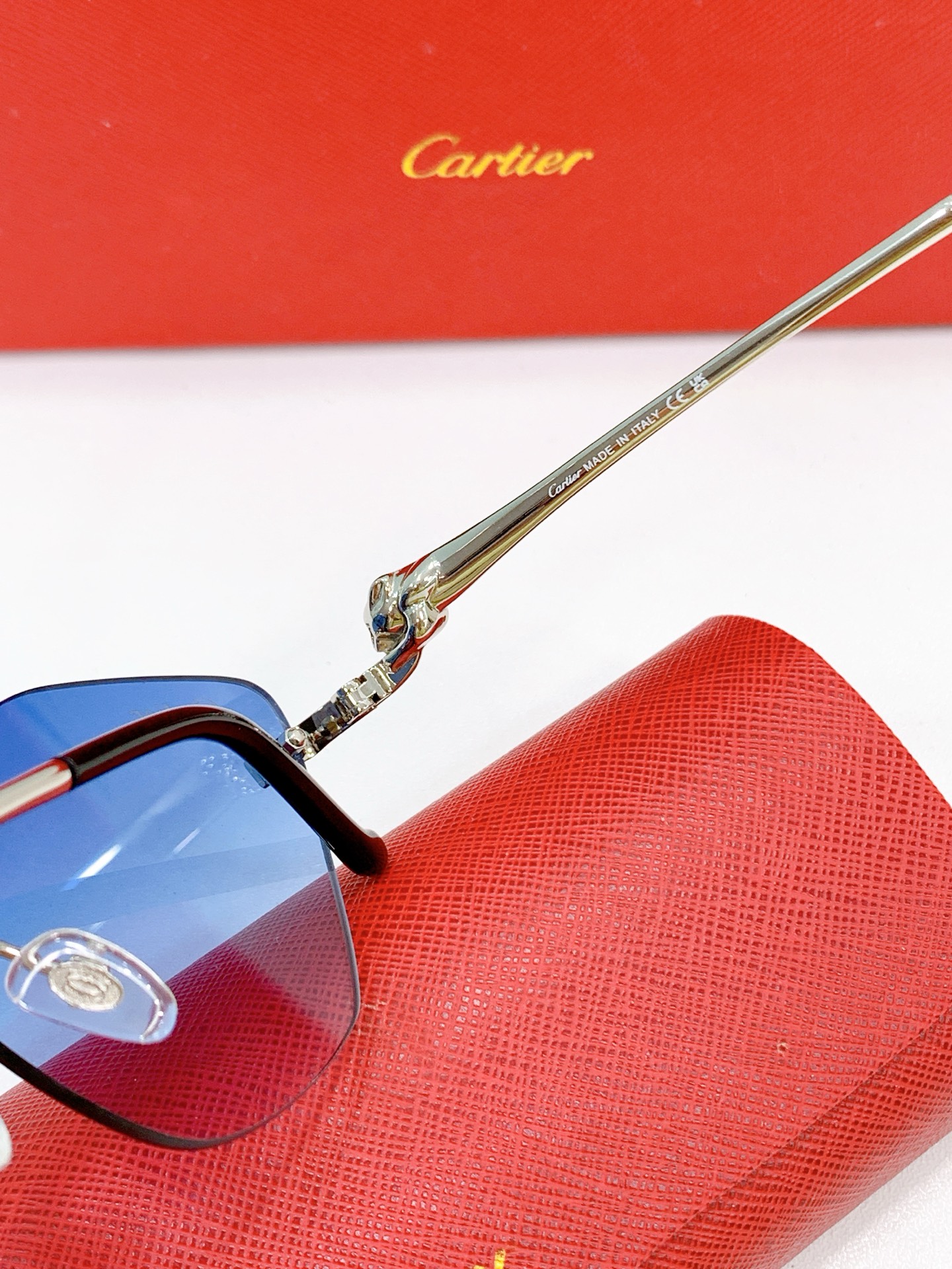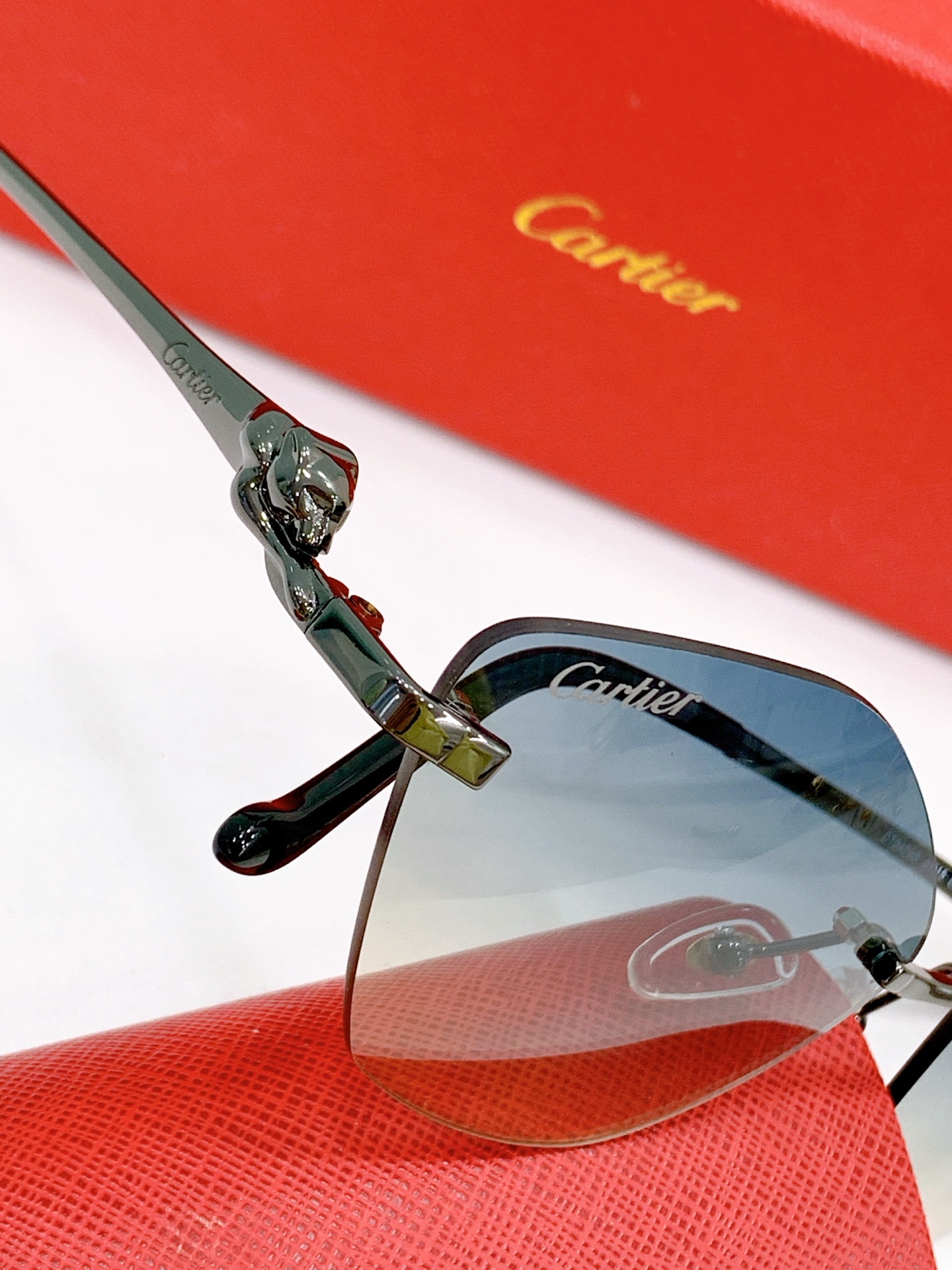 这款太阳眼镜是AAAAA 1:1 质量 (非常棒). 使用了和原版一模一样的材料. 商标部分也保持了和卡地亚/Cartier一样. 图片拍摄是实物太阳眼镜拍摄, 您所收到的实物保证和我们图片一模一样.
