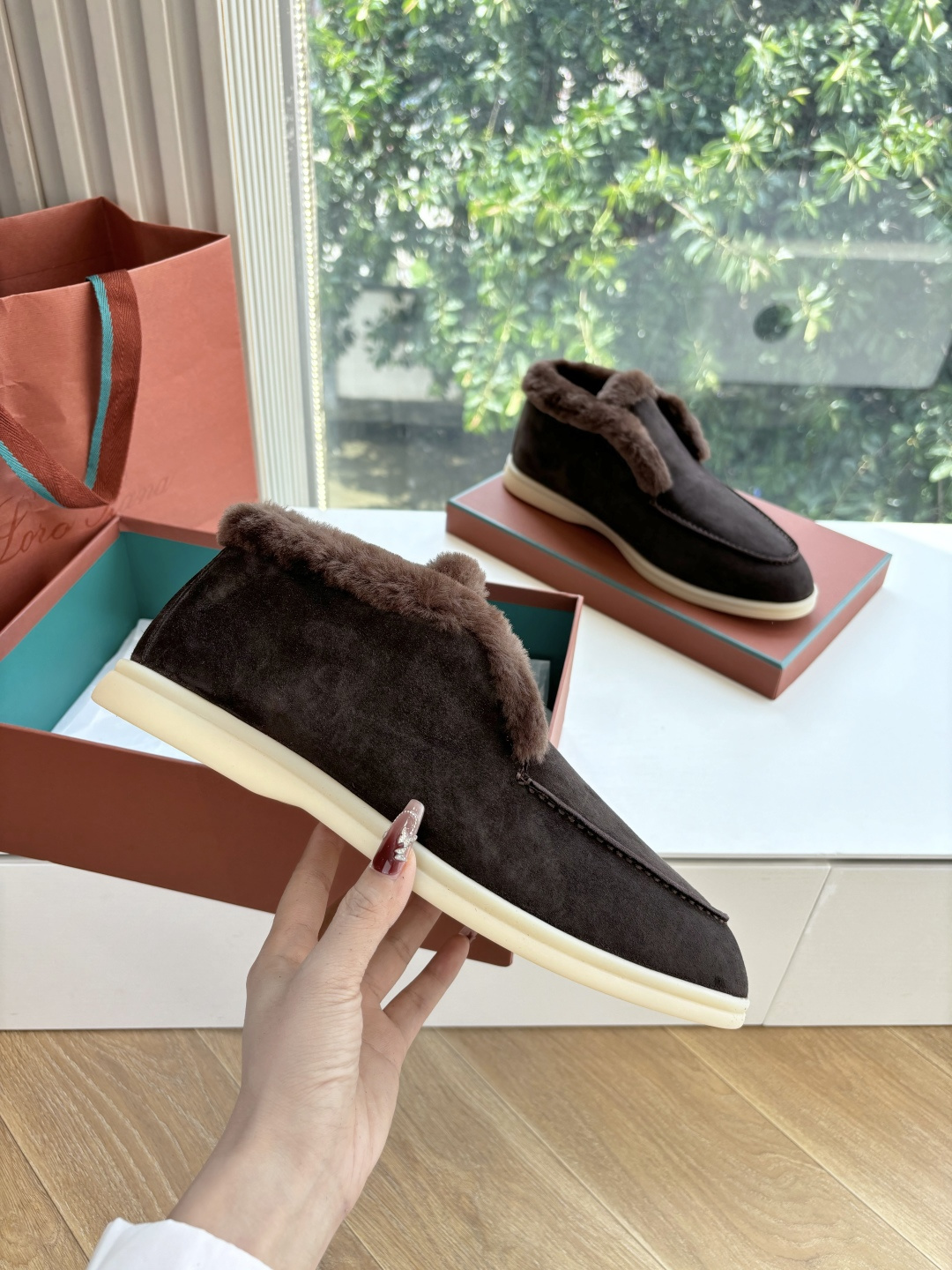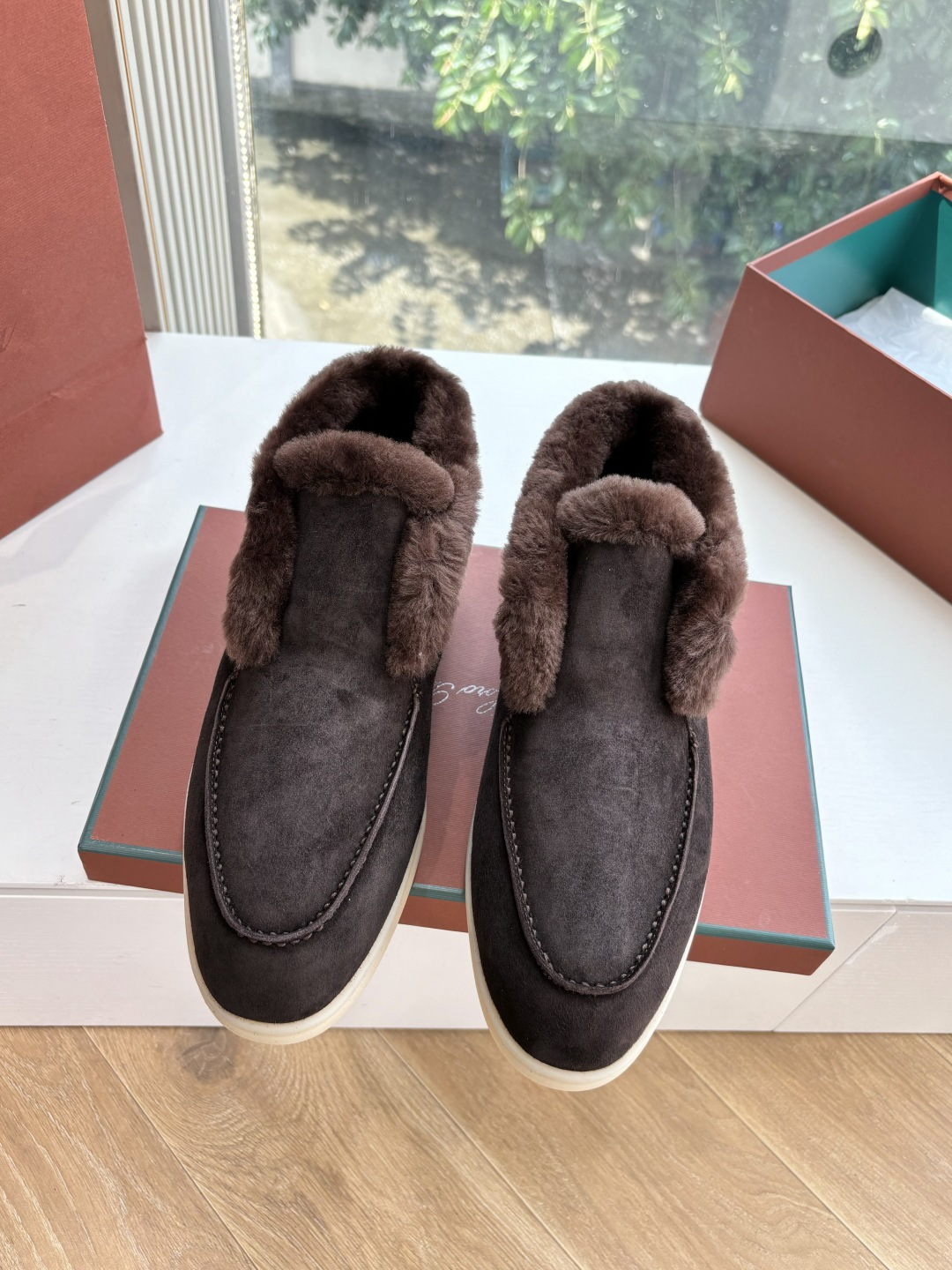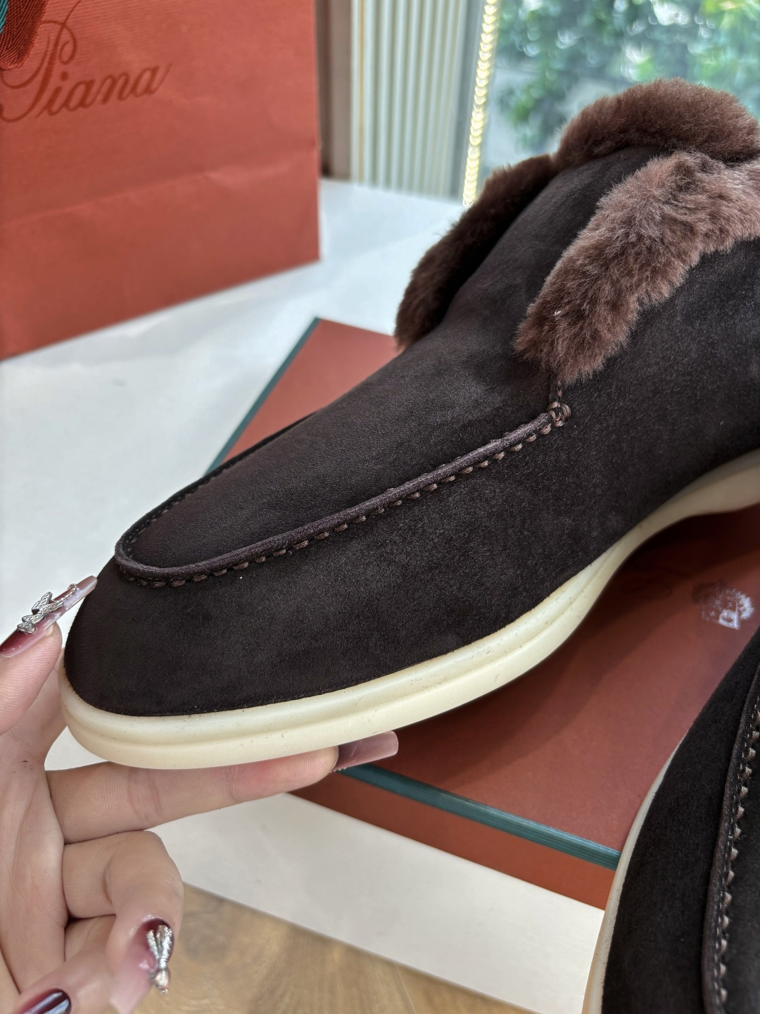 这款鞋子是AAAAA 1:1 质量 (非常棒). 使用了和原版一模一样的材料. 商标部分也保持了和洛罗皮亚纳/Loro Piana一样. 图片拍摄是实物鞋子拍摄, 您所收到的实物保证和我们图片一模一样.