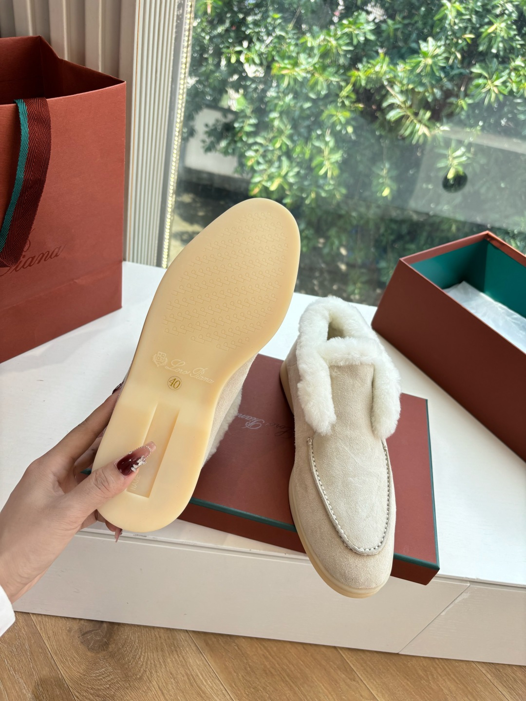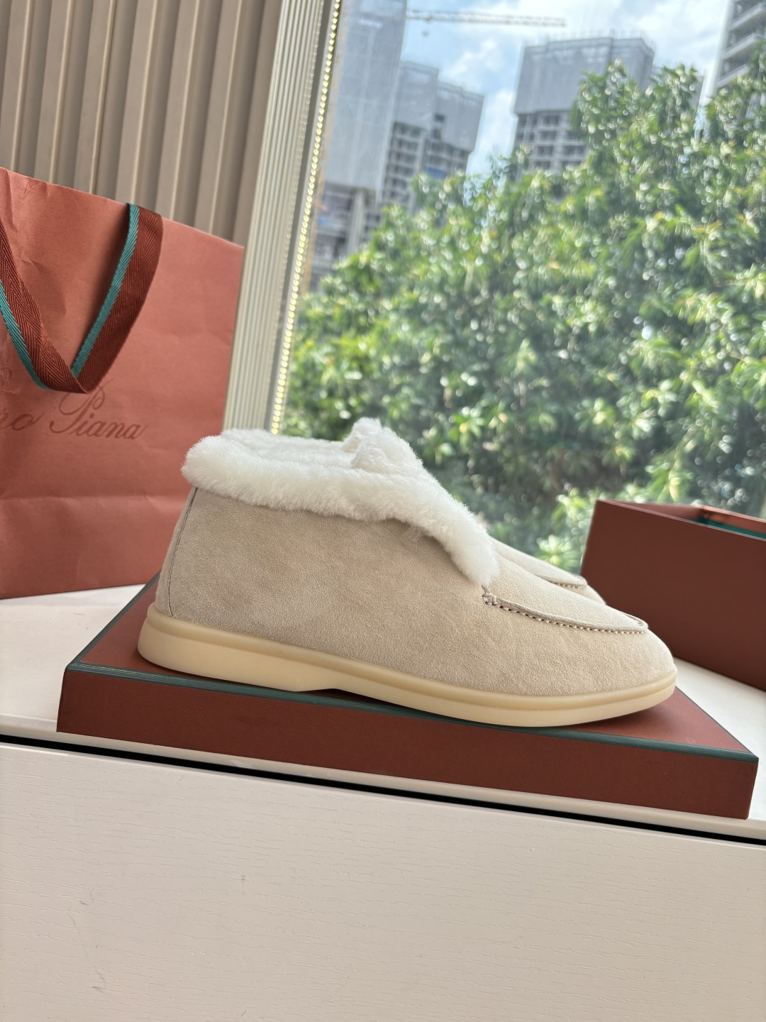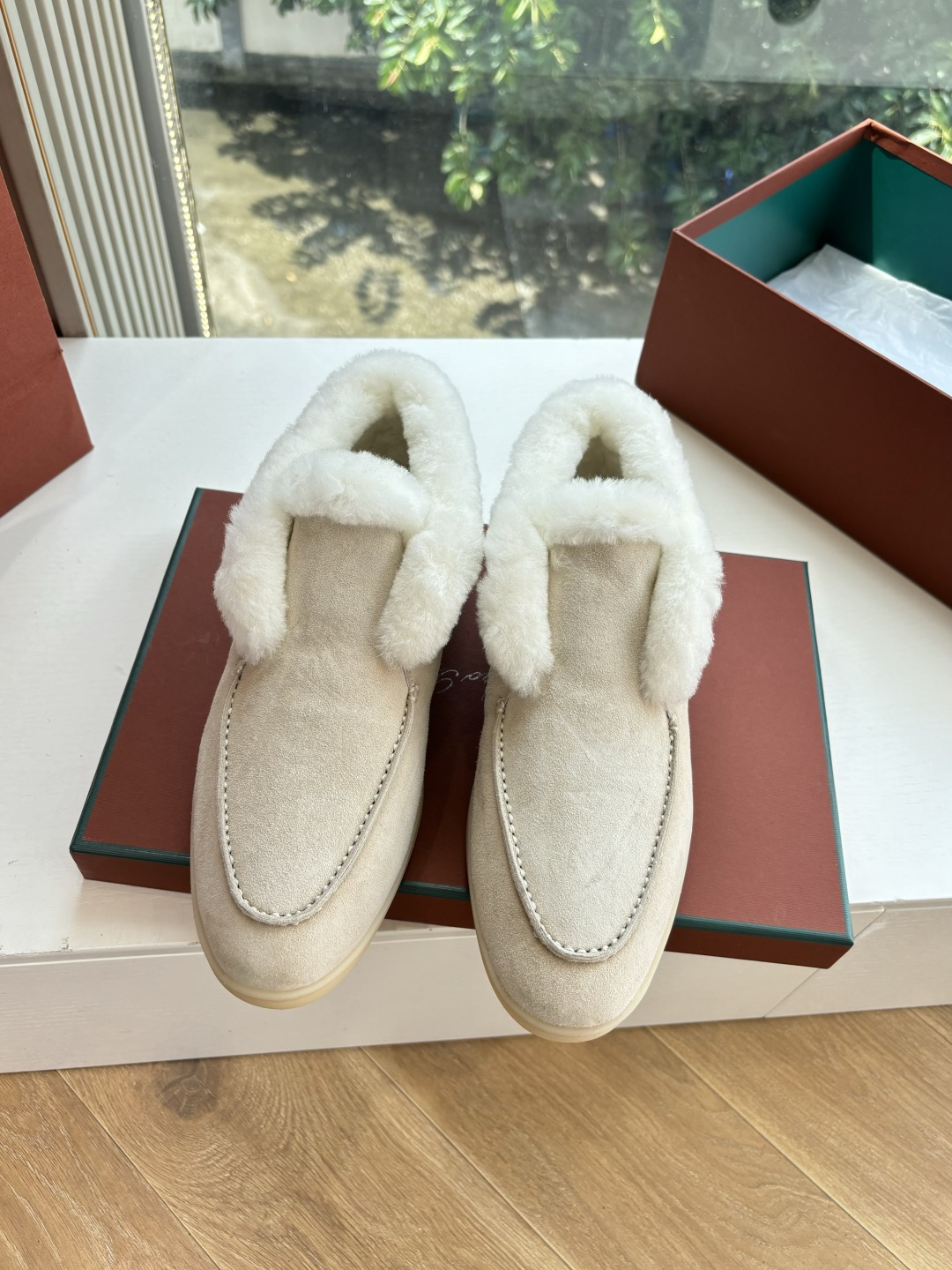 这款鞋子是AAAAA 1:1 质量 (非常棒). 使用了和原版一模一样的材料. 商标部分也保持了和洛罗皮亚纳/Loro Piana一样. 图片拍摄是实物鞋子拍摄, 您所收到的实物保证和我们图片一模一样.
