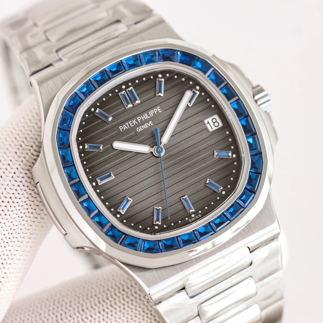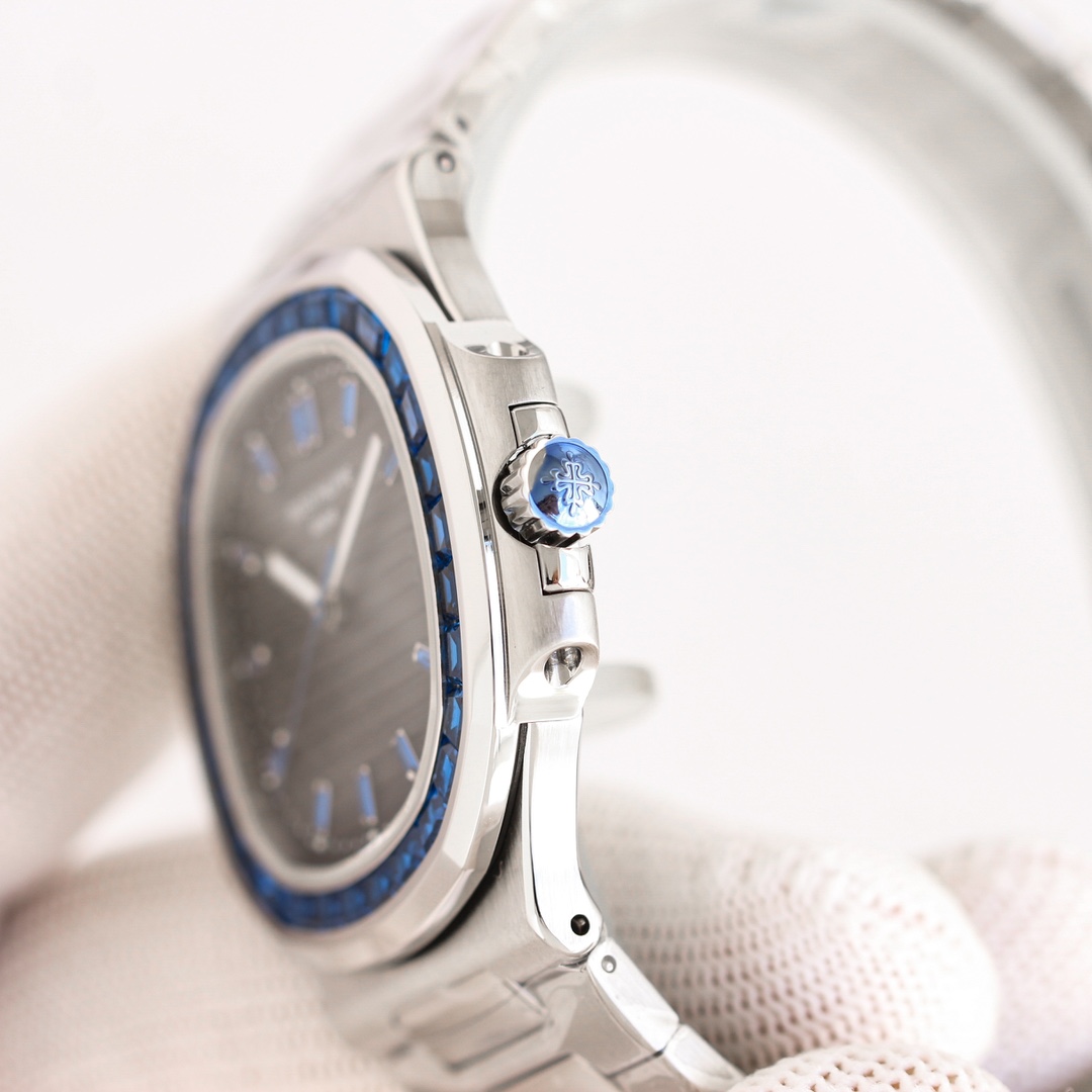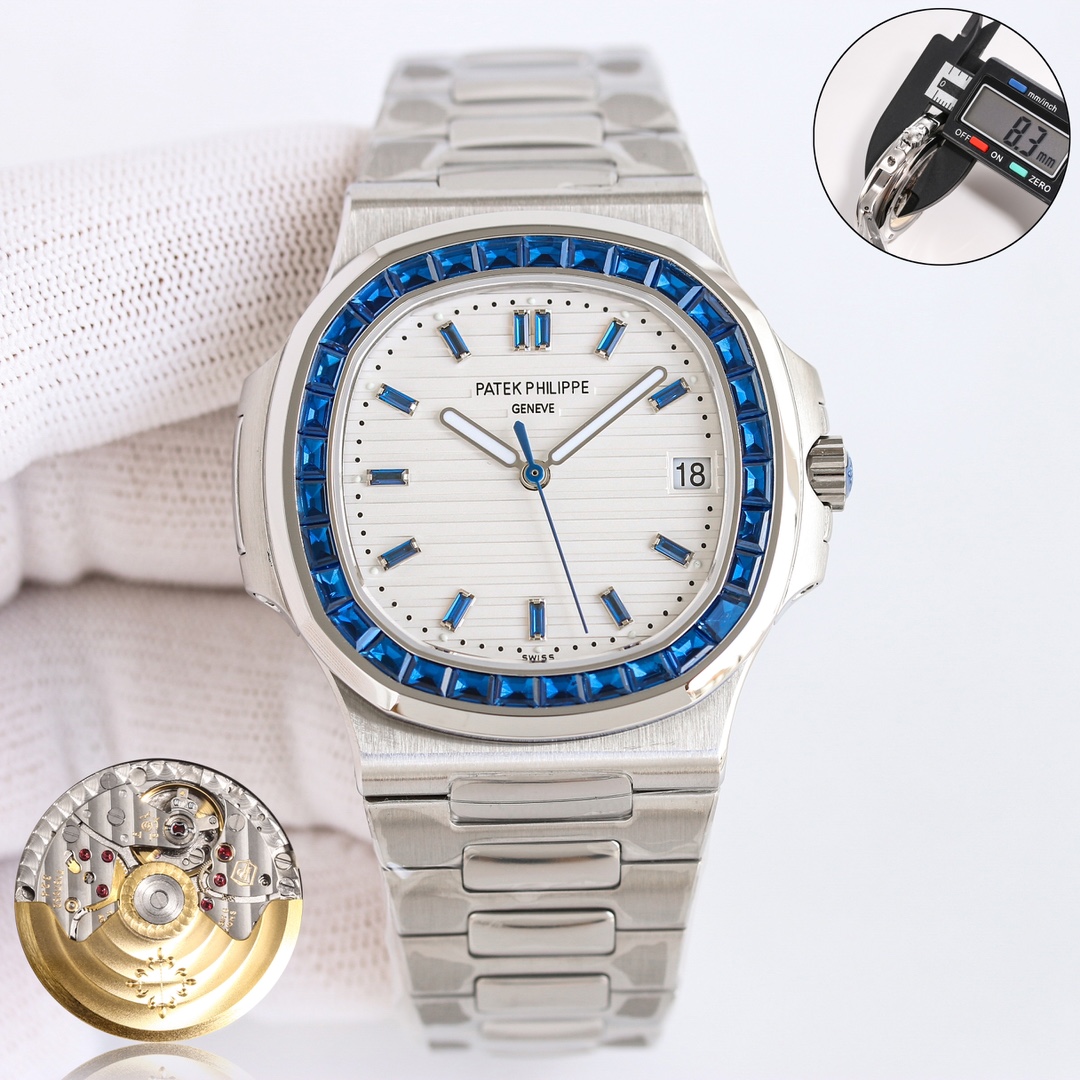 这款手表是AAAAA 1:1 质量 (非常棒). 使用了和原版一模一样的材料. 商标部分也保持了和百达翡丽/Patek Philippe一样. 图片拍摄是实物手表拍摄, 您所收到的实物保证和我们图片一模一样.