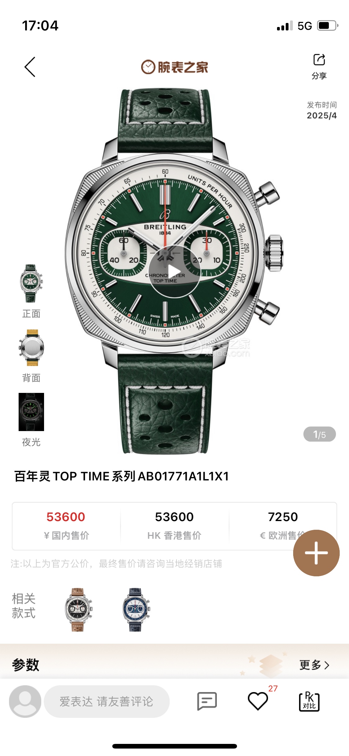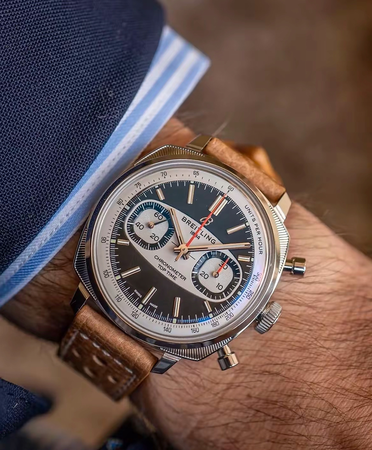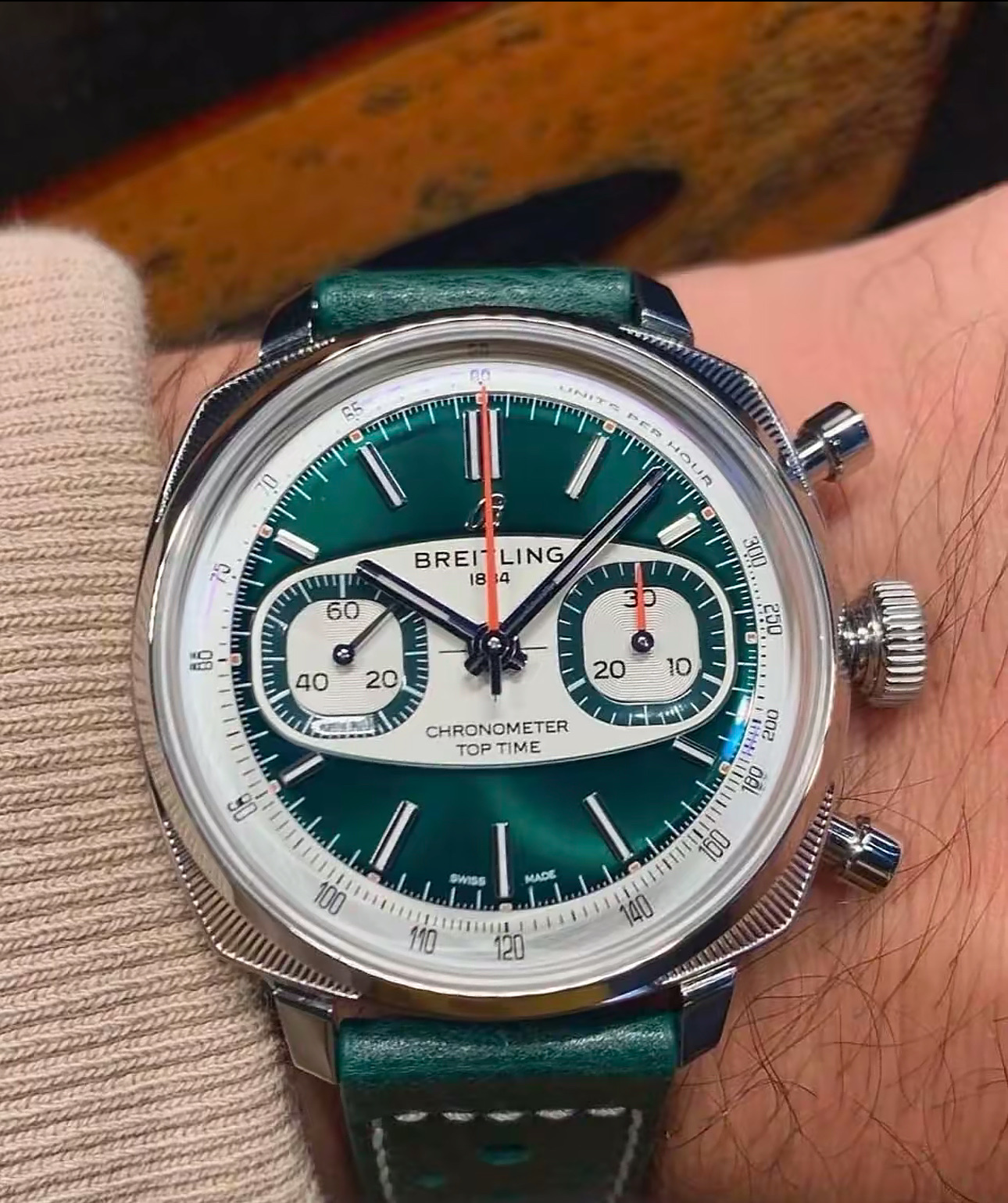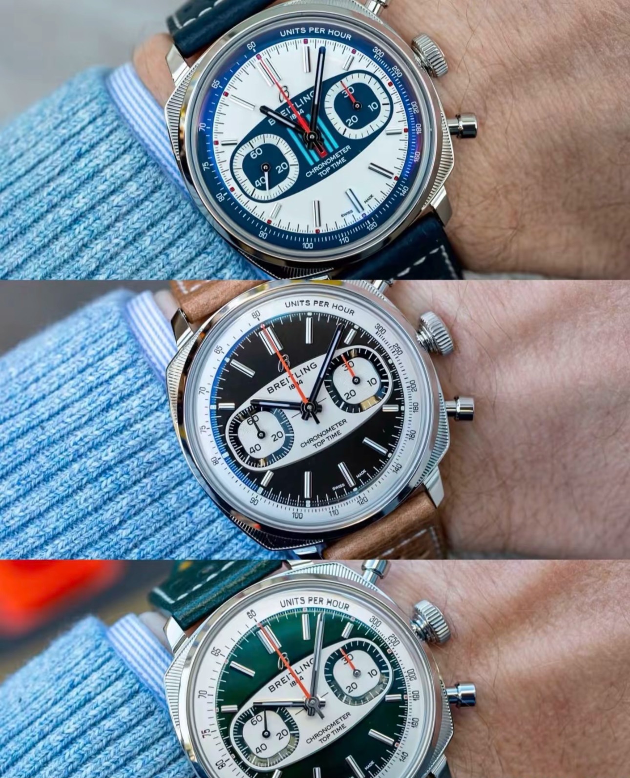 这款手表是AAAAA 1:1 质量 (非常棒). 使用了和原版一模一样的材料. 商标部分也保持了和Breitling一样. 图片拍摄是实物手表拍摄, 您所收到的实物保证和我们图片一模一样.