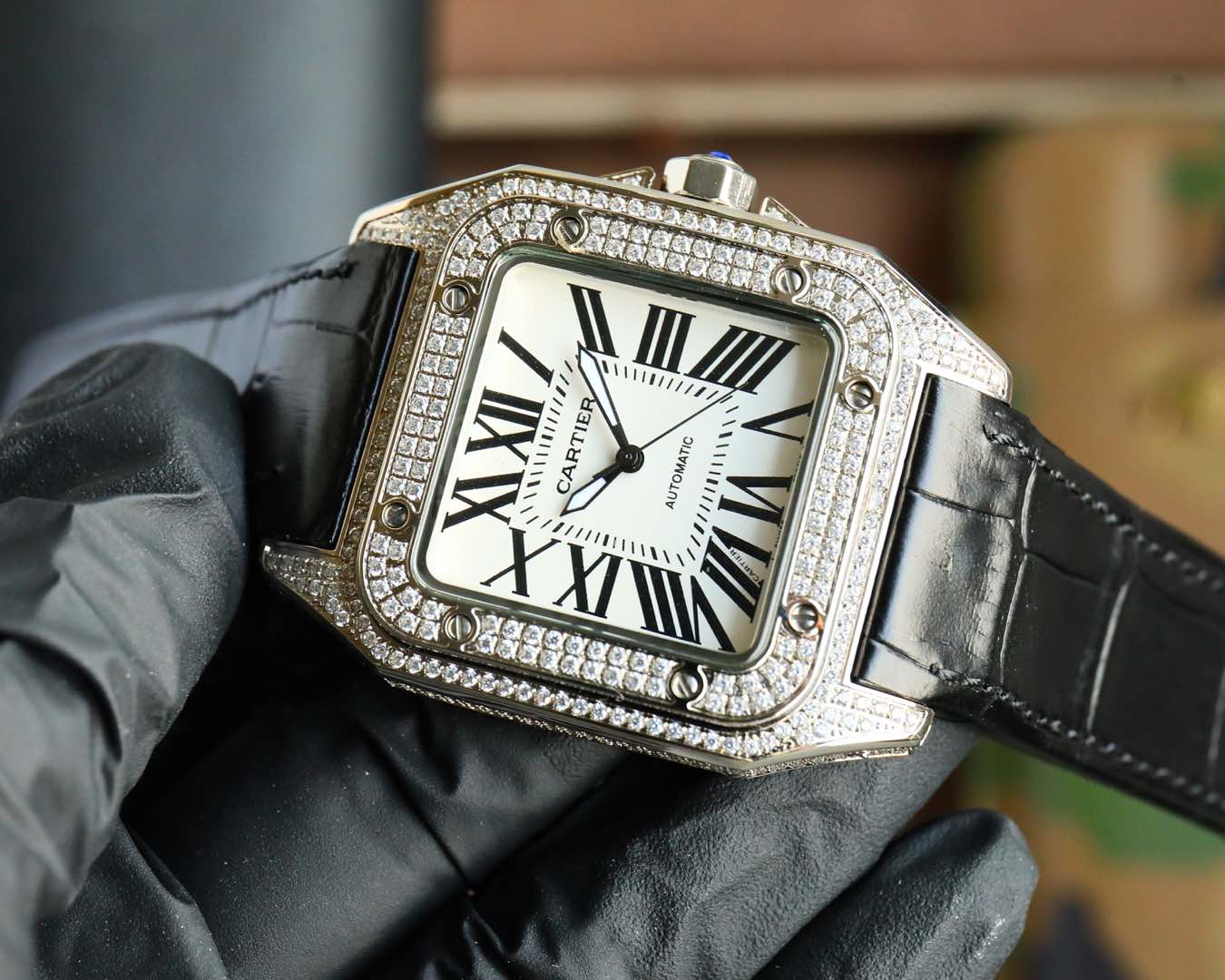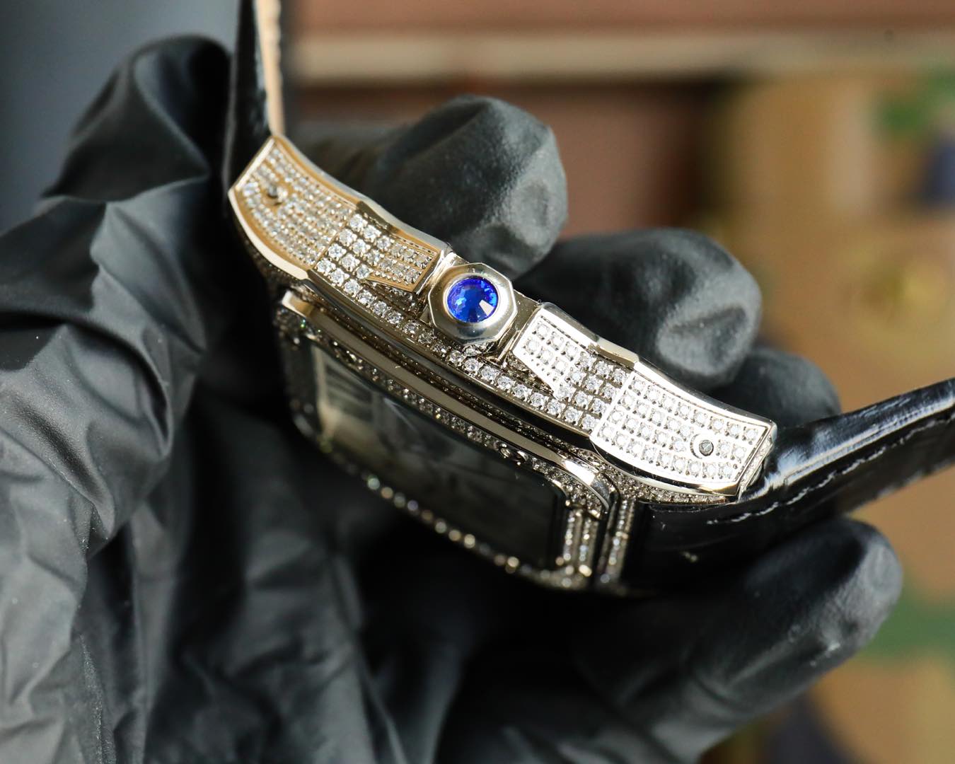 这款手表是AAAAA 1:1 质量 (非常棒). 使用了和原版一模一样的材料. 商标部分也保持了和卡地亚/Cartier一样. 图片拍摄是实物手表拍摄, 您所收到的实物保证和我们图片一模一样.